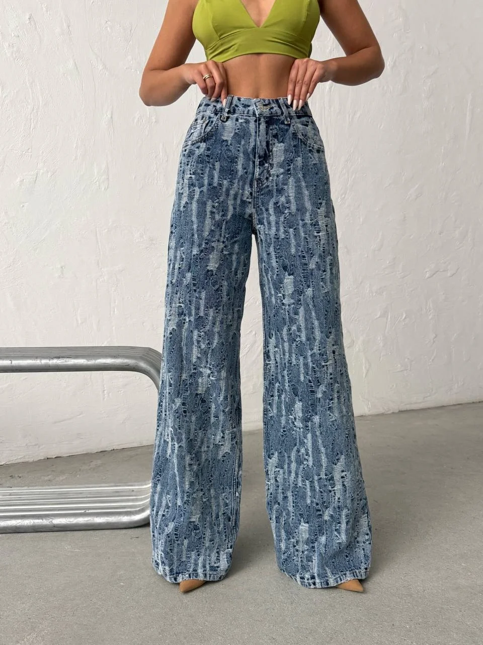 Şehir stiline modern ve iddialı bir dokunuş katmak isteyenler için tasarlanan Yıkamalı Desenli Wide Leg Jean Pantolon, dikkat çekici denim dokusuyla yeni sezonun en trend parçalarından biridir. Özel yıkama efekti sayesinde pantolon yüzeyinde oluşan desenli ve hareketli görünüm, klasik jean modellerinden farklı ve özgün bir stil sunar.