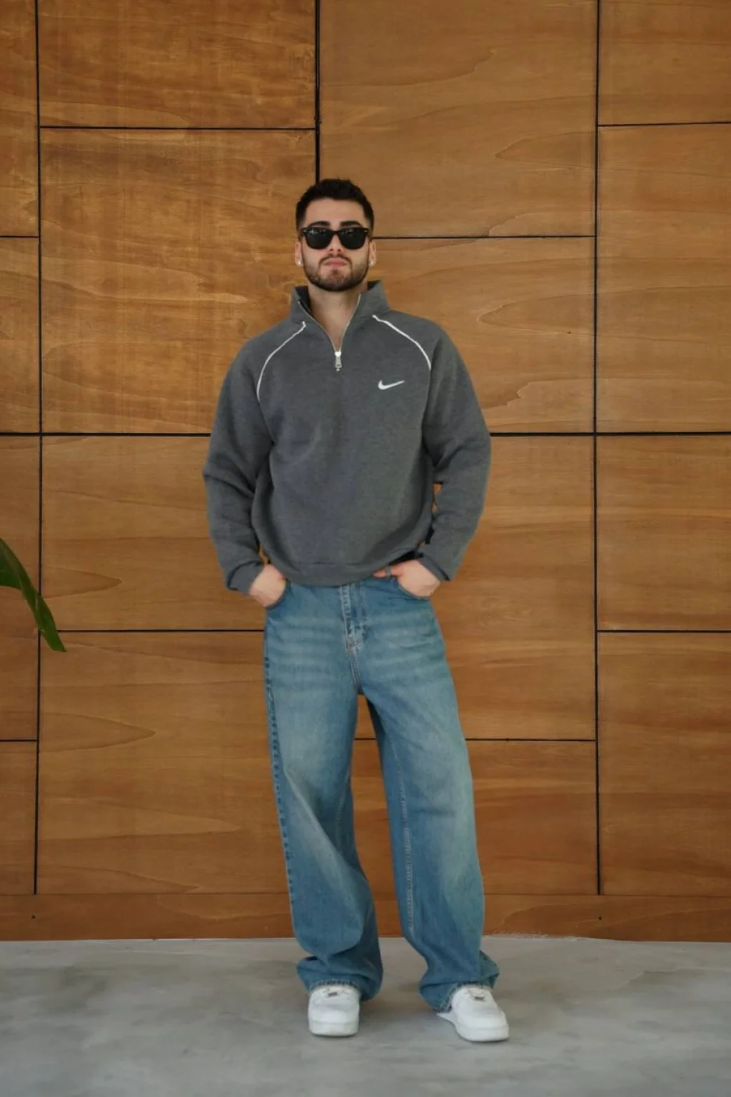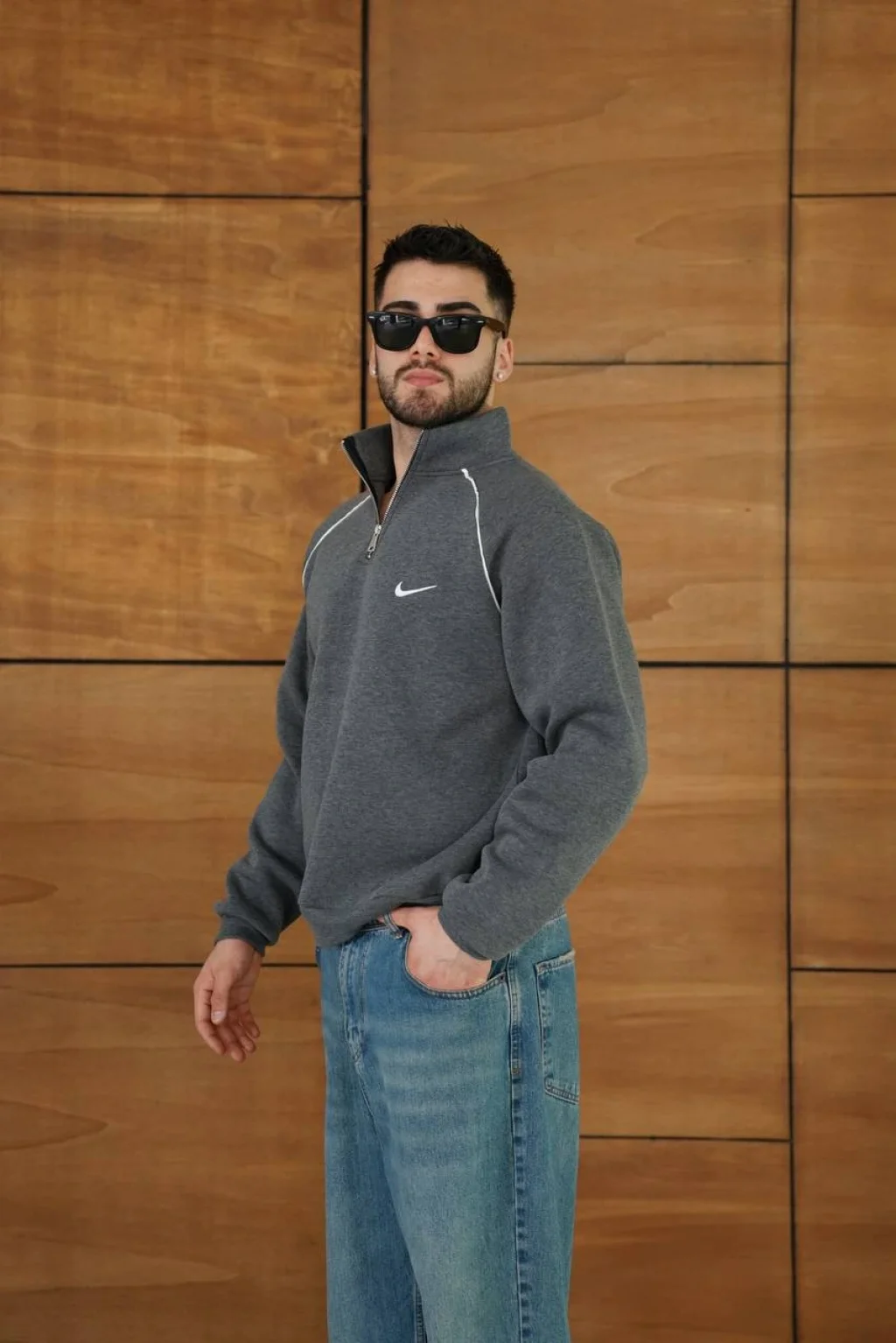 Antrasit ADD Fermuar Yaka Unisex Oversize Sweat