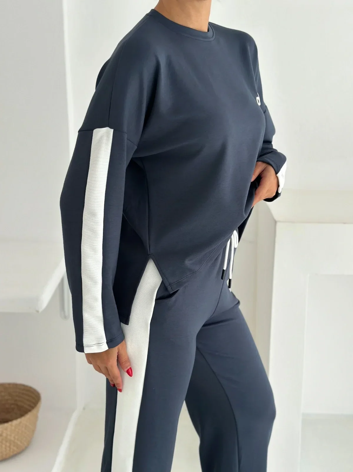 Antrasit Alo Yırtmaçlı Modal İkili Takım