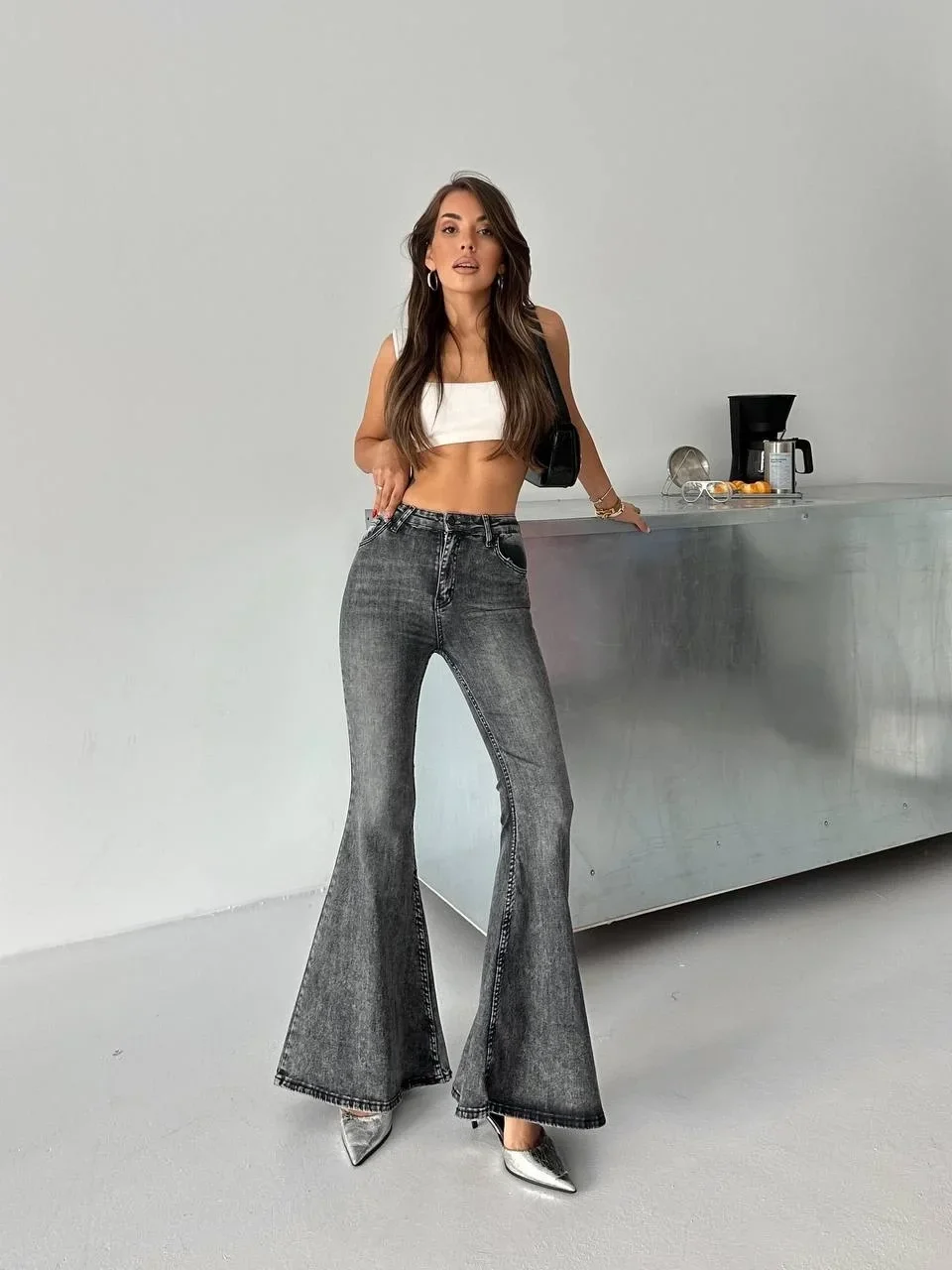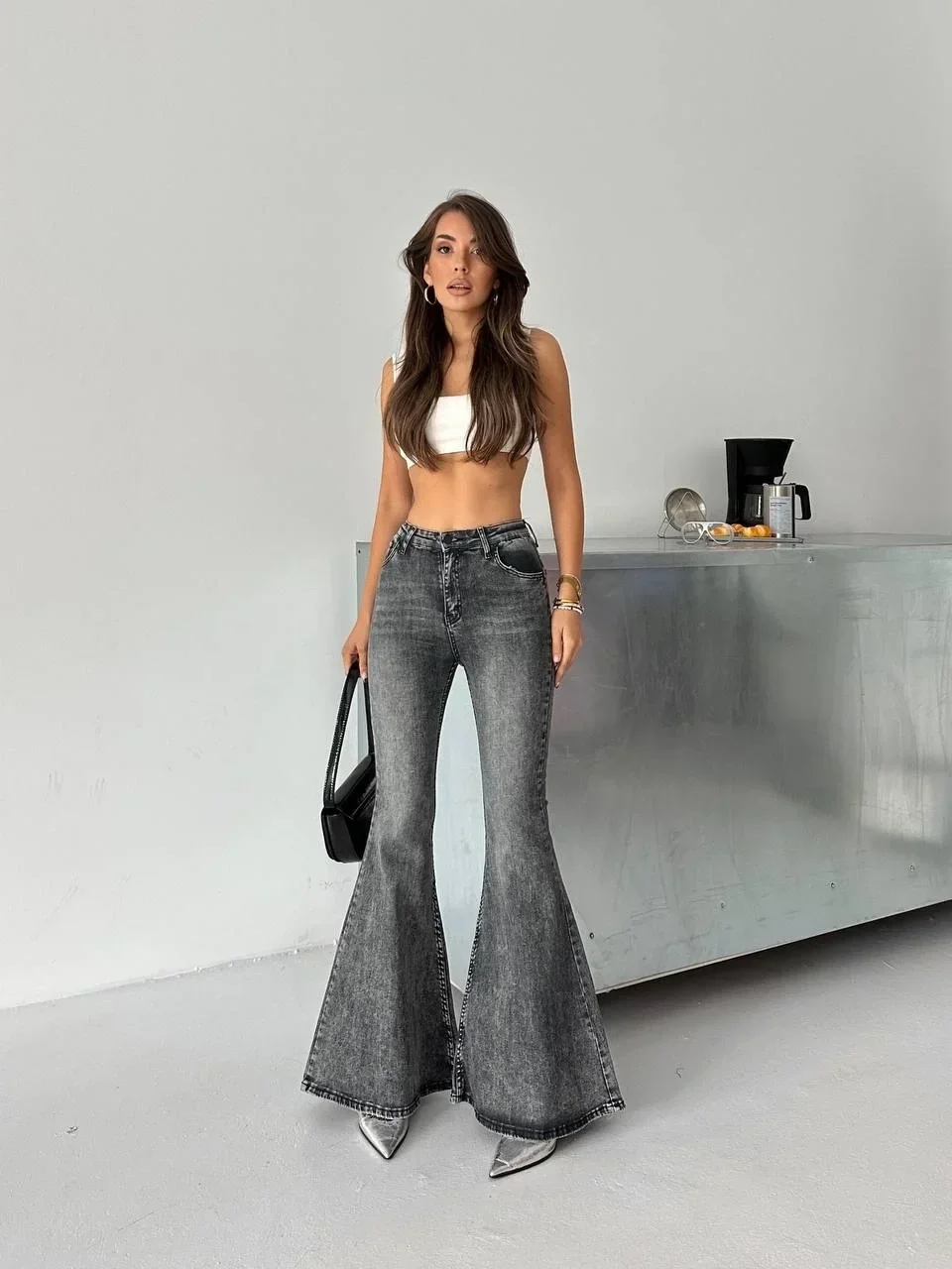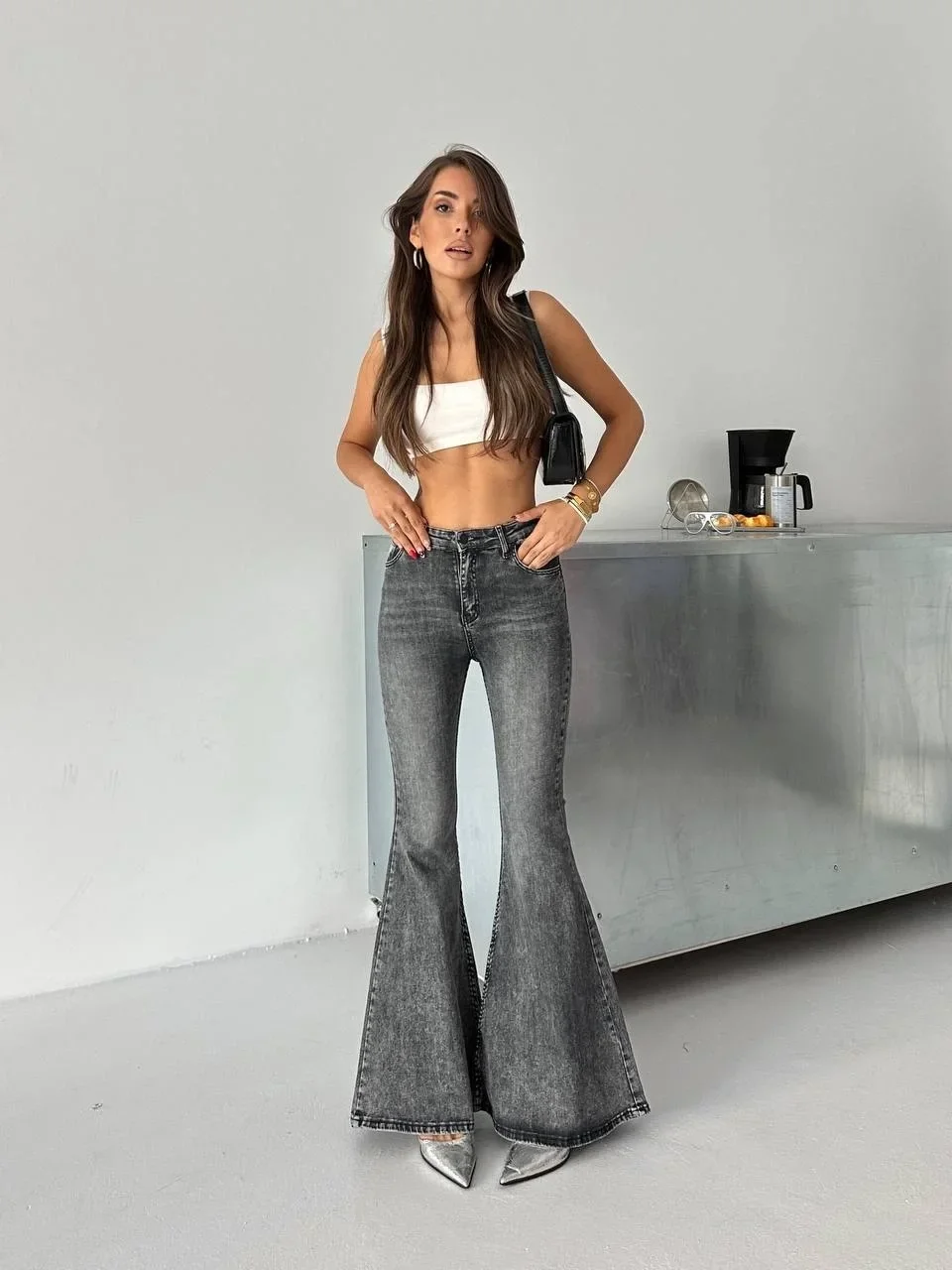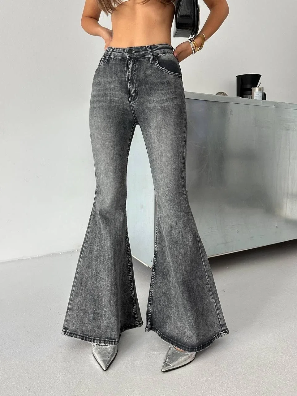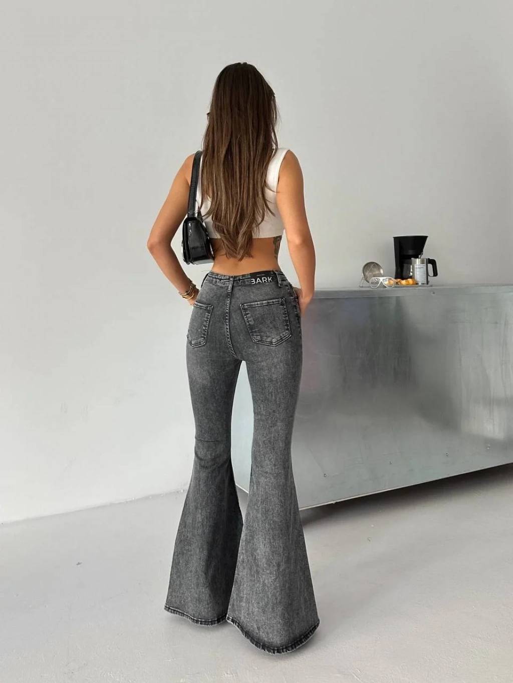 Antrasit İspanyol Paça Likralı Kot Pantolon