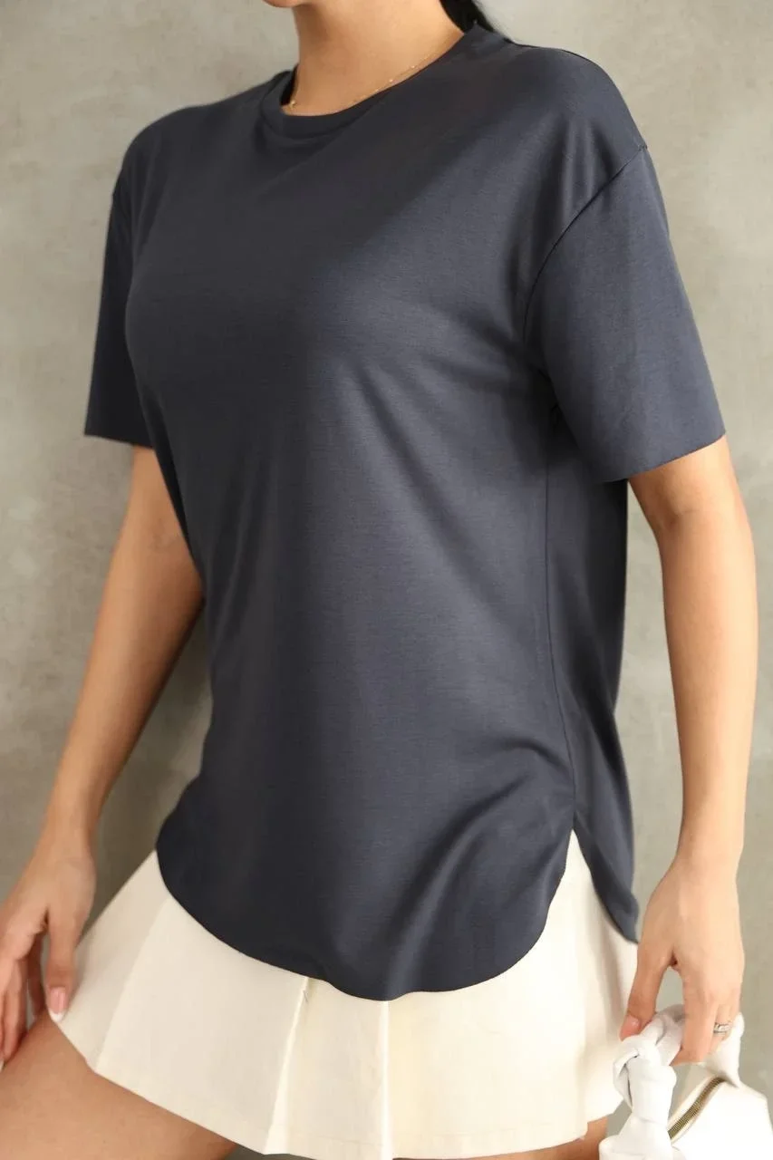Antrasit Oysho Yırtmaçlı Modal Oversize Tshirt