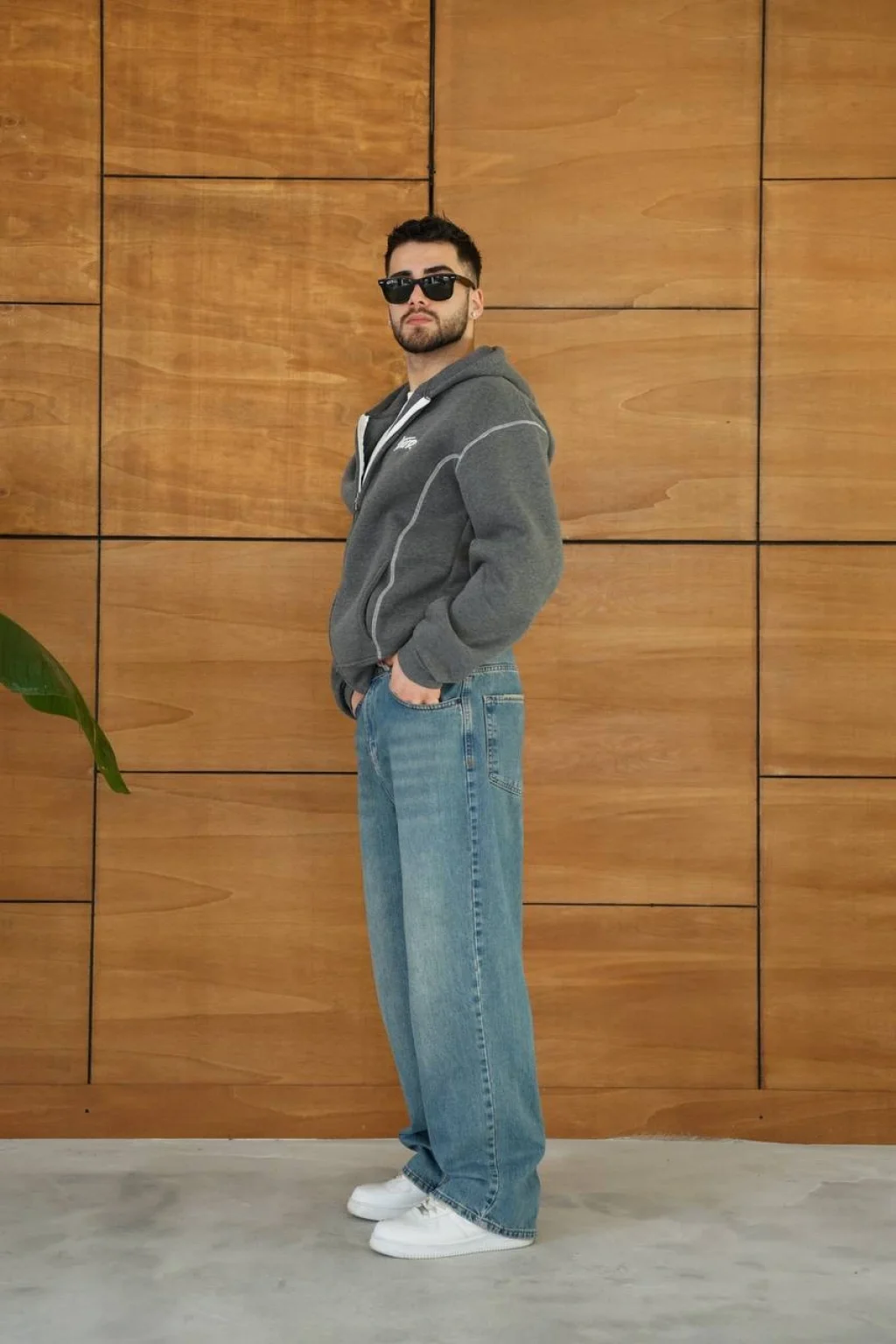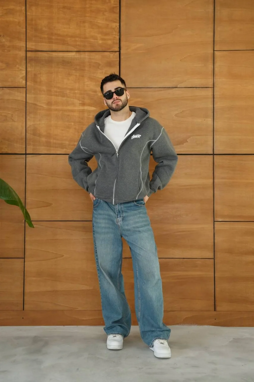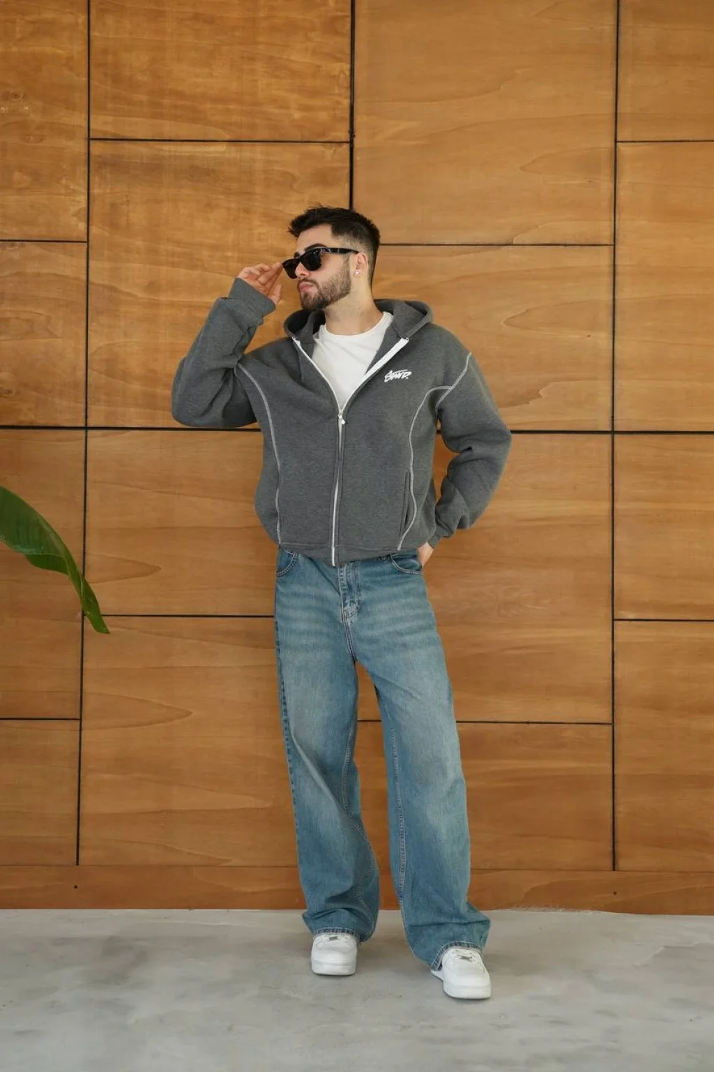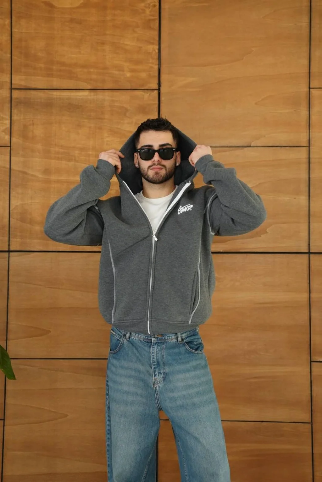 Gri Basic Kapşonlu Unisex Oversize Sweat