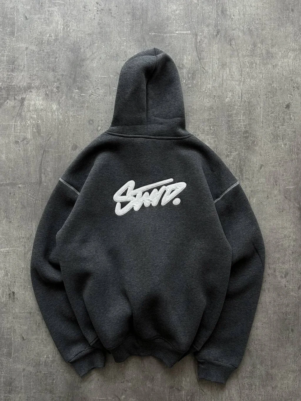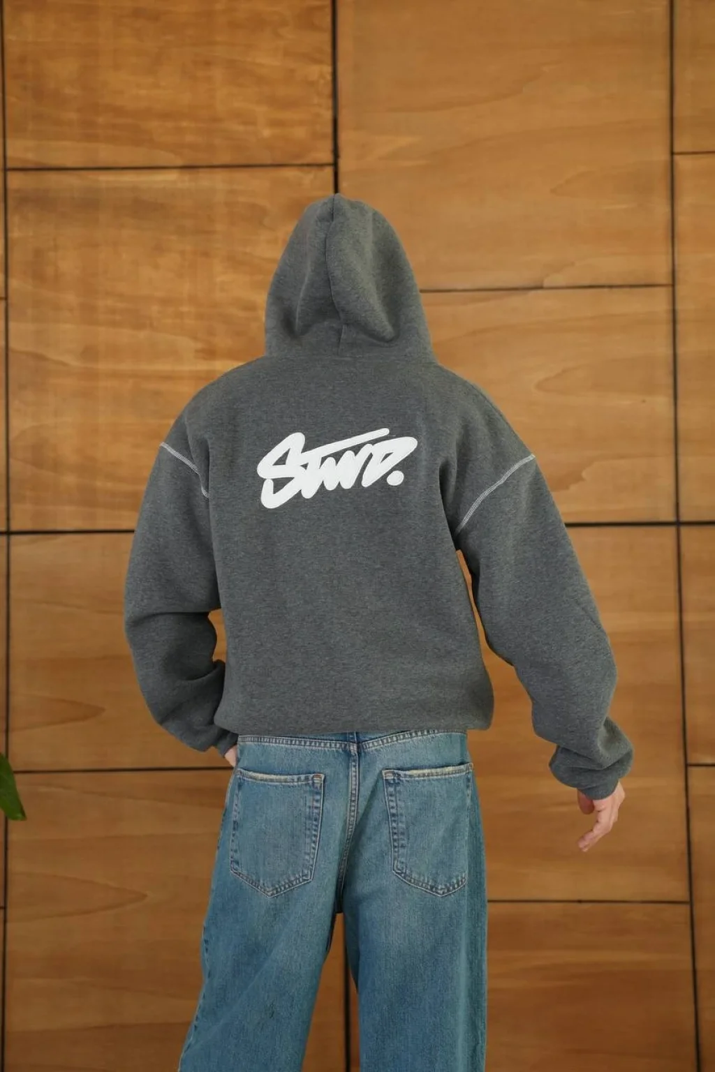Antrasit STWD Kapşonlu Unisex Oversize Sweat