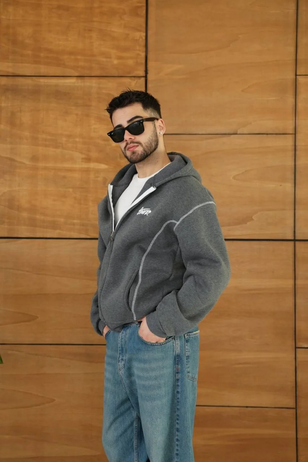 Gri ADD Omuz Şeritli Kapşonlu Unisex Oversize Sweat