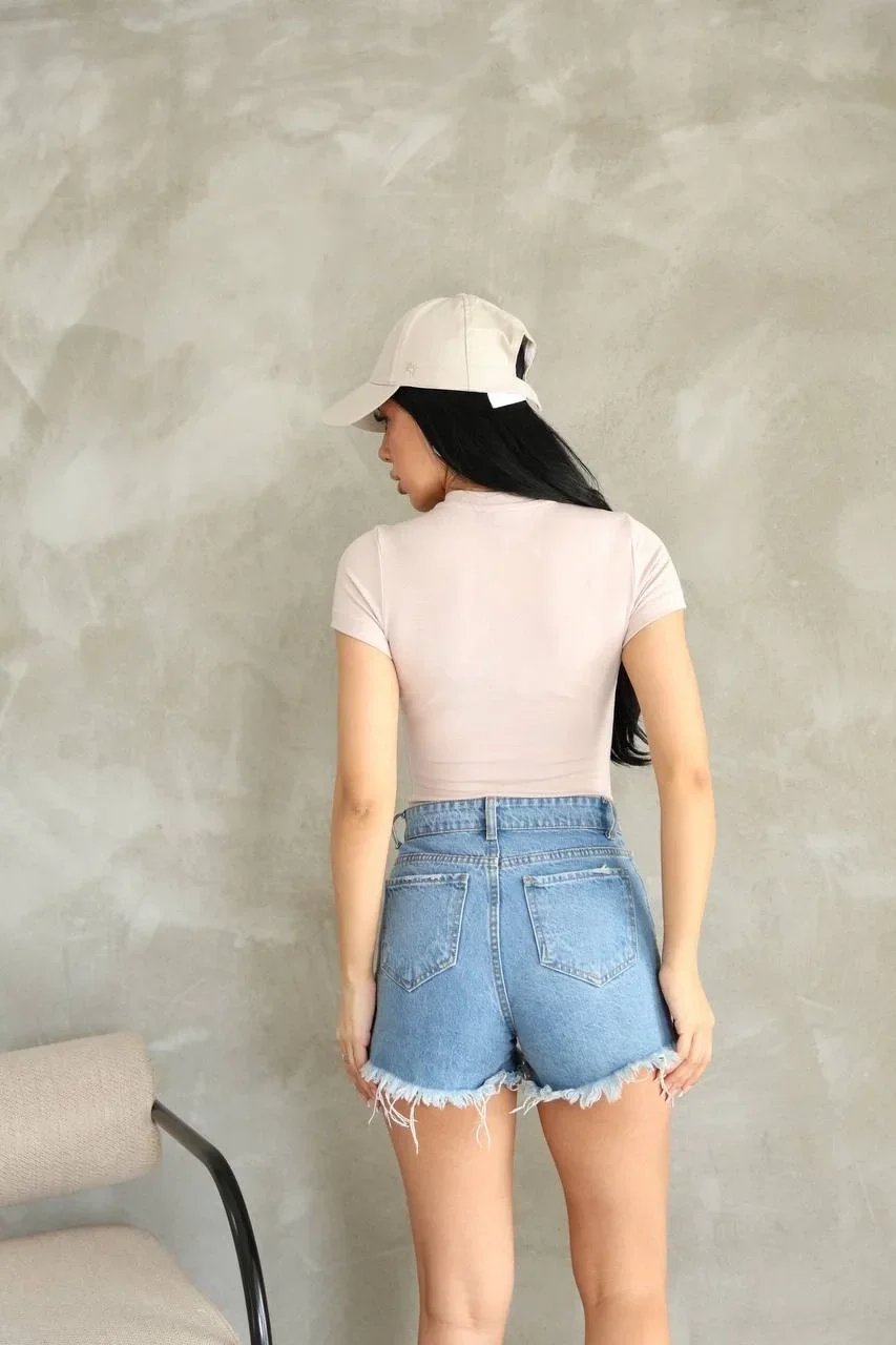 Bej Alo Bisiklet Yaka Body Tshirt