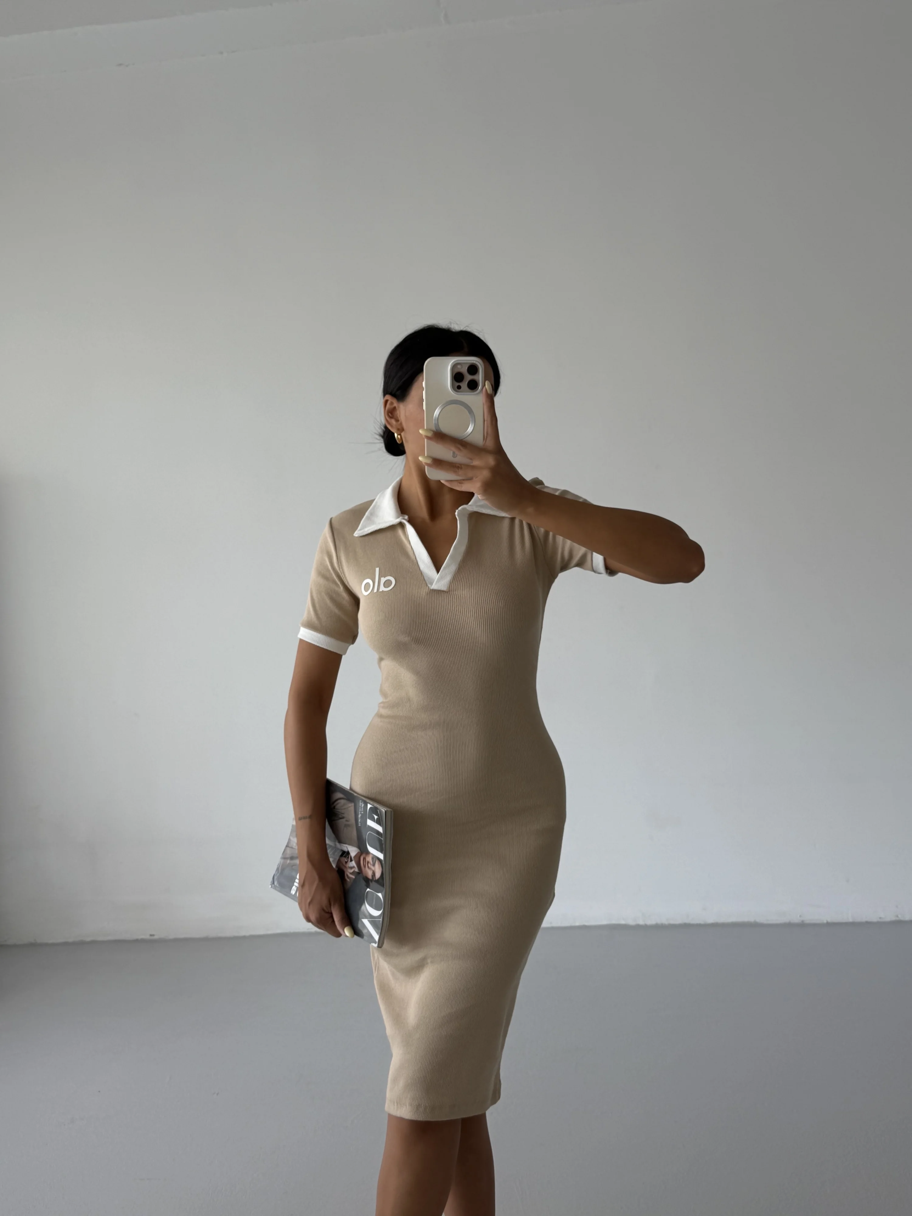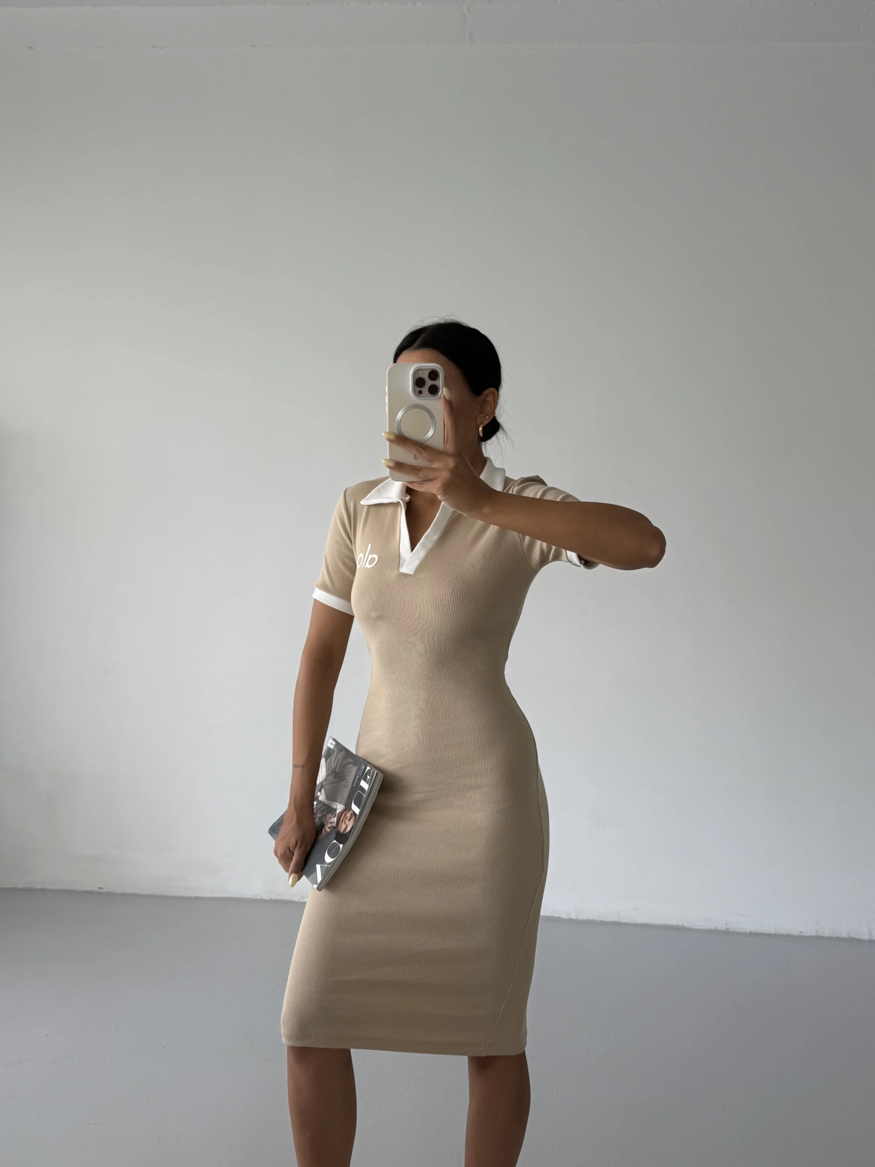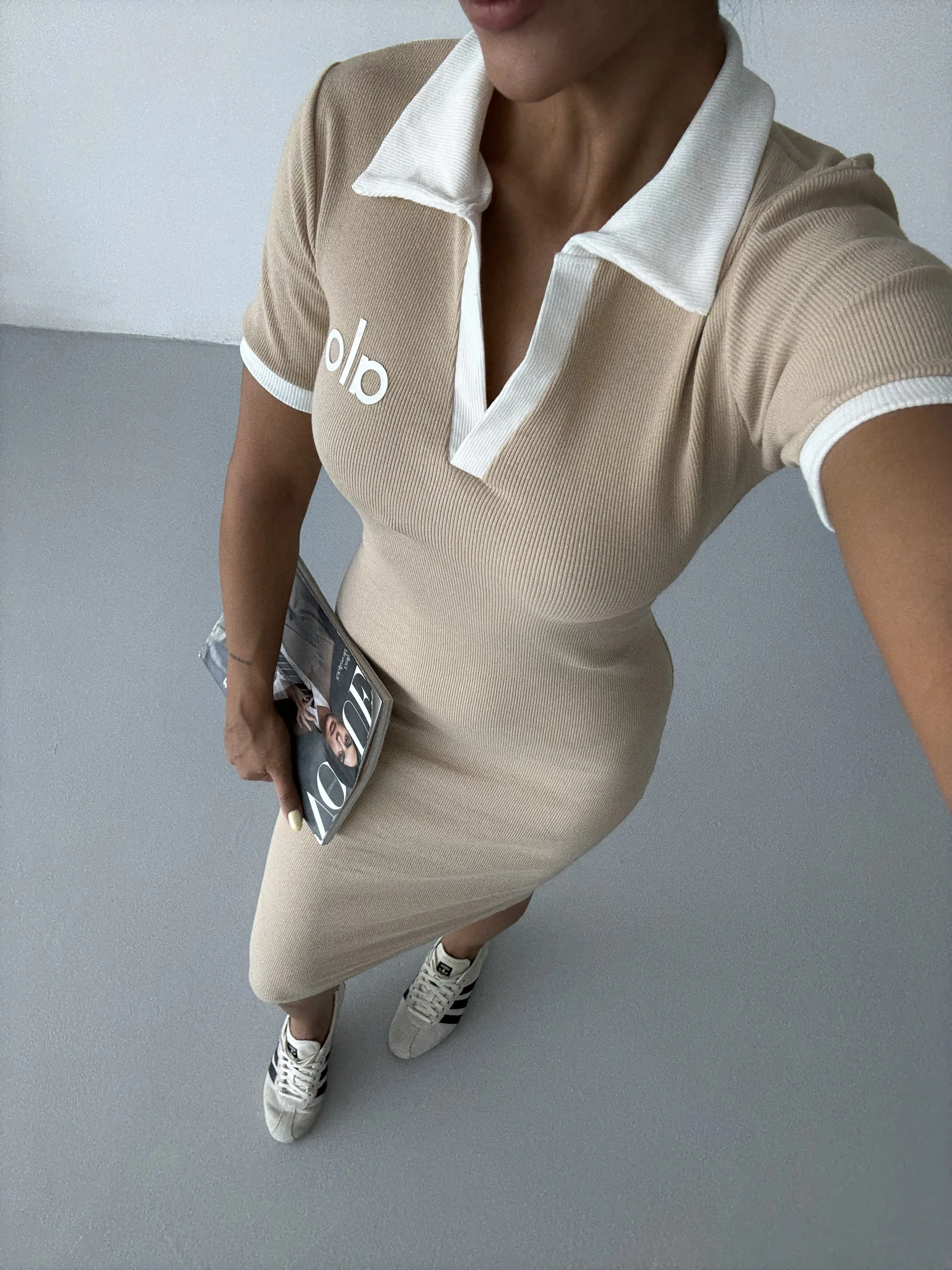Bej Alo Yakalı Likralı Elbise