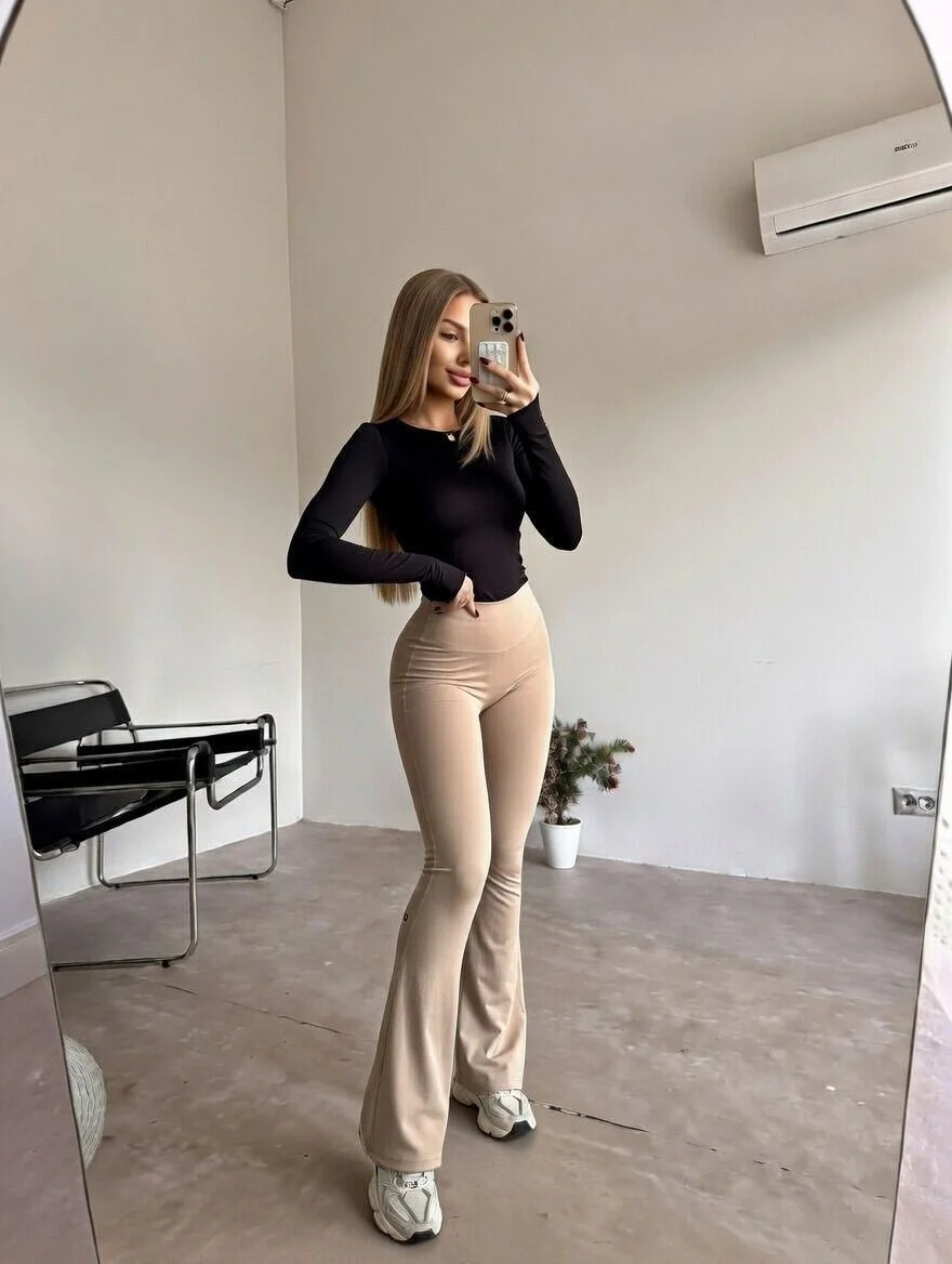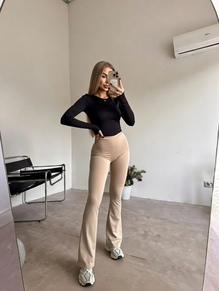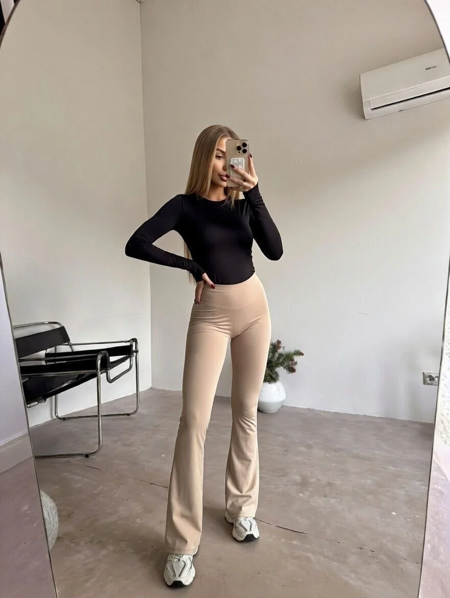 Bej Alo Yoga Yüksel Bel İçi Şardonlu İspanyol Tayt