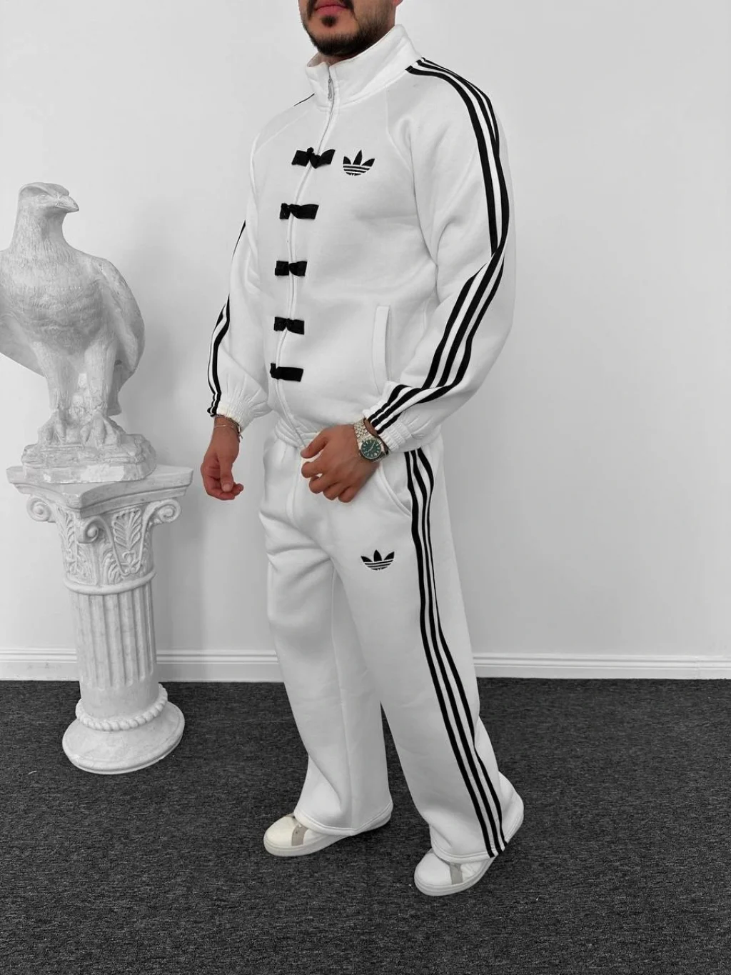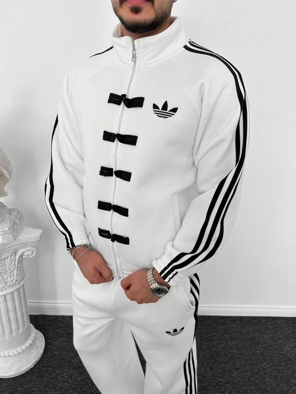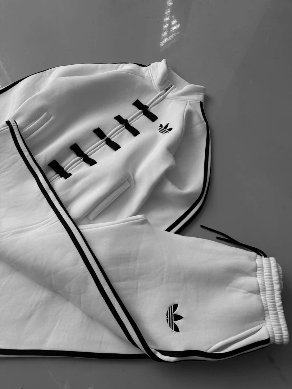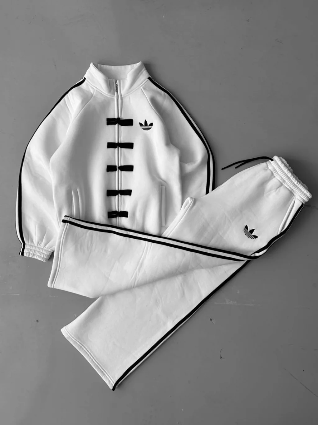 Beyaz ADD Düğme Bağcıklı Oversize Eşofman Takımı