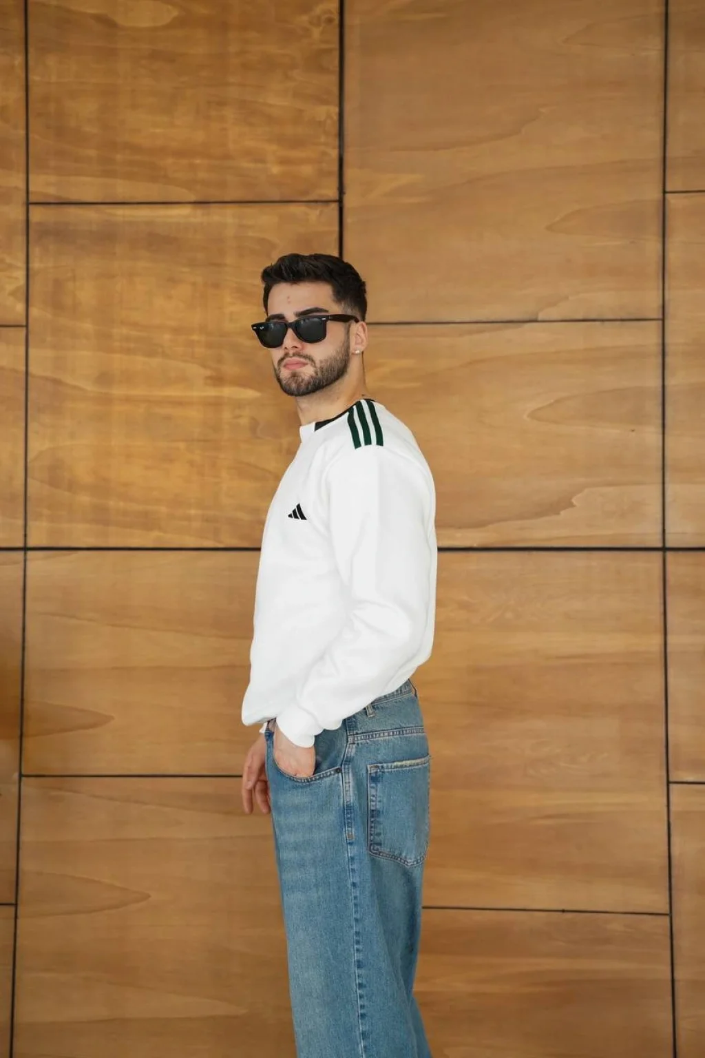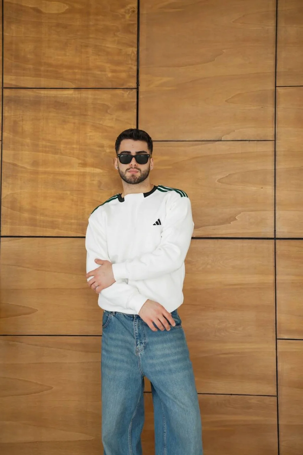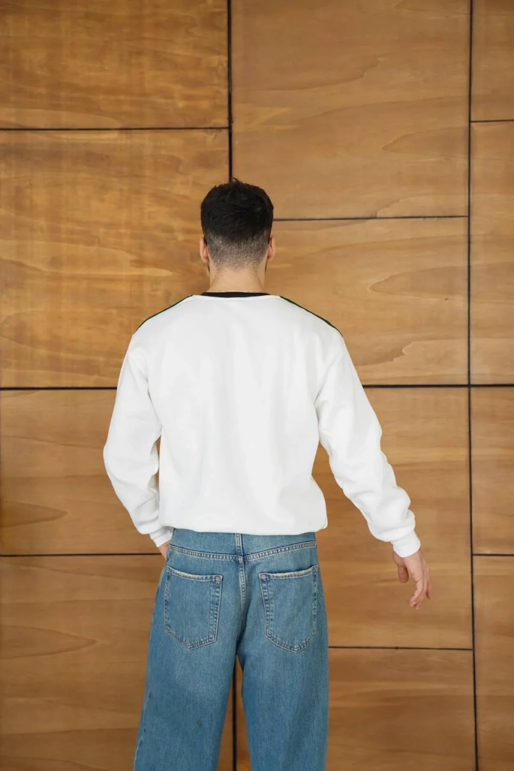 Beyaz NK Kol Biyeli Unisex Oversize Sweat