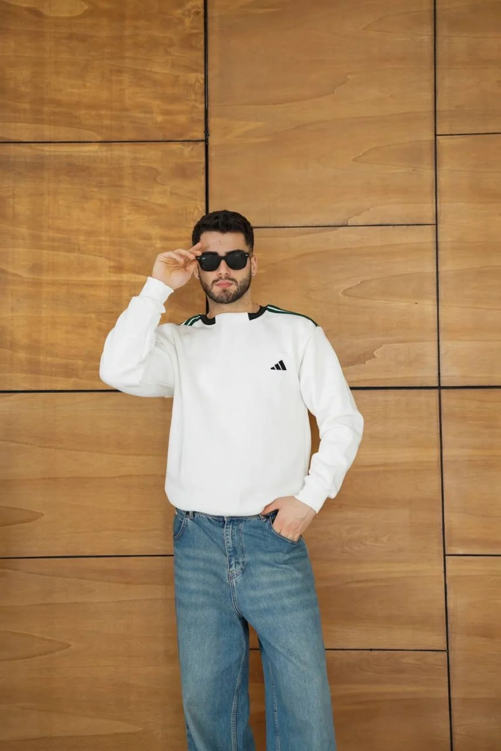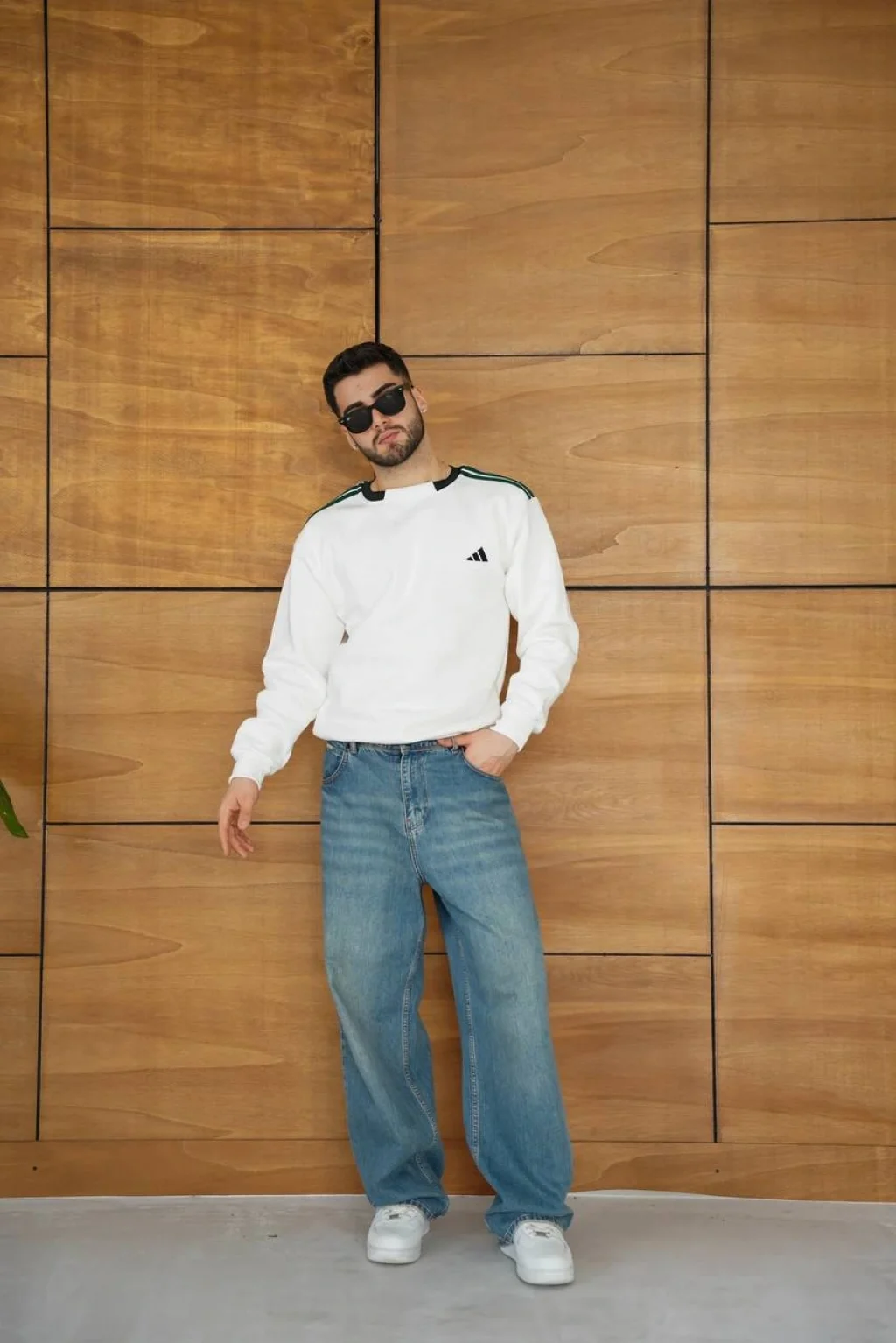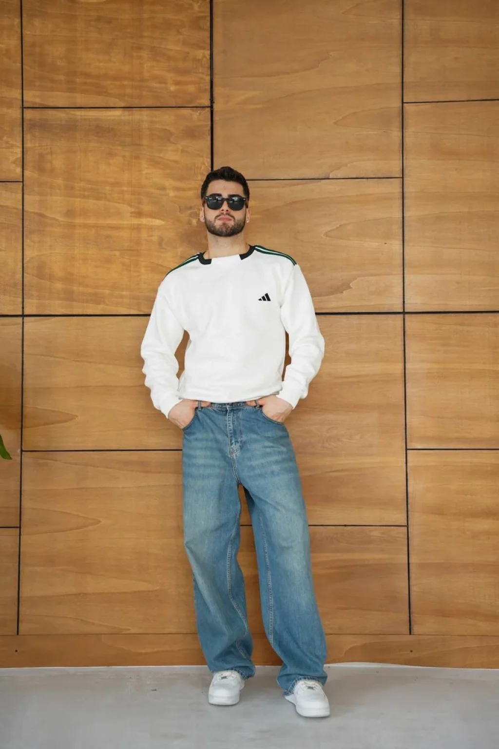 Beyaz ADD Yaka Ribana Unisex Oversize Sweat