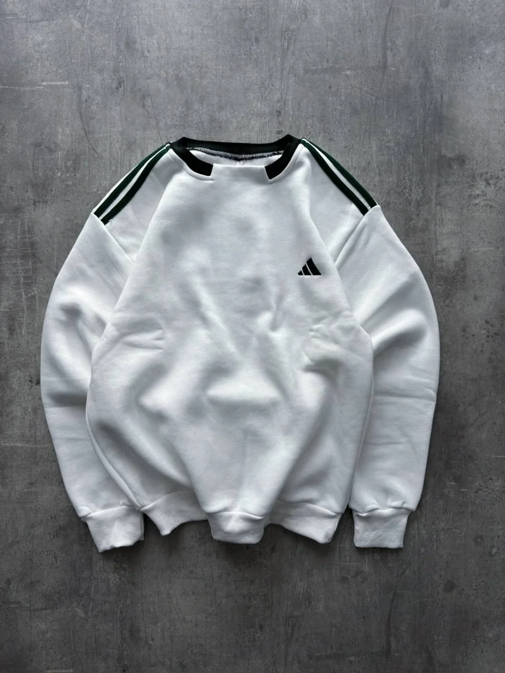 Beyaz ADD Üç Şerit Fermuar Yaka Unisex Oversize Sweat