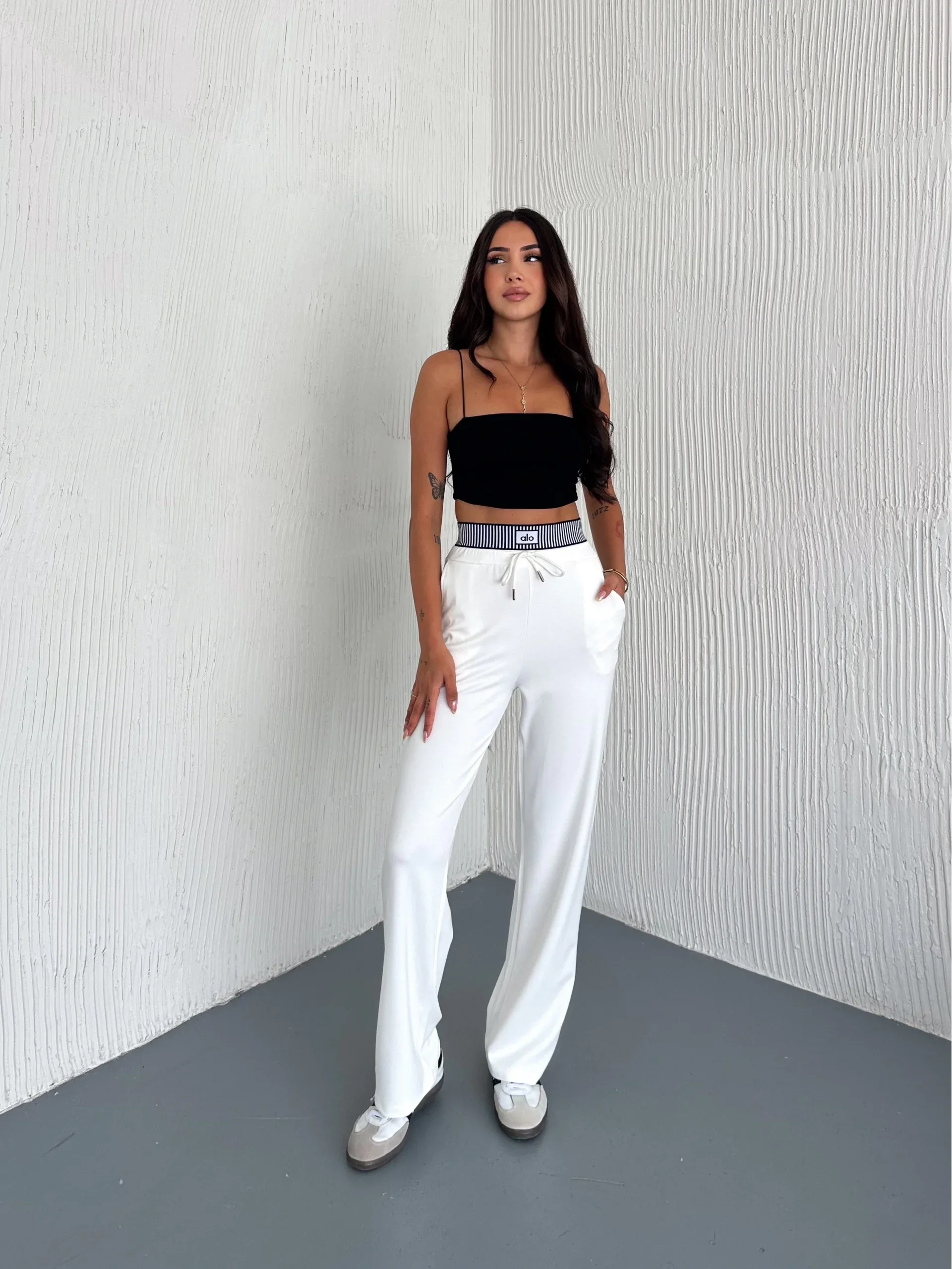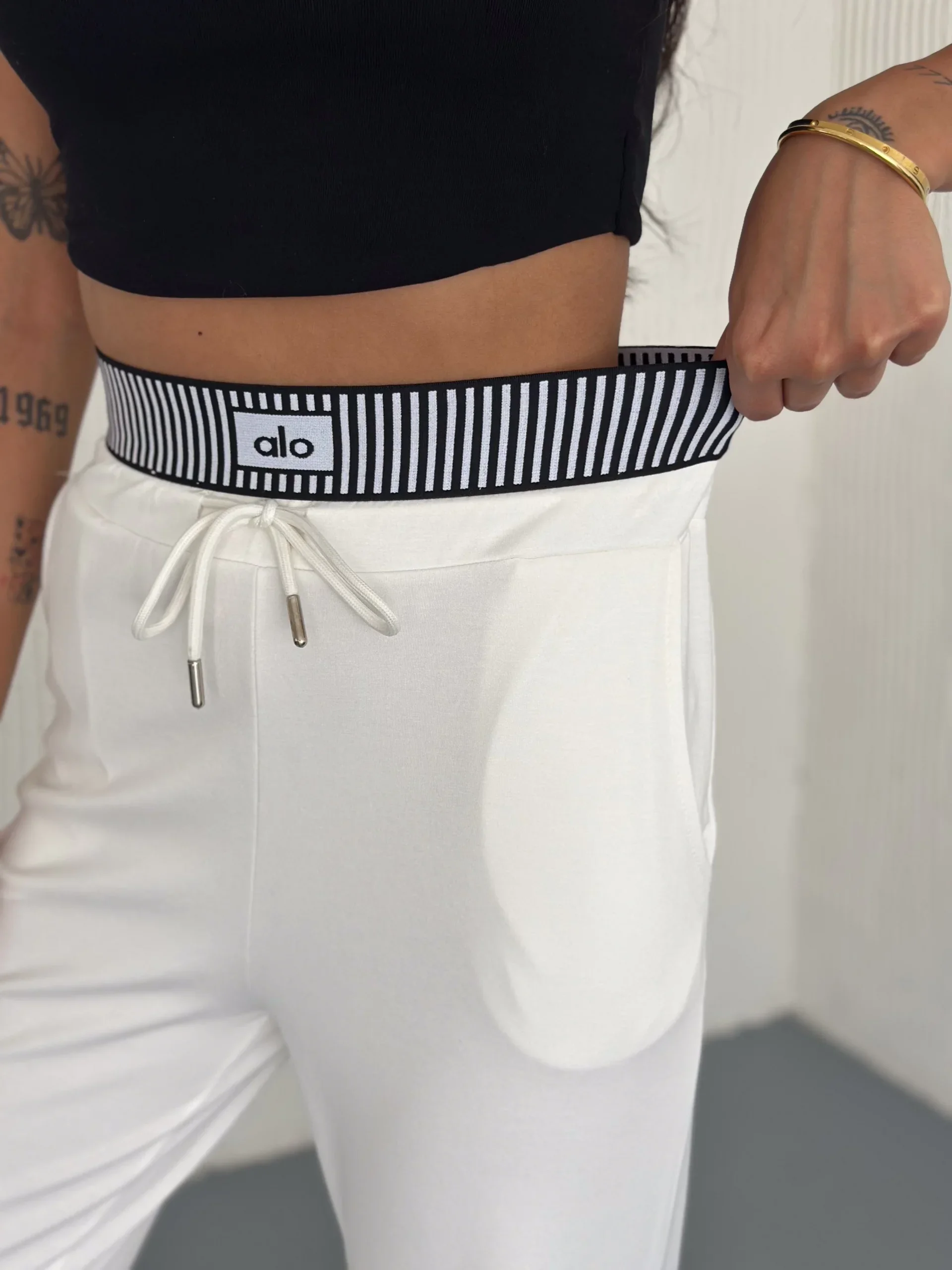 Beyaz Alo Çizgili Ribana Pantolon