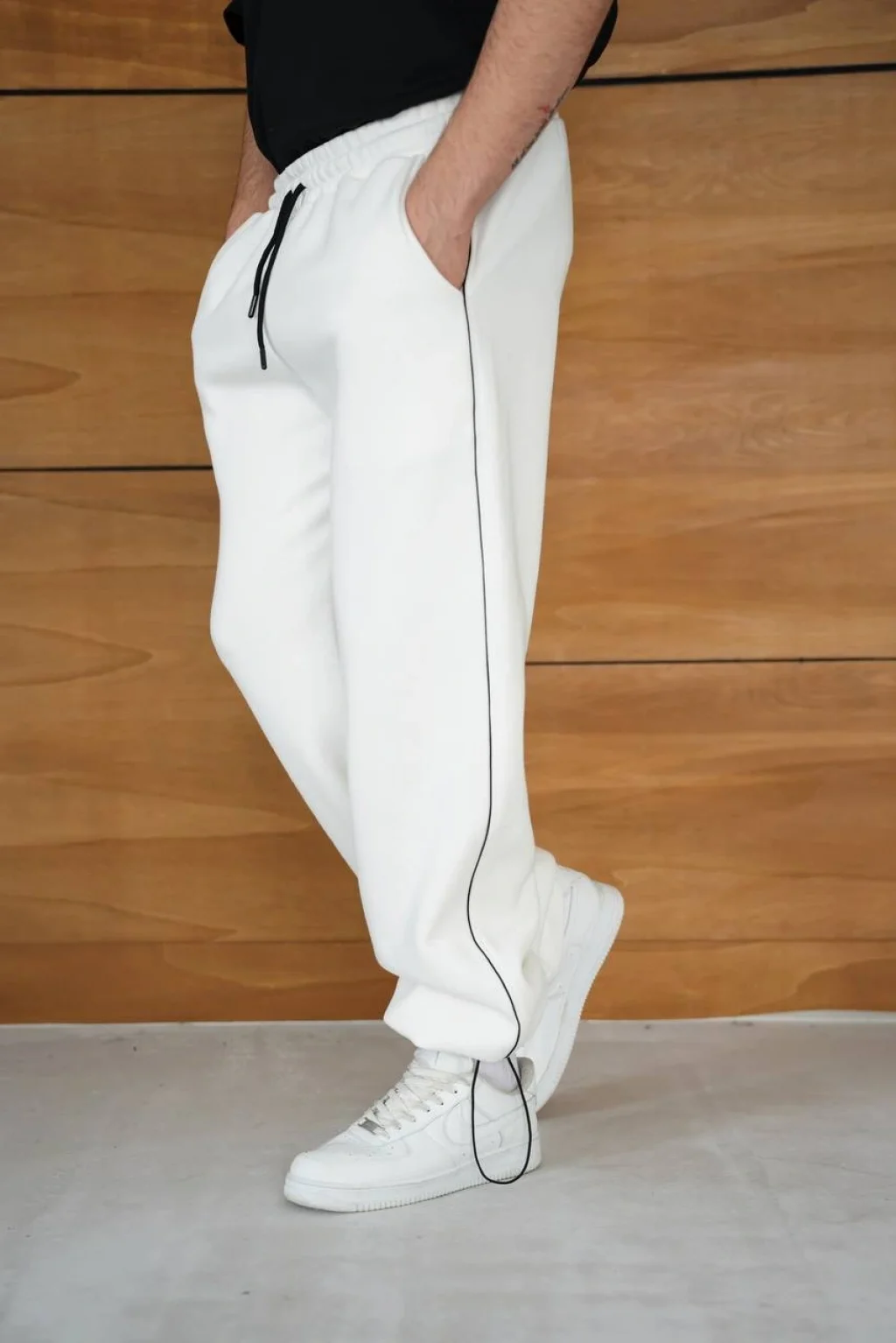 Beyaz Tek Şeritli Oversize Eşofman