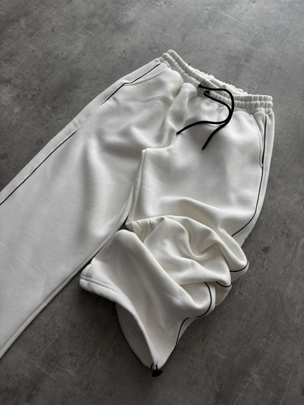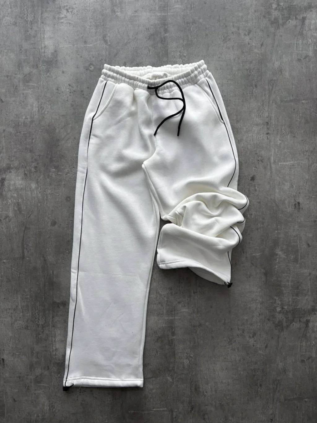 Beyaz Basic Biyeli Unisex Oversize Eşofman