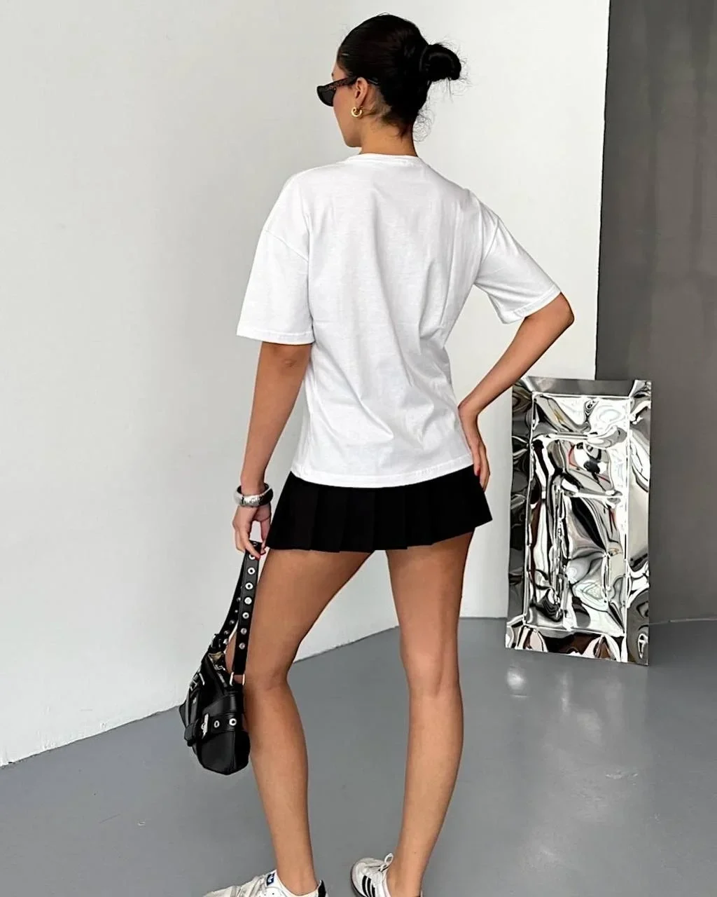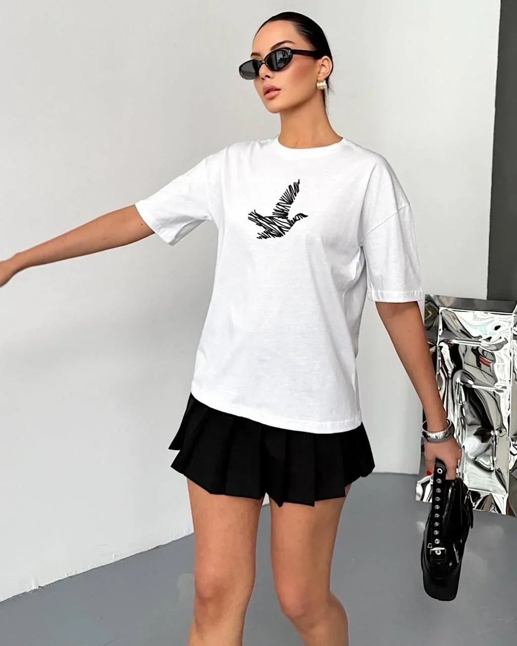 • Beyaz BYMN Rahat Kalıp Penye Tshirt