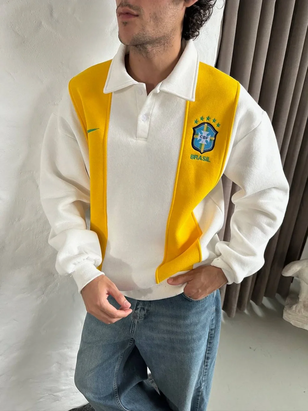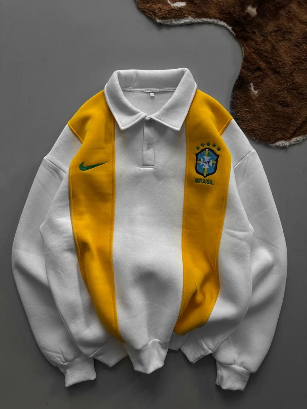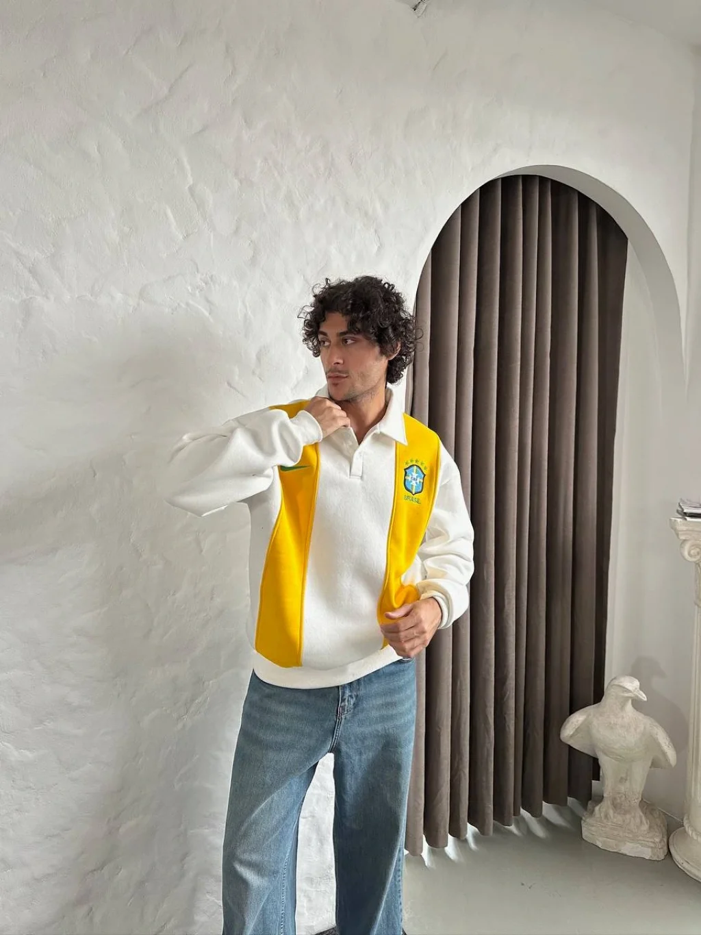 Sarı Brasil Polo Yaka Unisex Oversize Sweat