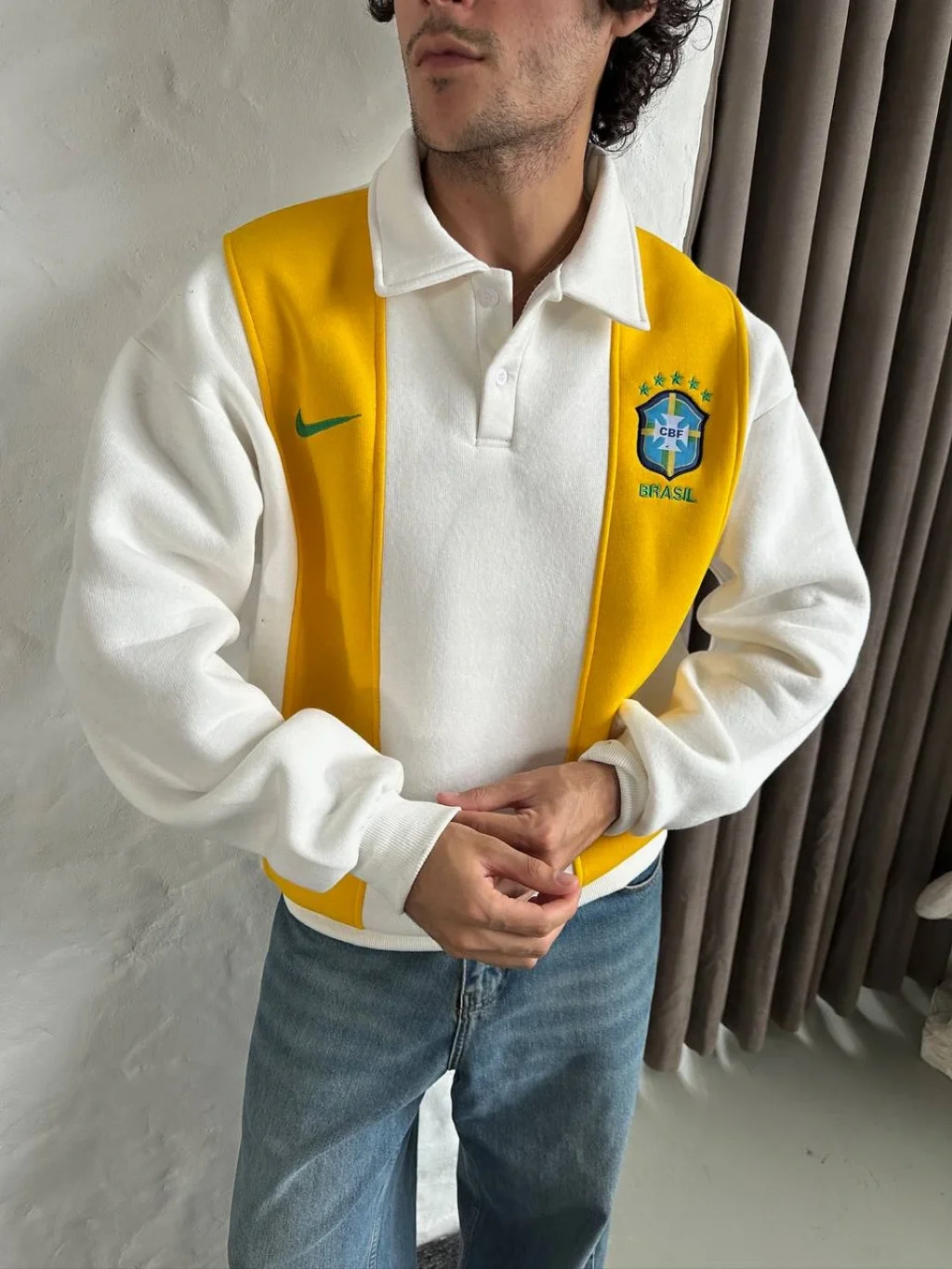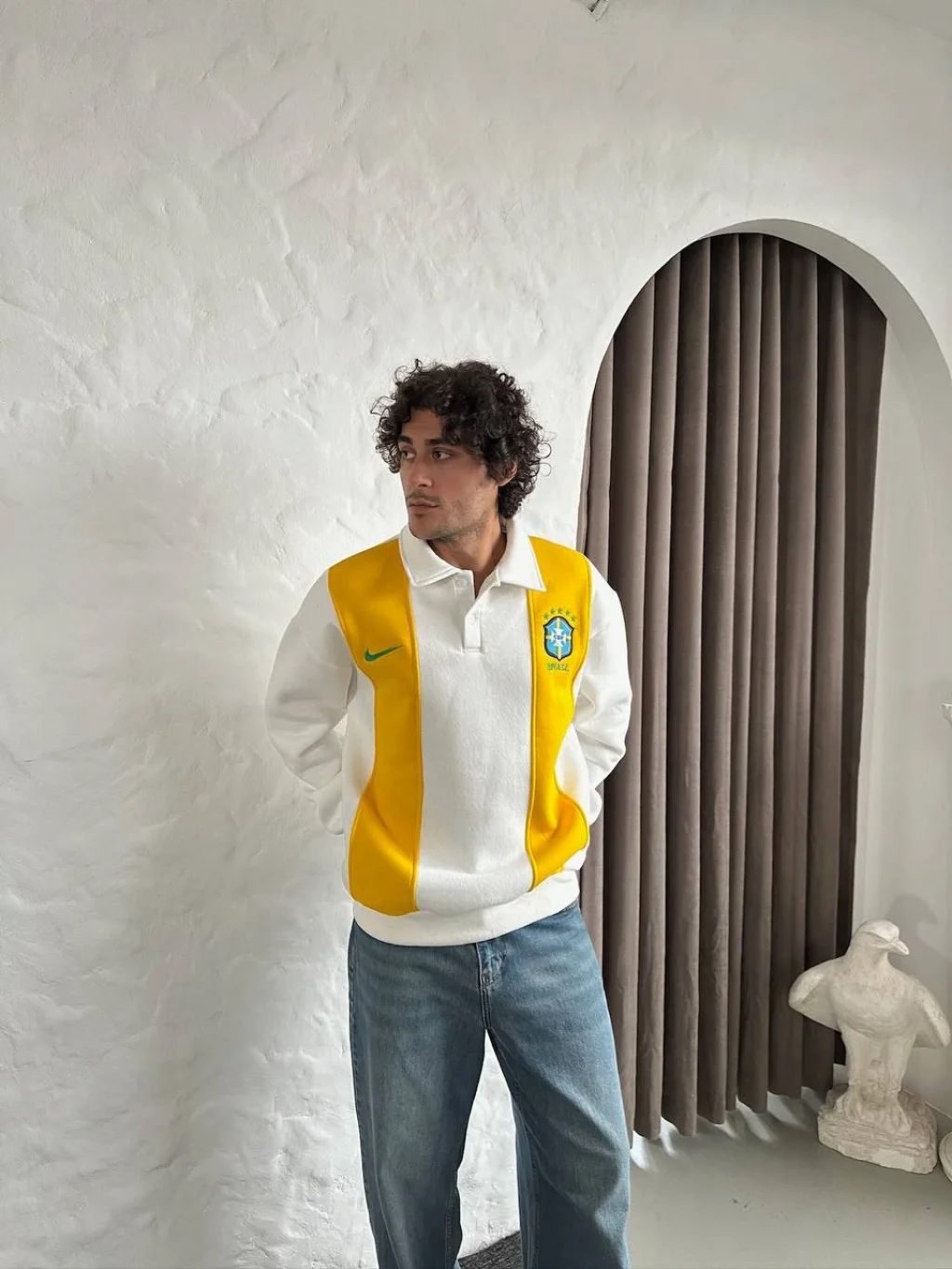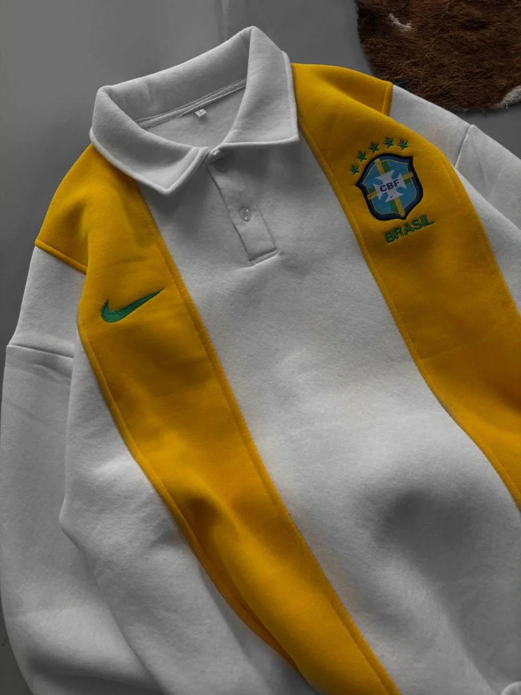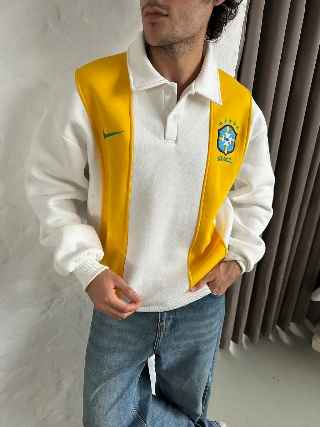 Sarı Brasil Polo Yaka Unisex Oversize Sweat