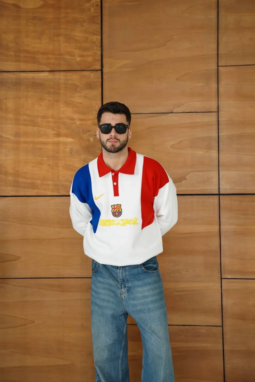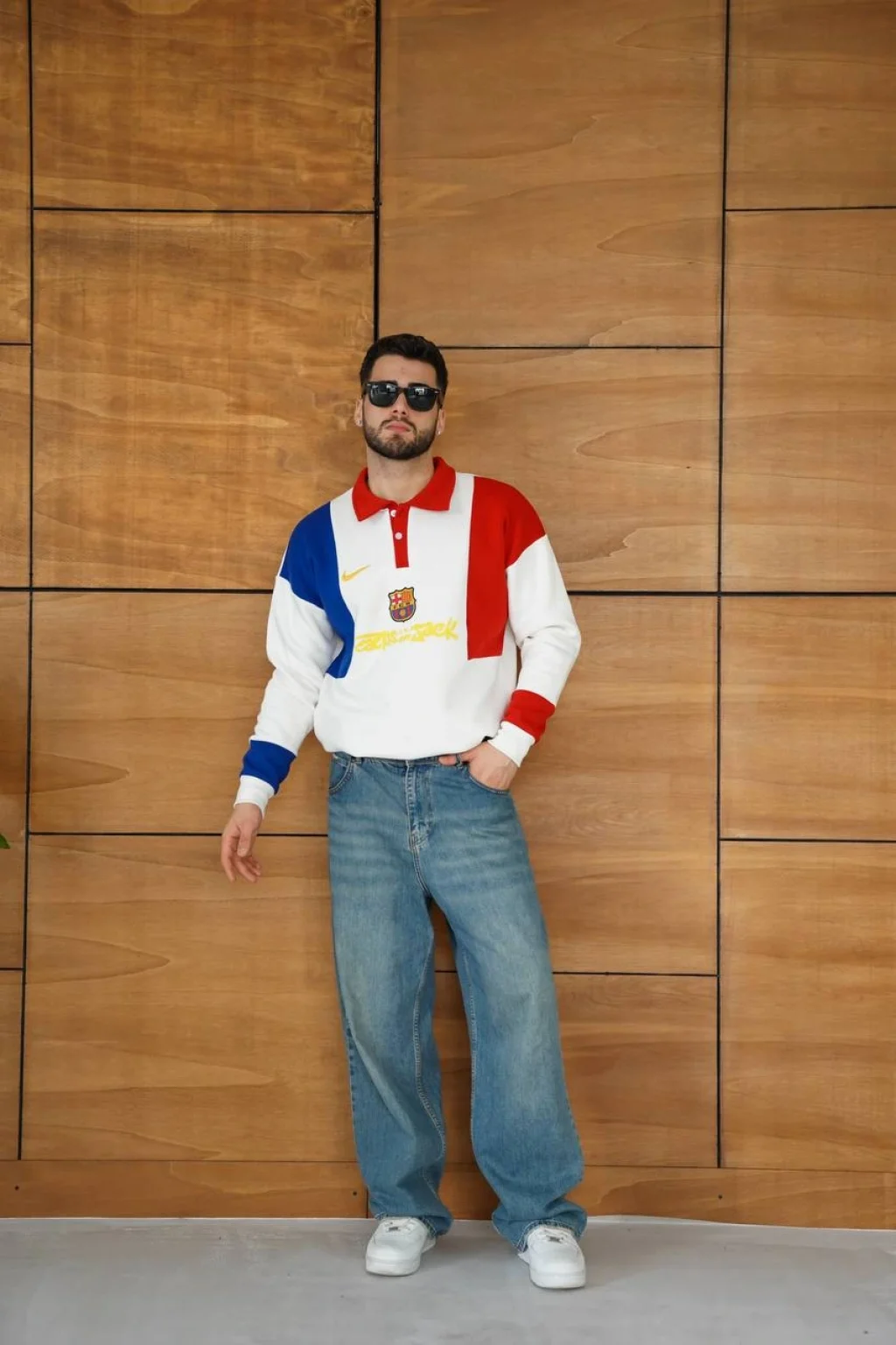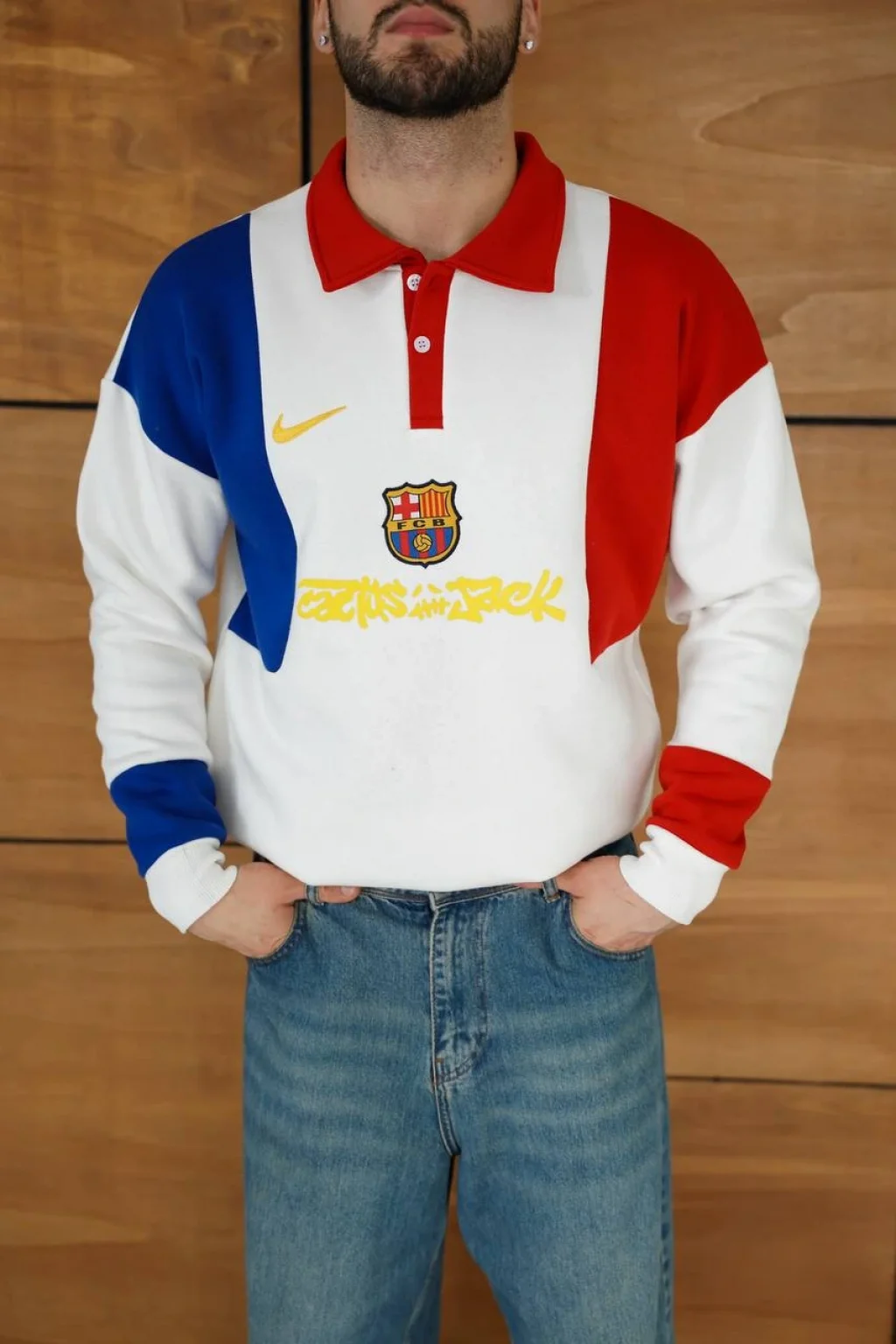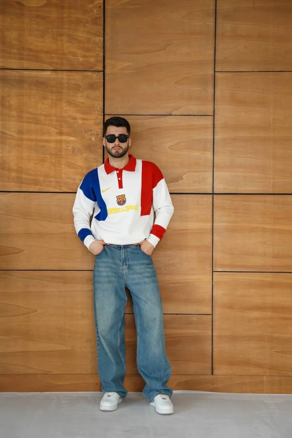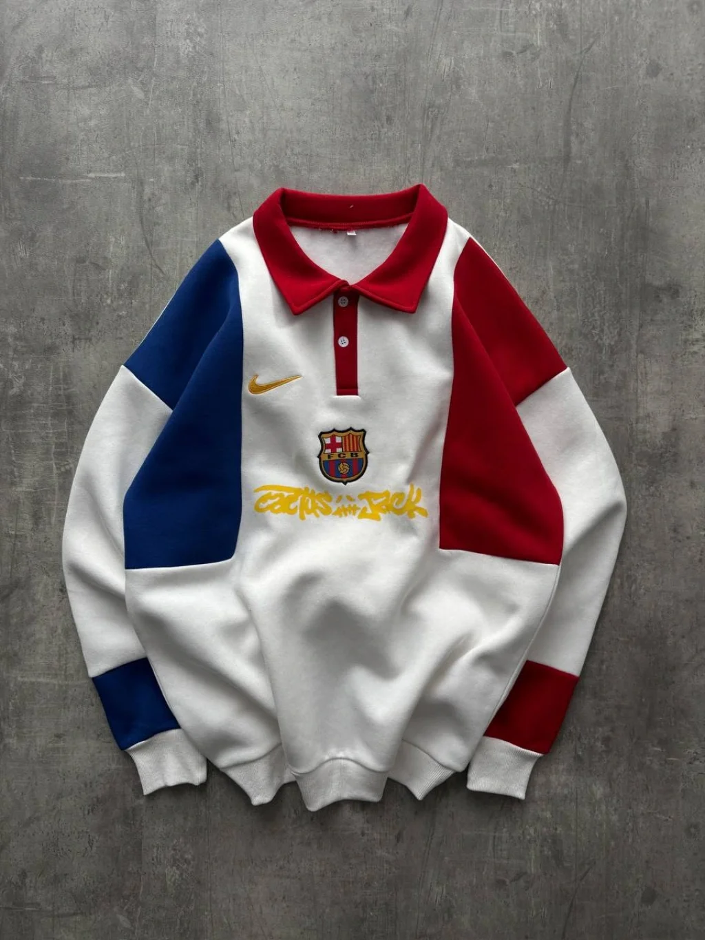Beyaz FCB Polo Yaka Unisex Oversize Sweat