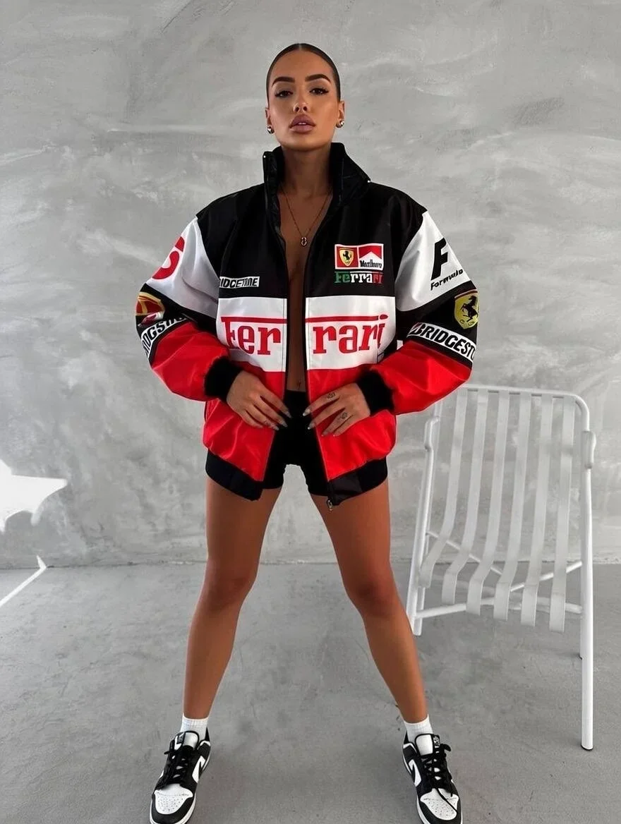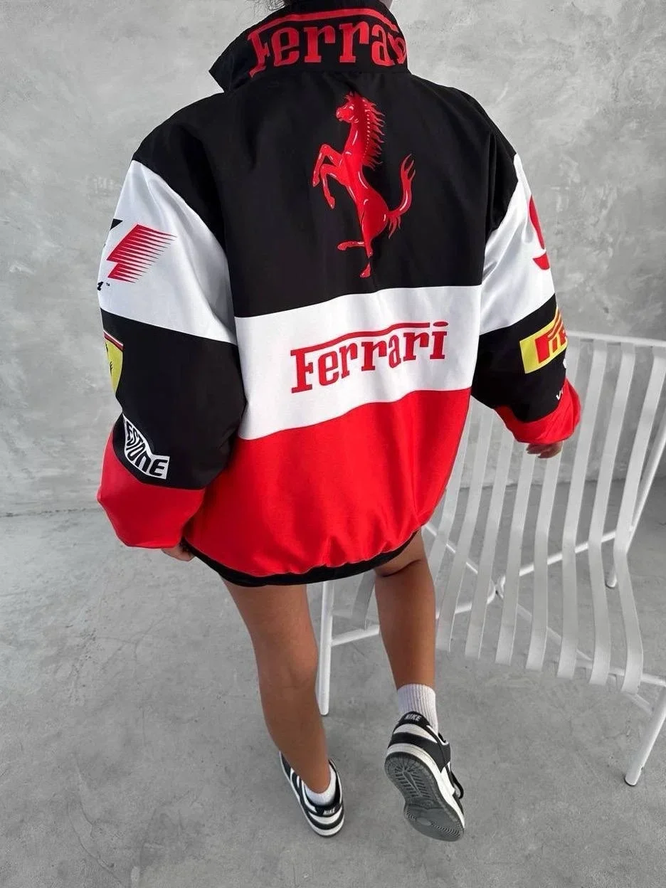 Beyaz Ferrari İçi astarlı Unisex Bomber Ceket