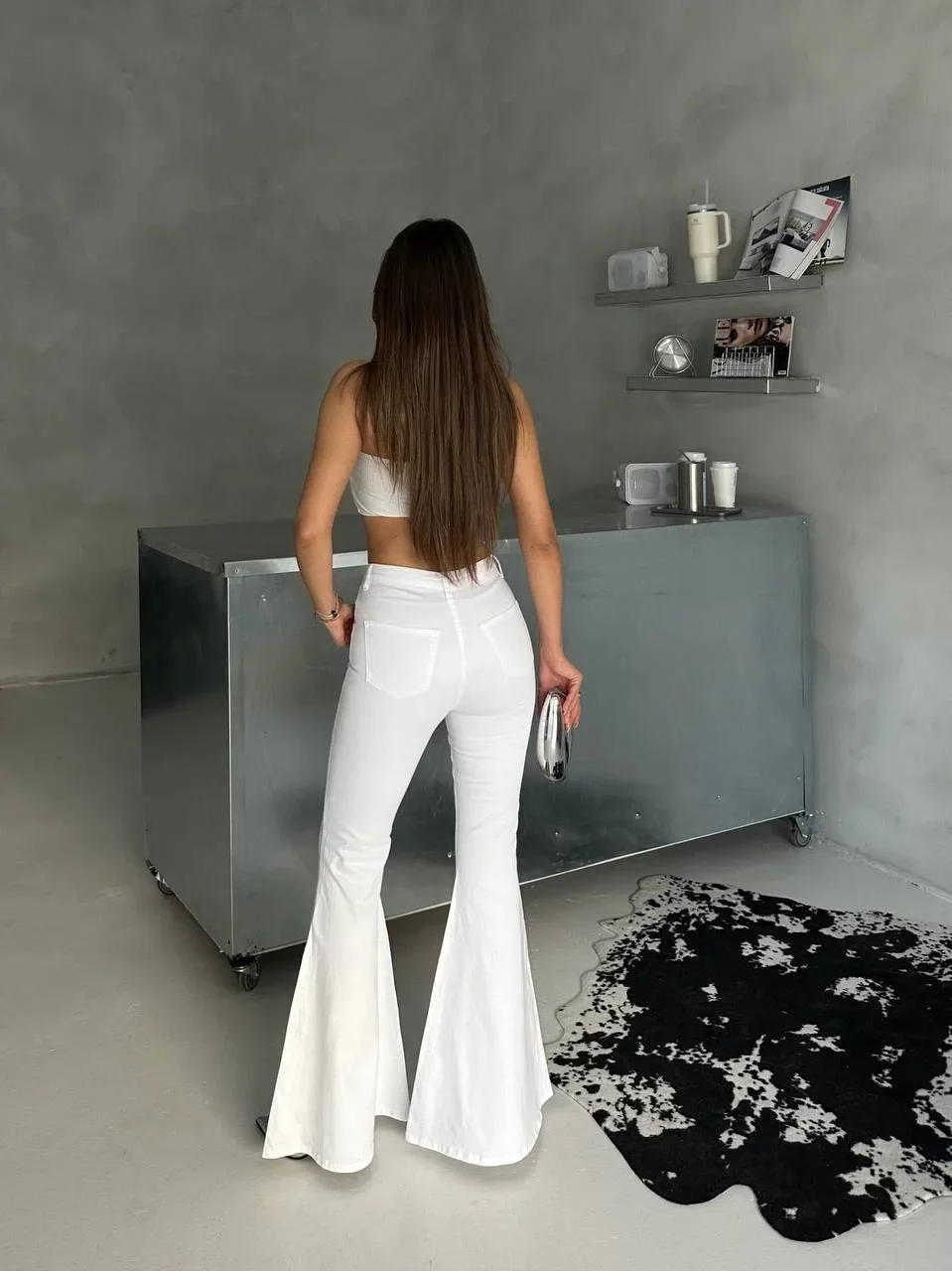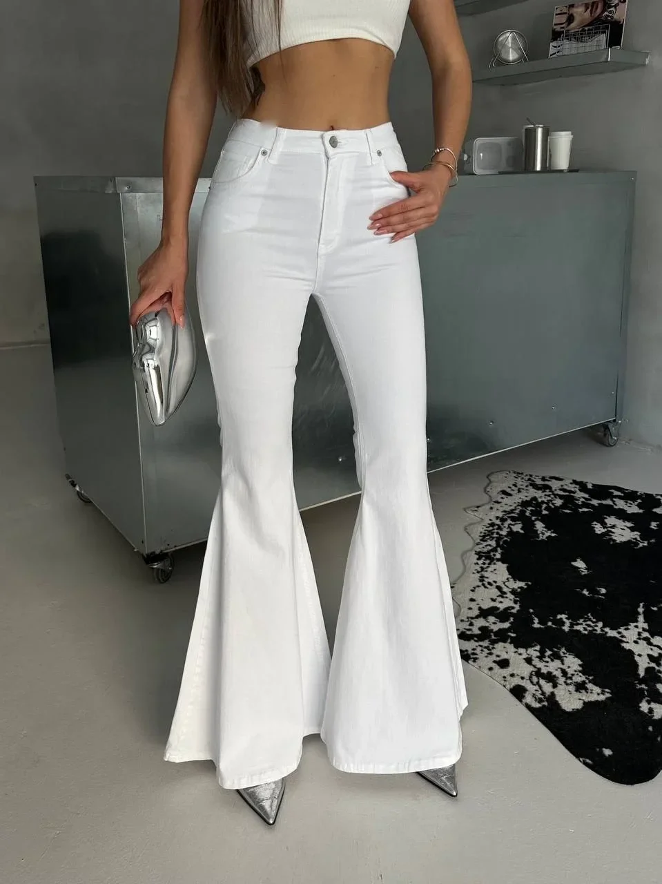 Beyaz İspanyol Paça Likralı Kot Pantolon