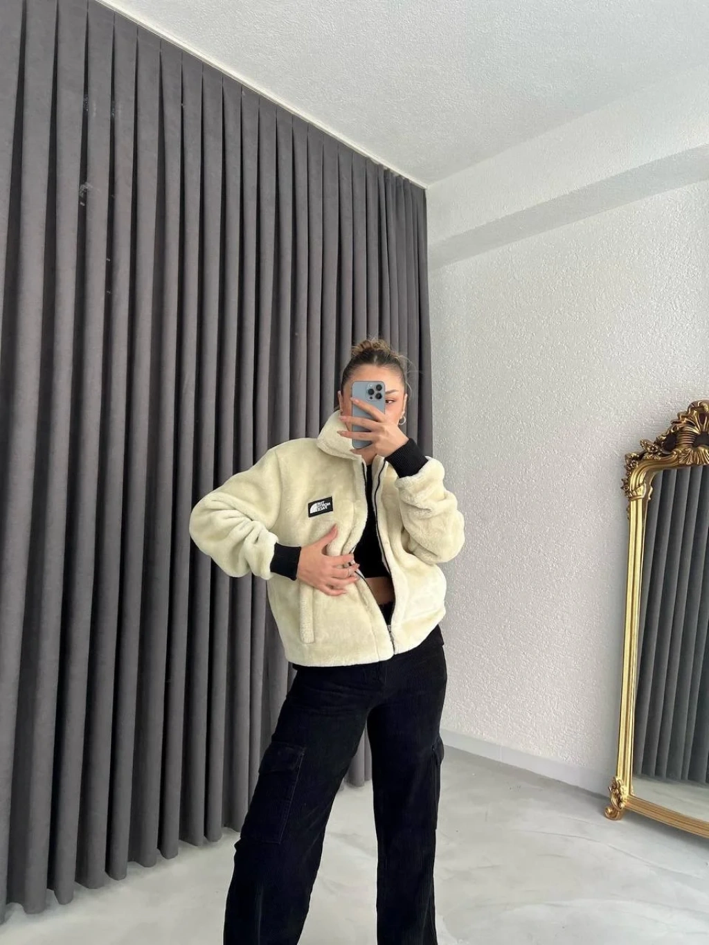 Beyaz NF Oversize Unisex İçi Astarlı Rabbit Mont