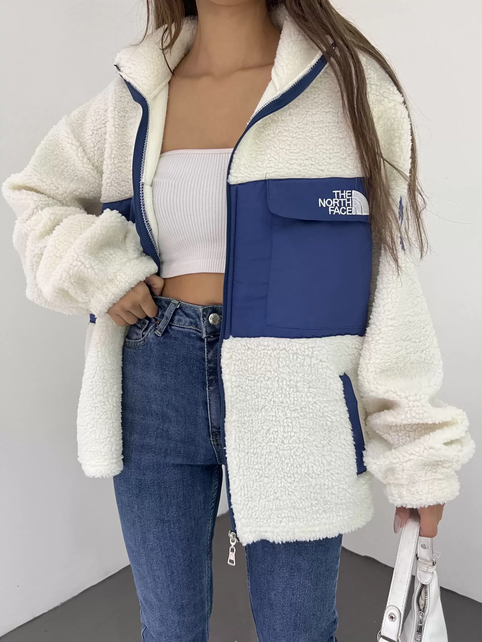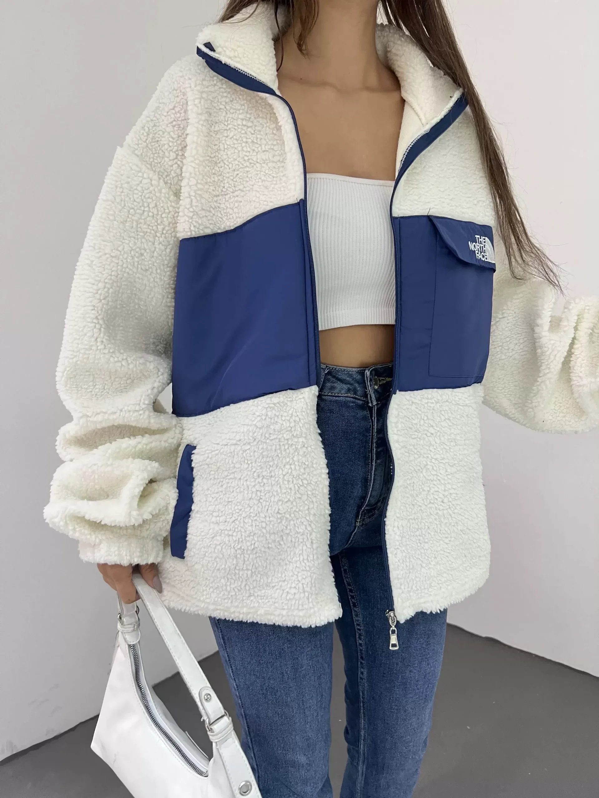Beyaz Nf Oversize Unisex Kıvırcık Kürklü Ceket