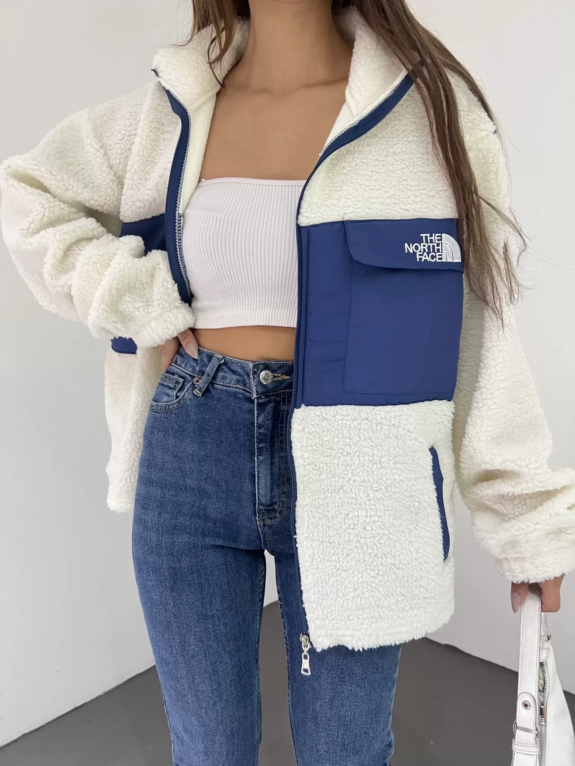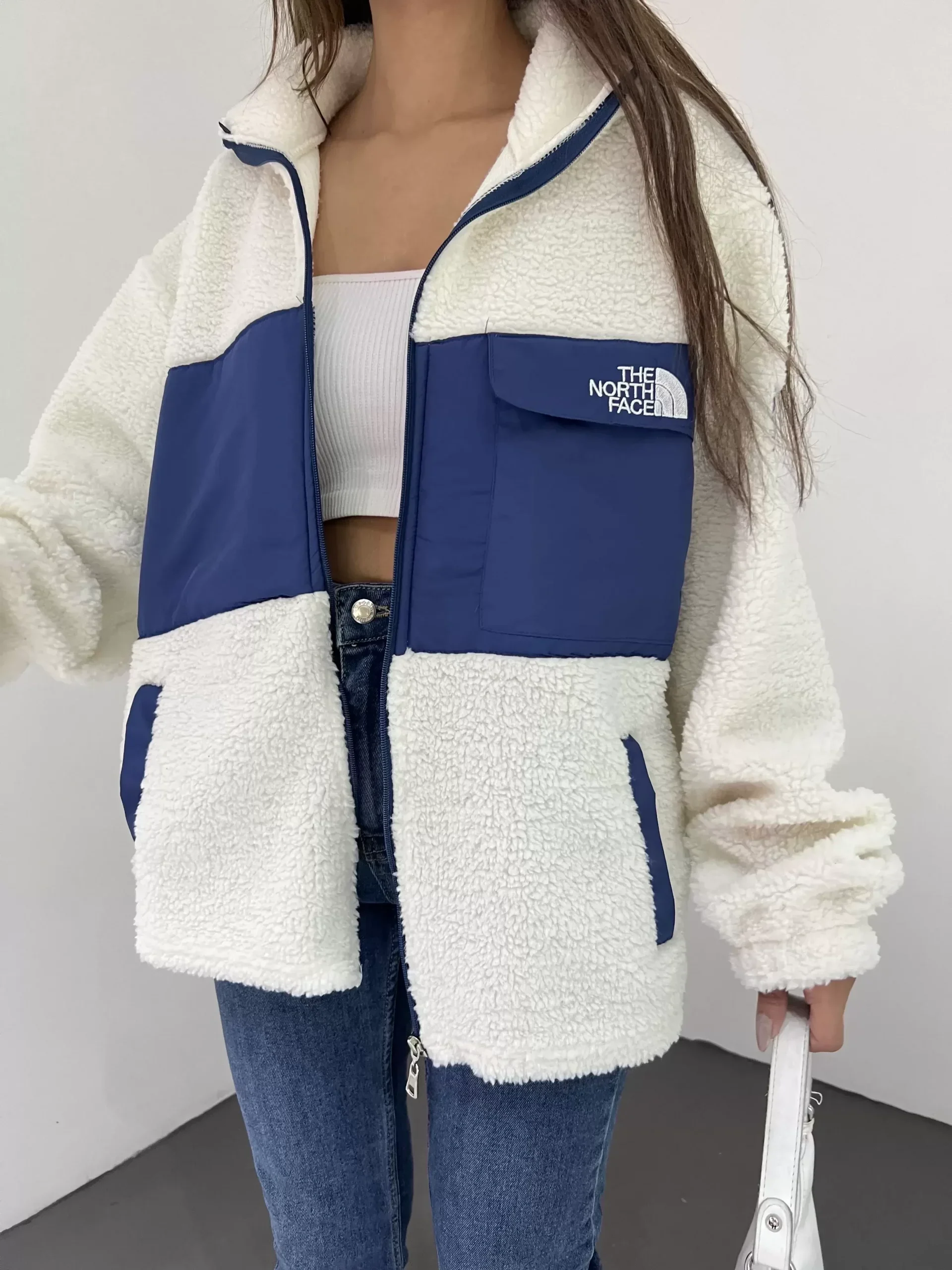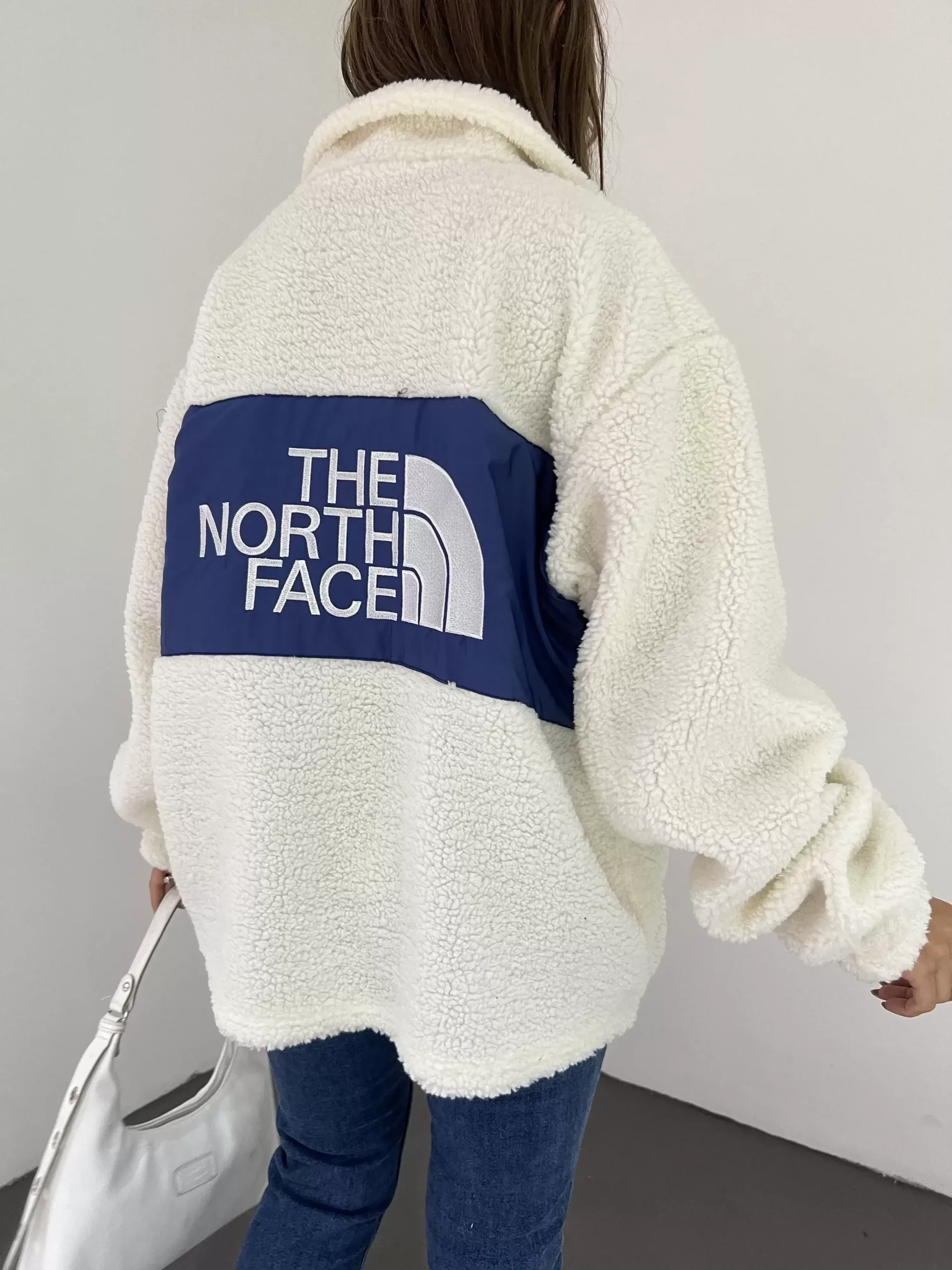• Beyaz Nf Oversize Unisex Kıvırcık Kürklü Ceket