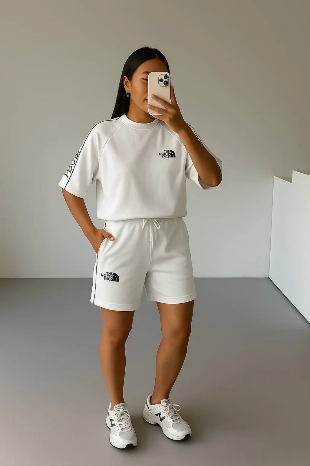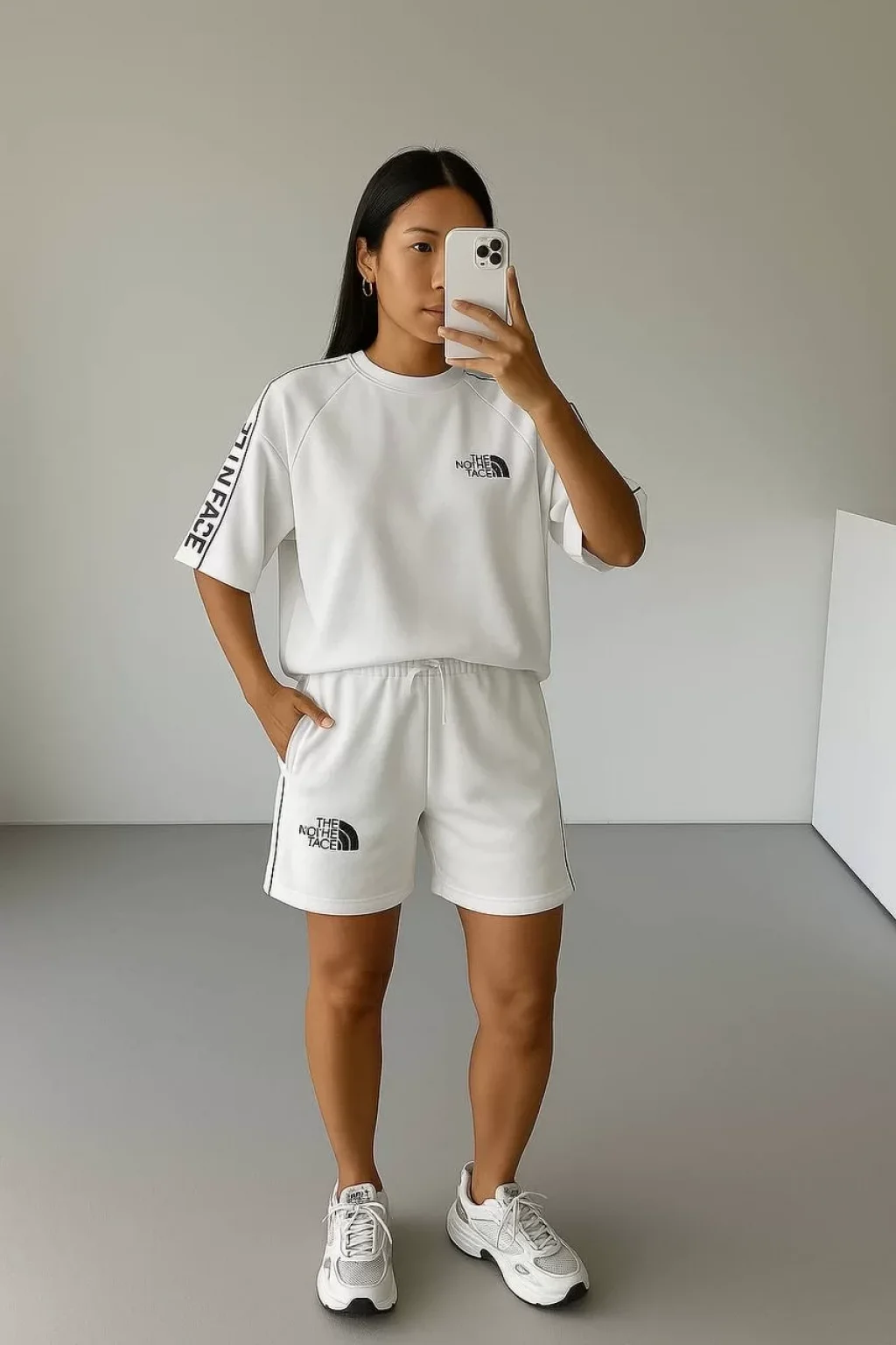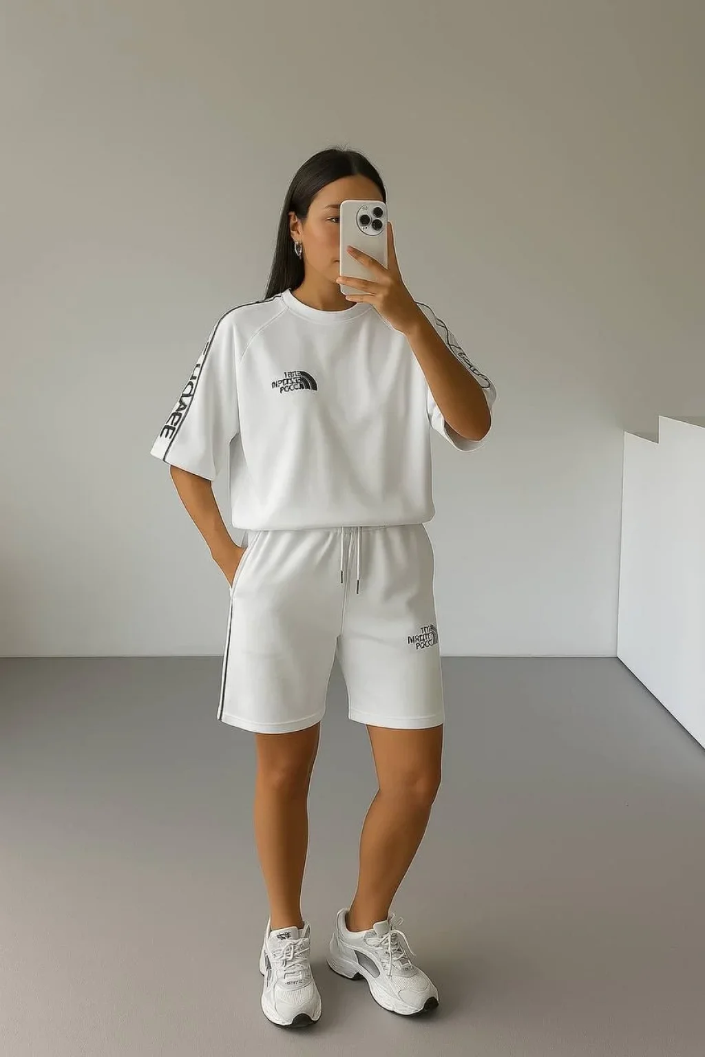 Siyah ADD Fuşya Çizgili Oversize Unisex Şortlu Takım