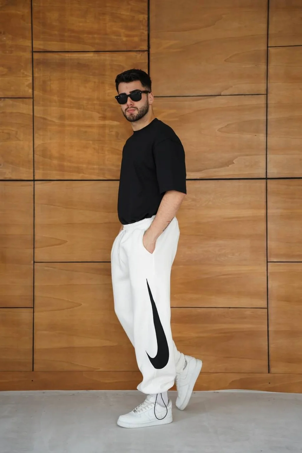 Beyaz NK Big Logo Unisex Oversize Eşofman