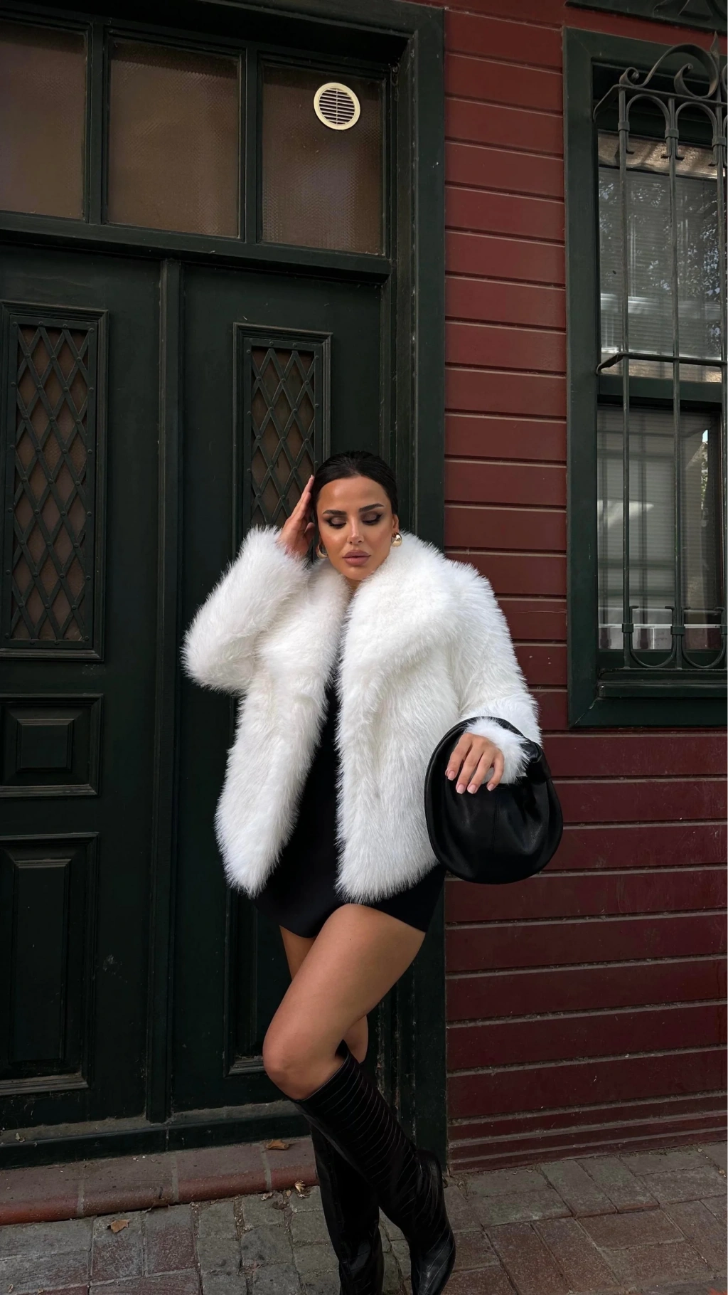 Beyaz NF Oversize Unisex İçi Astarlı Rabbit Mont