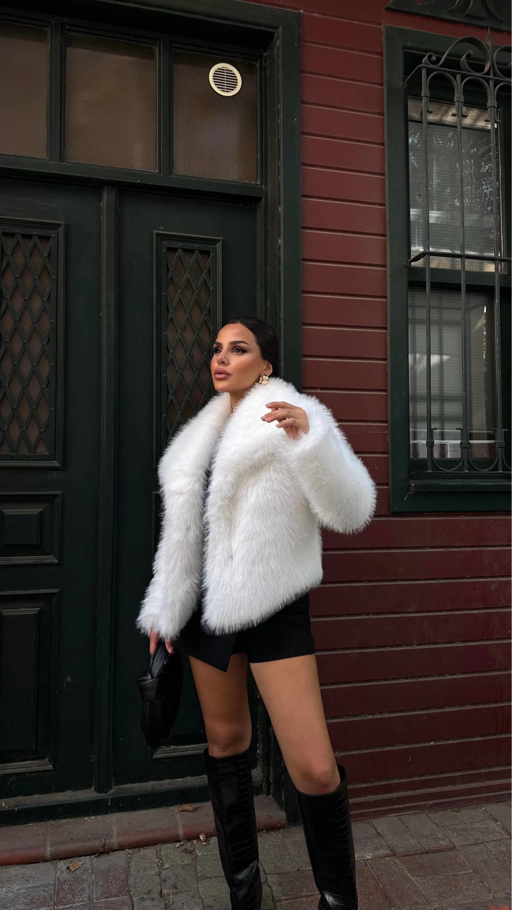 Beyaz Şal Yaka İçi Astarlı Kürk Kaban
