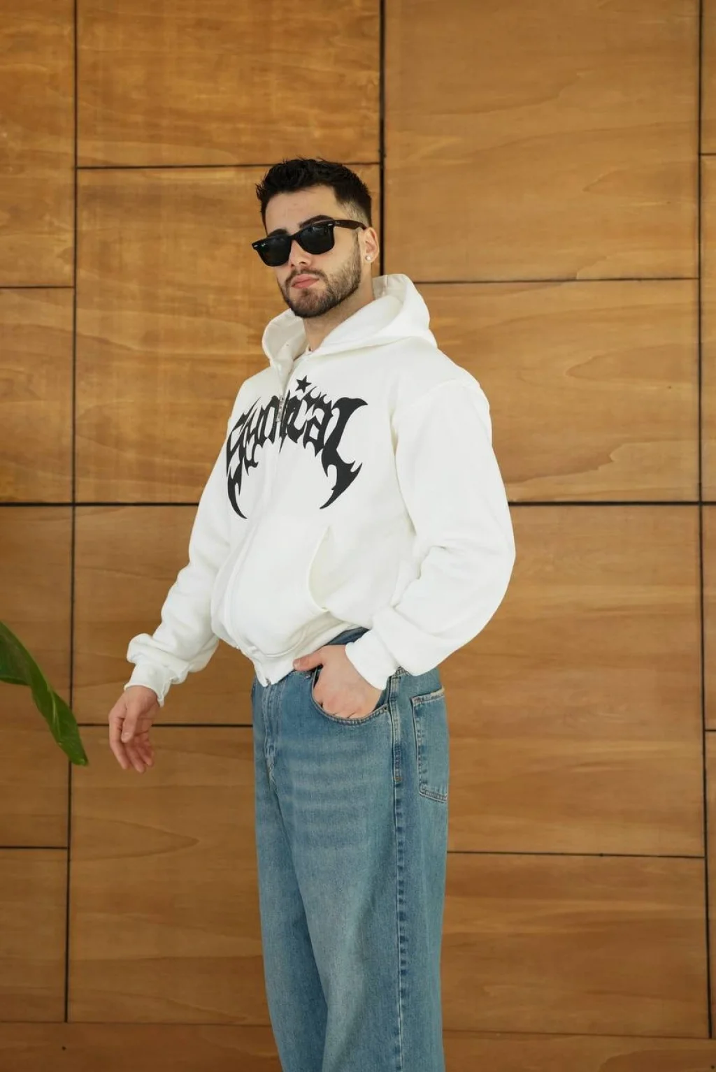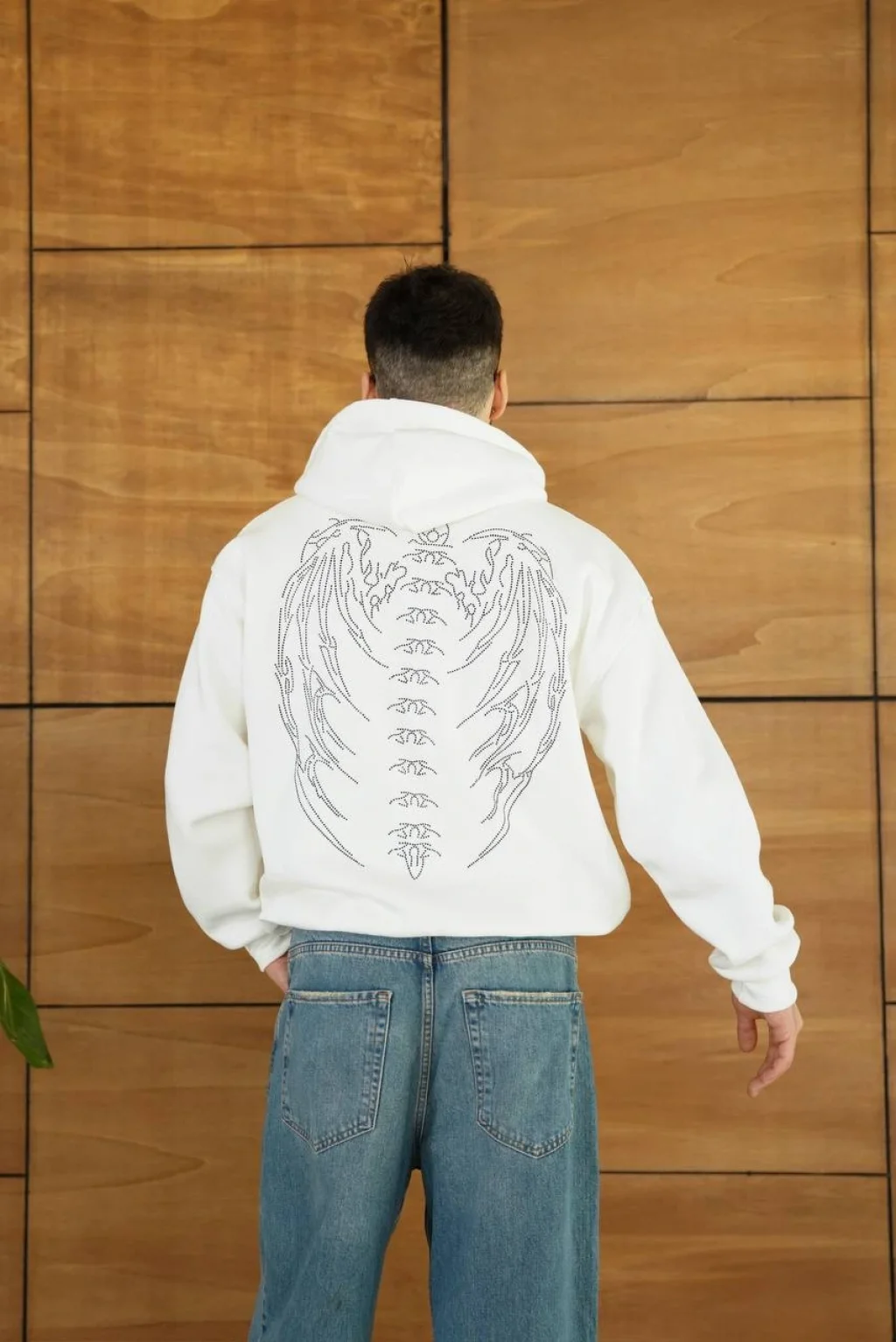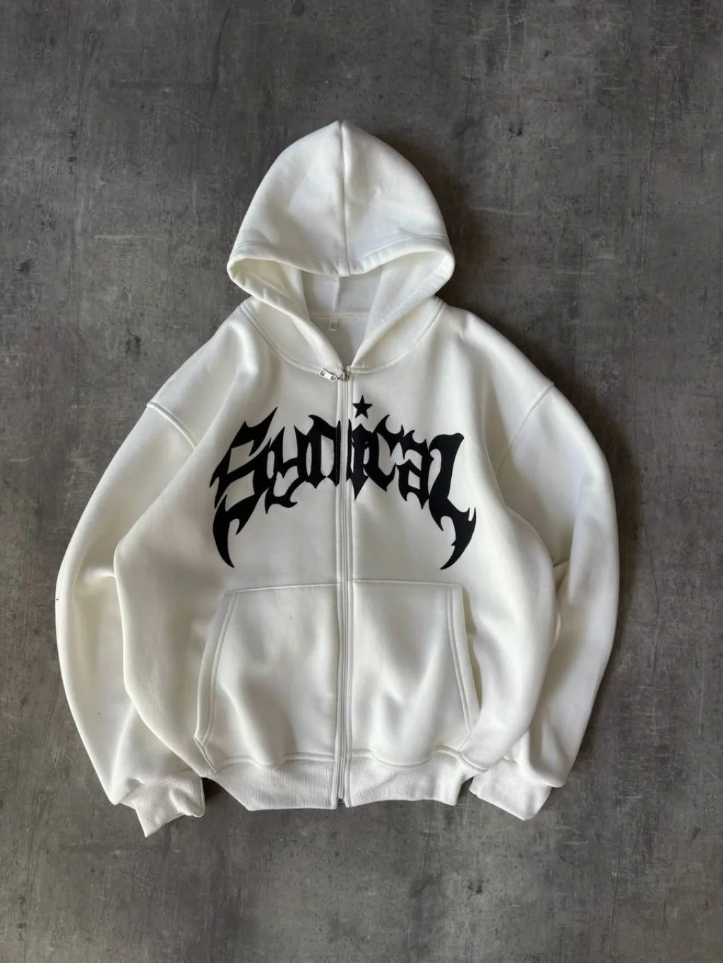 Beyaz Synical Kapşonlu Unisex Oversize Sweat