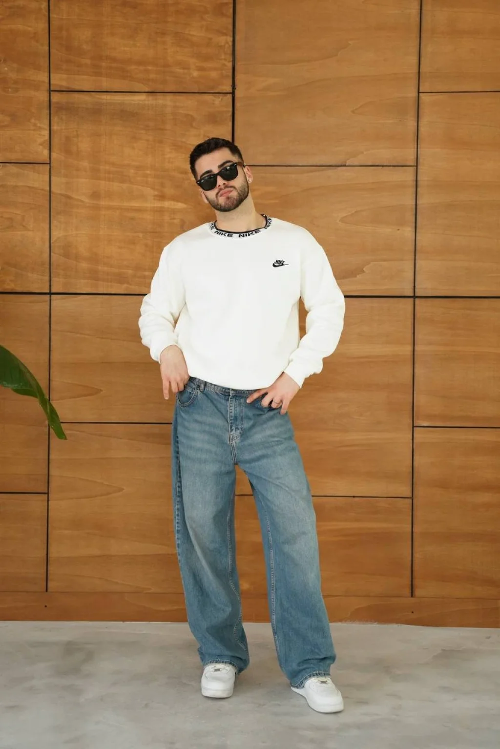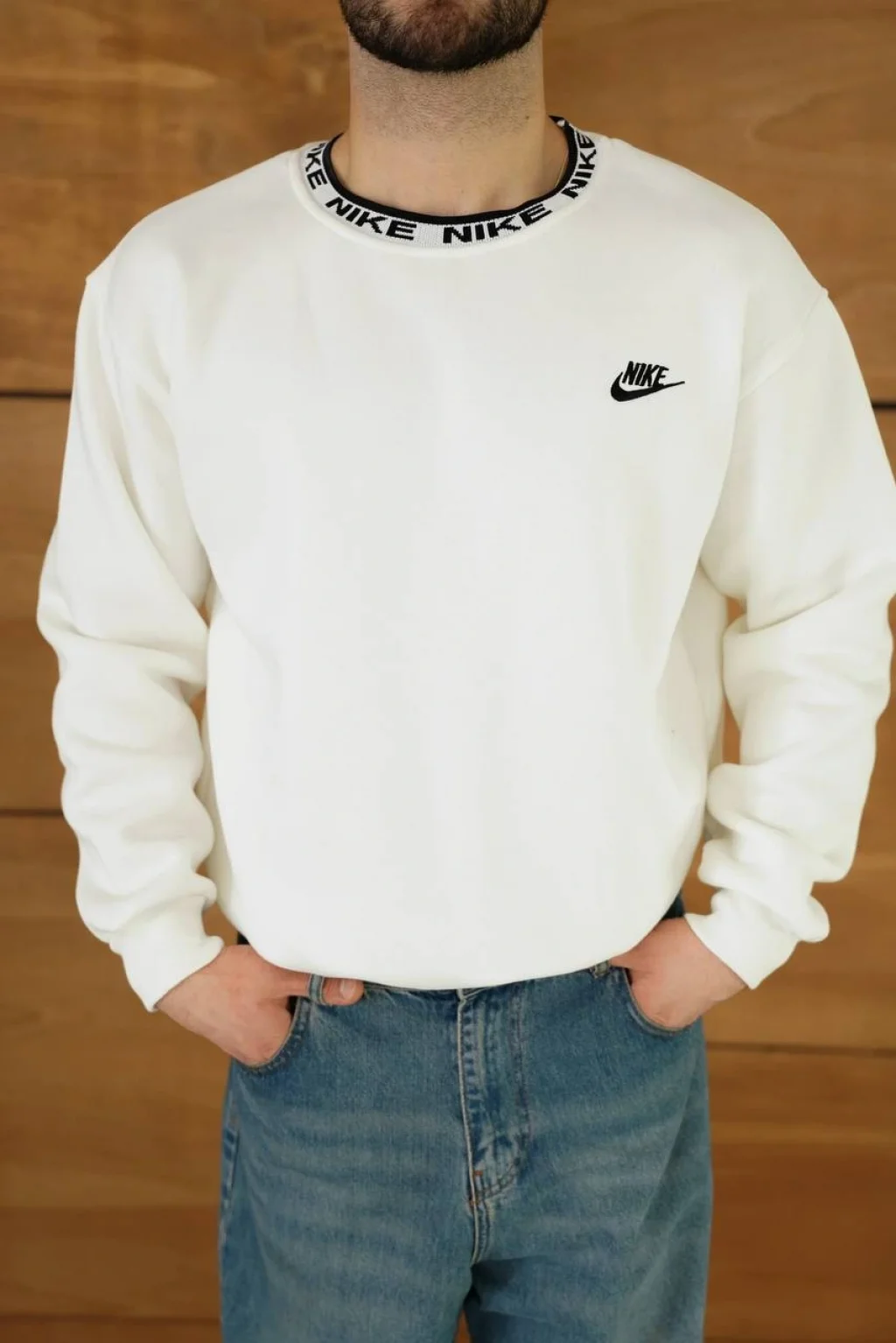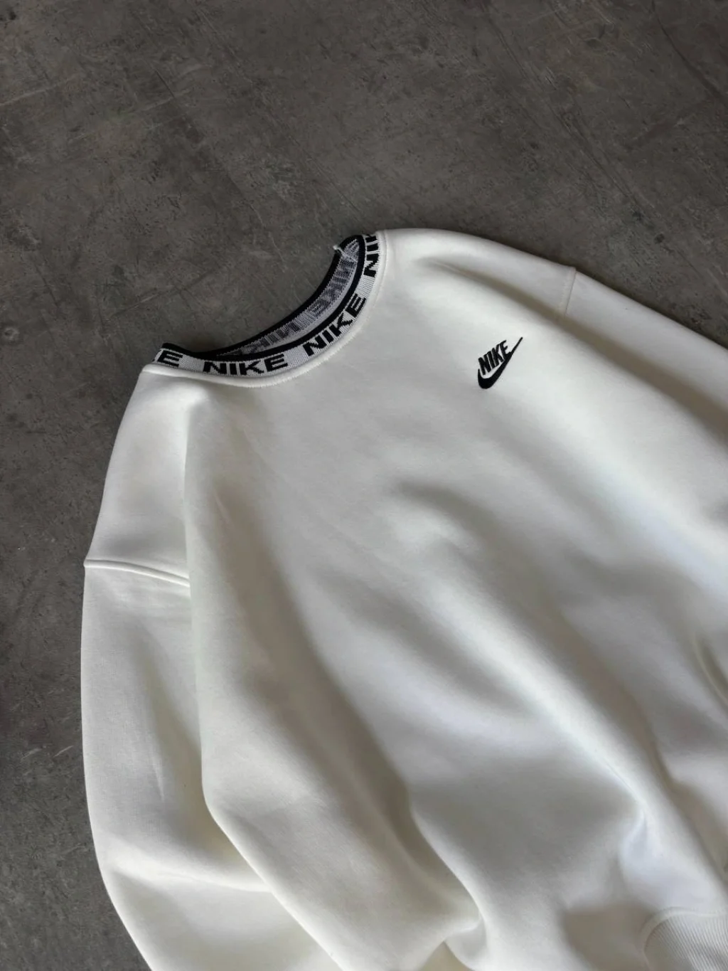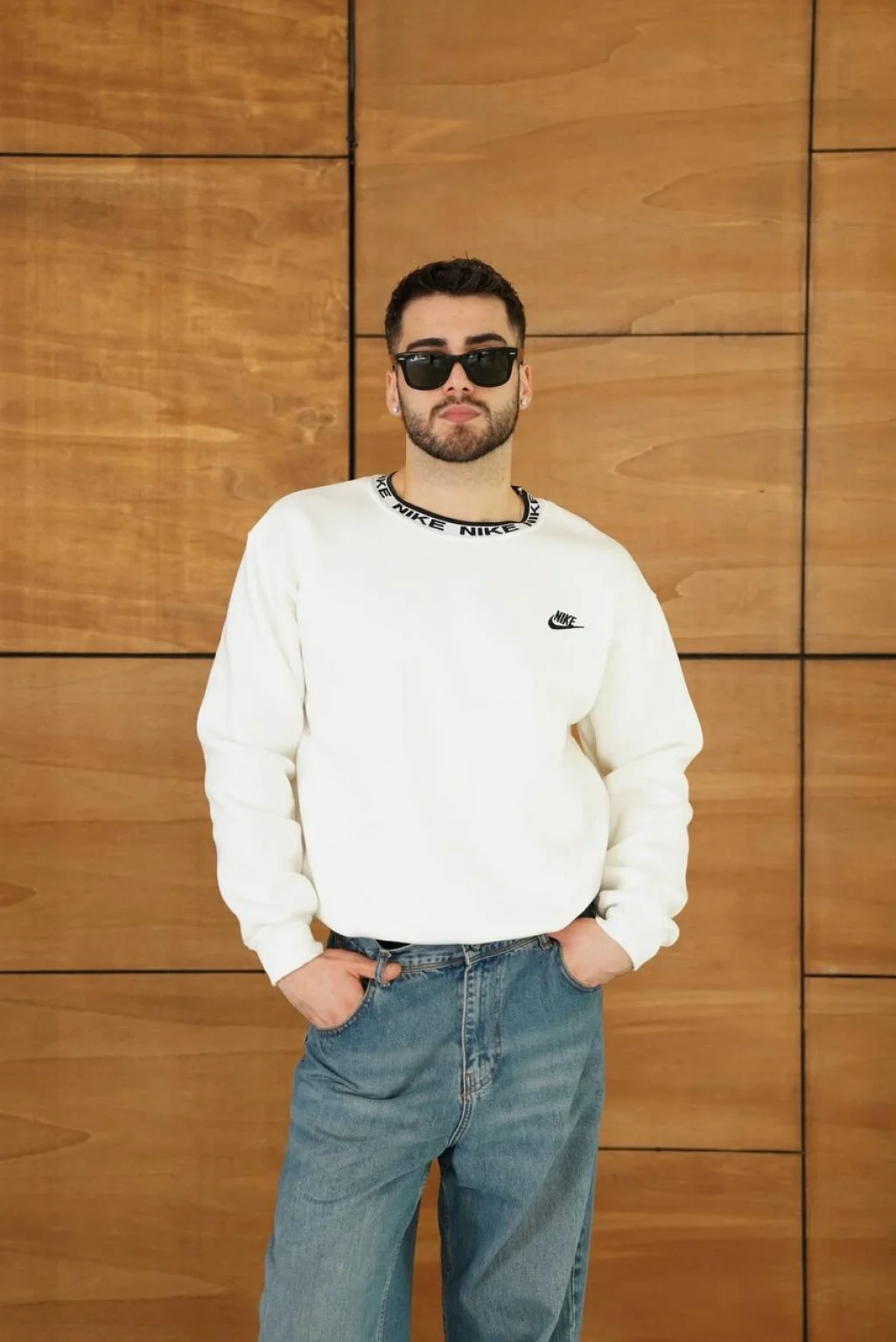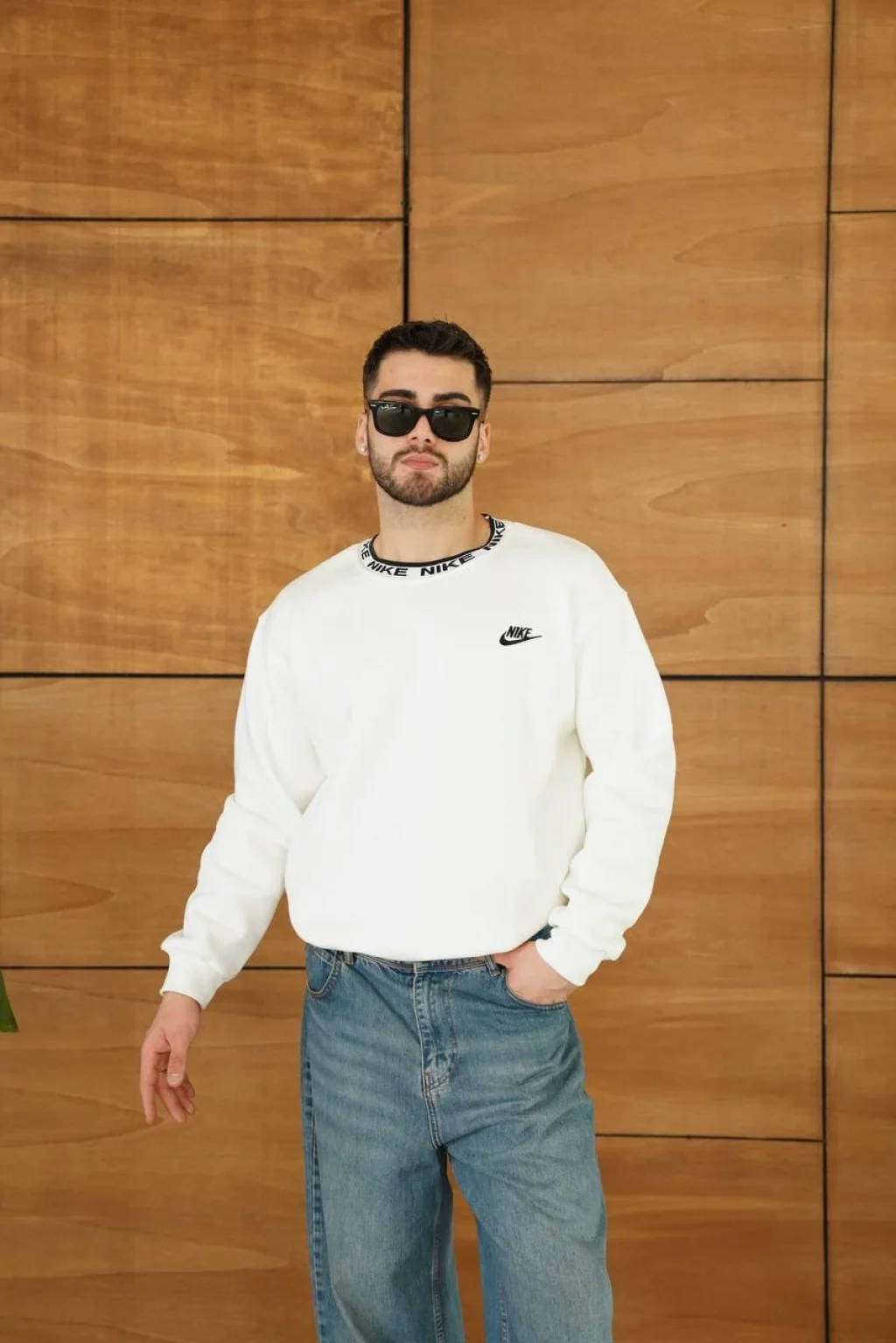 Beyaz Yaka NK Baskılı Unisex Oversize Sweat