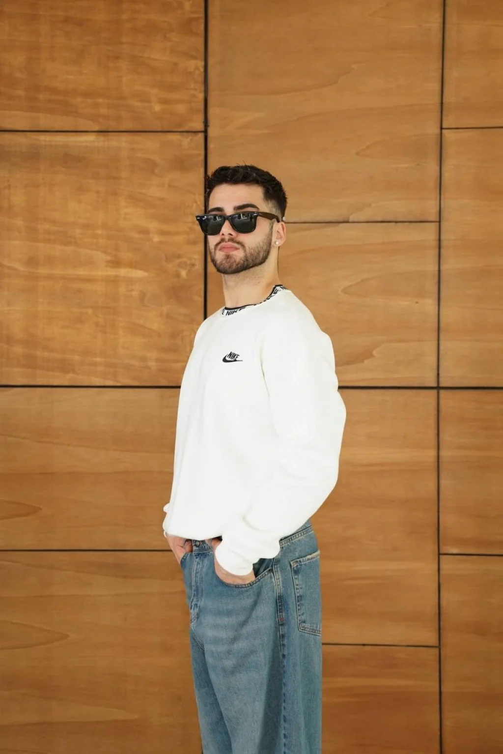 Beyaz NK Kol Biyeli Unisex Oversize Sweat