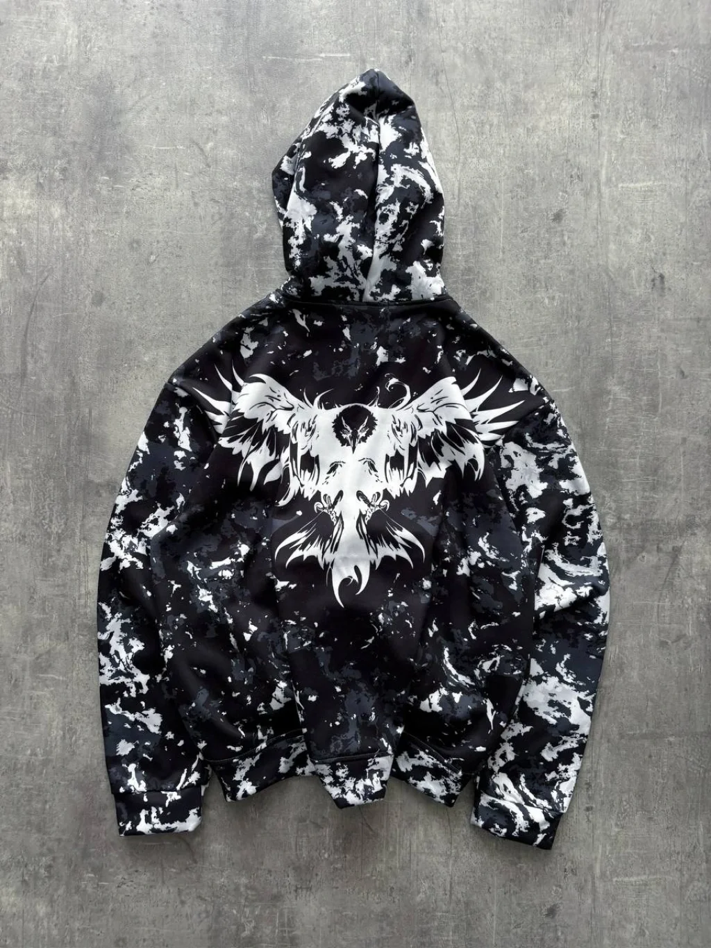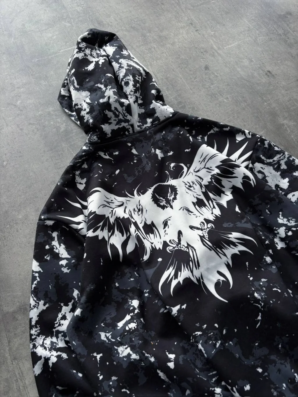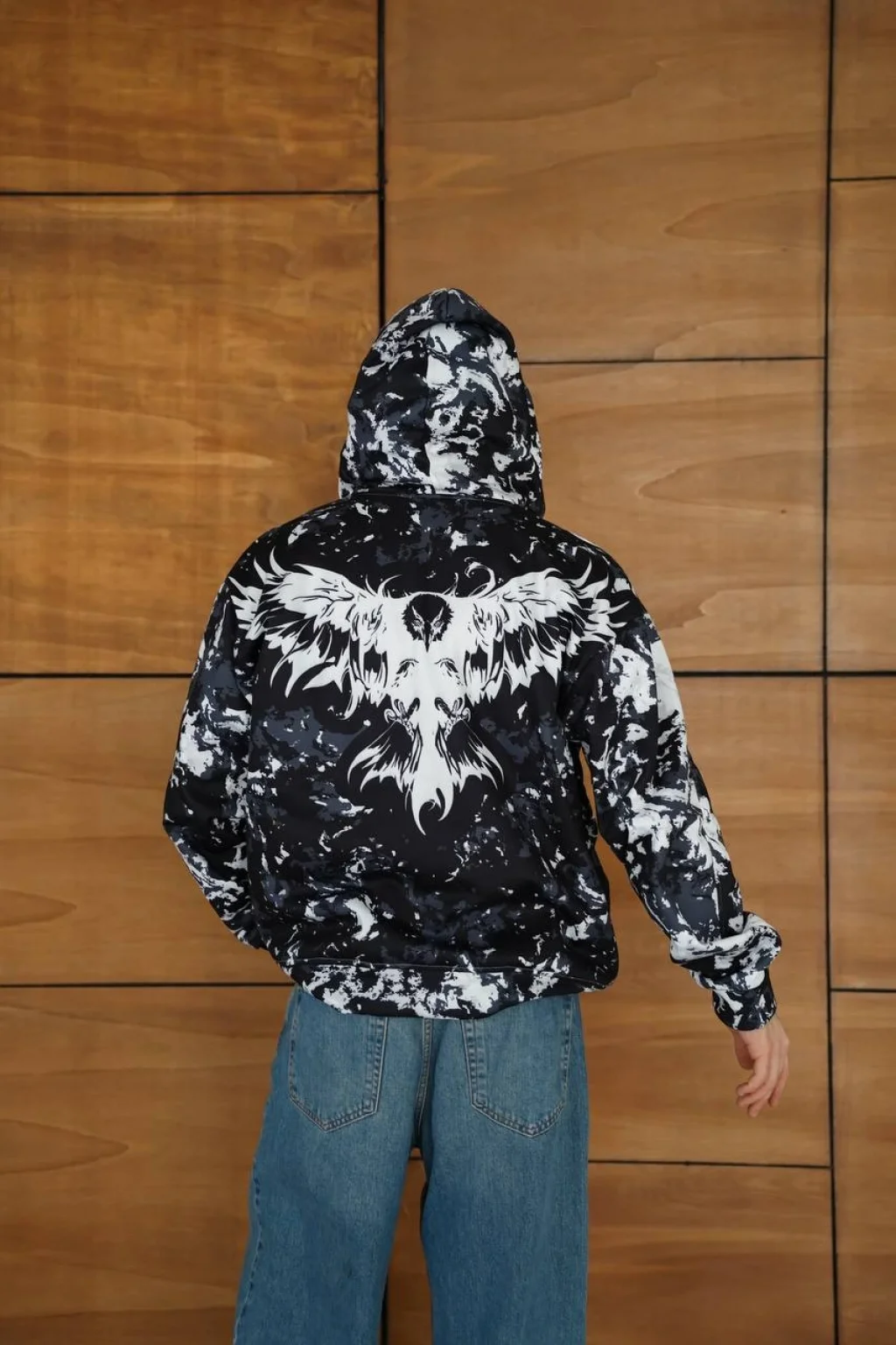 Siyah Baskılı Kapşonlu Unisex Oversize Sweat