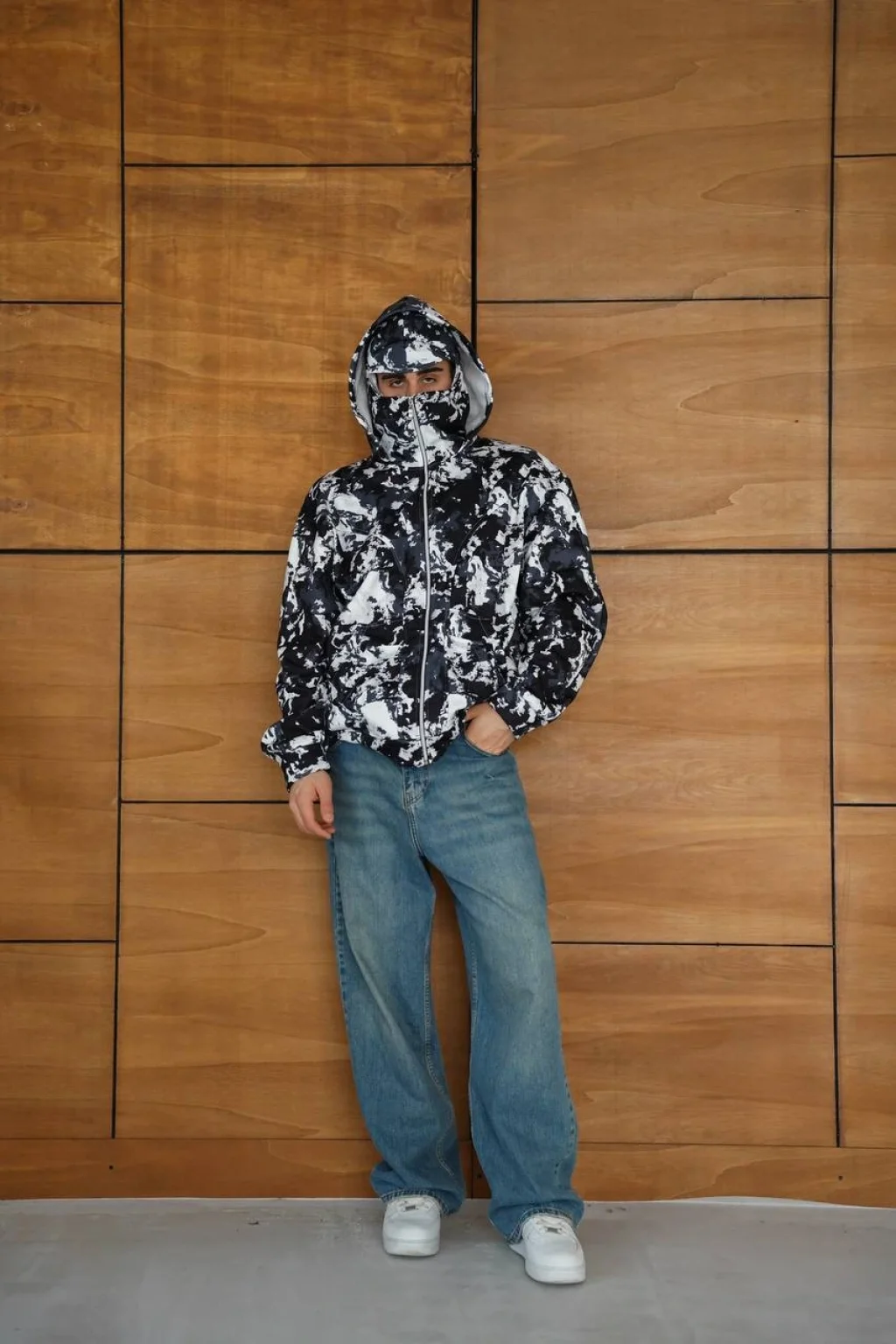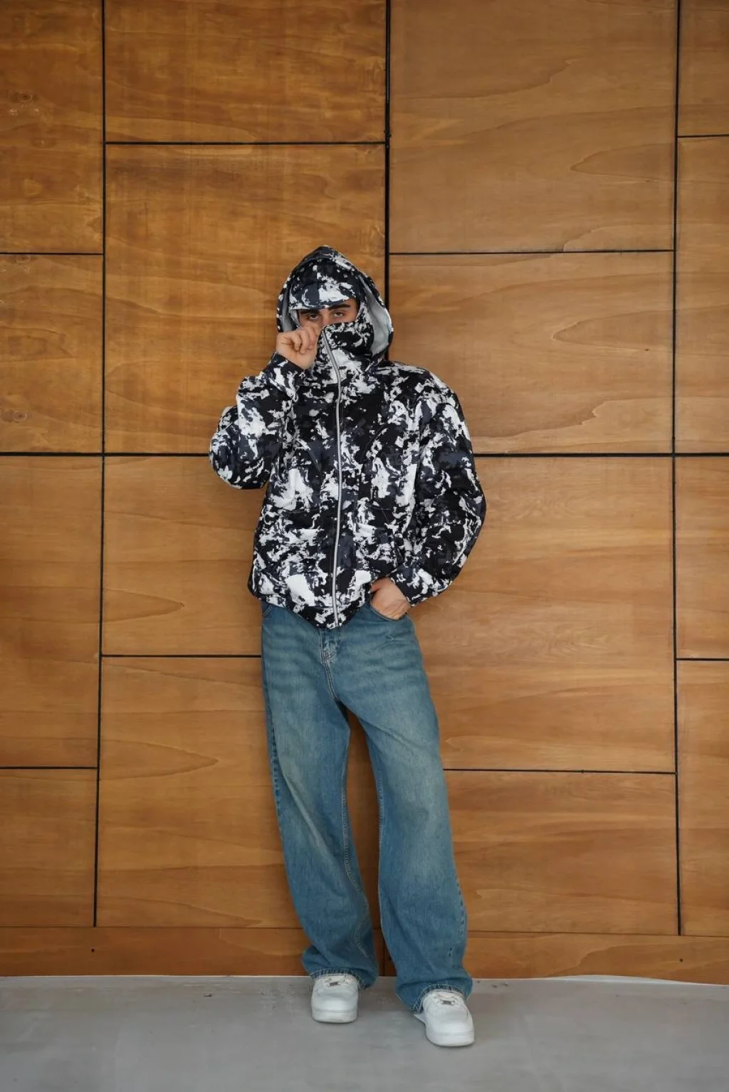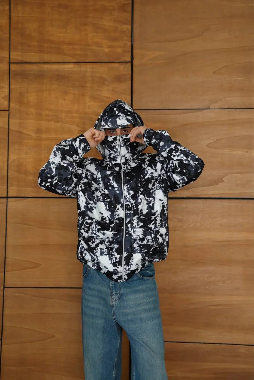 Siyah Baskılı Kapşonlu Unisex Oversize Sweat
