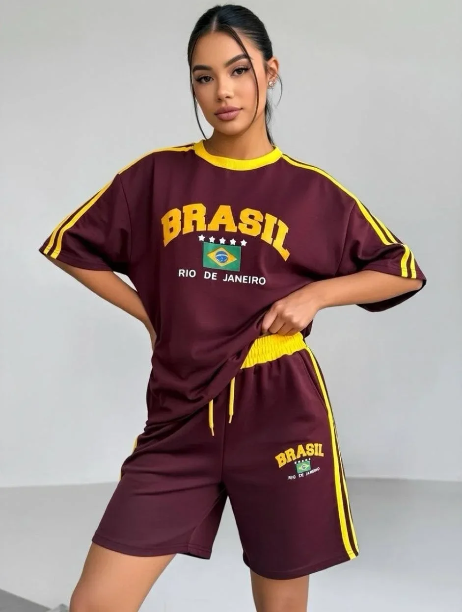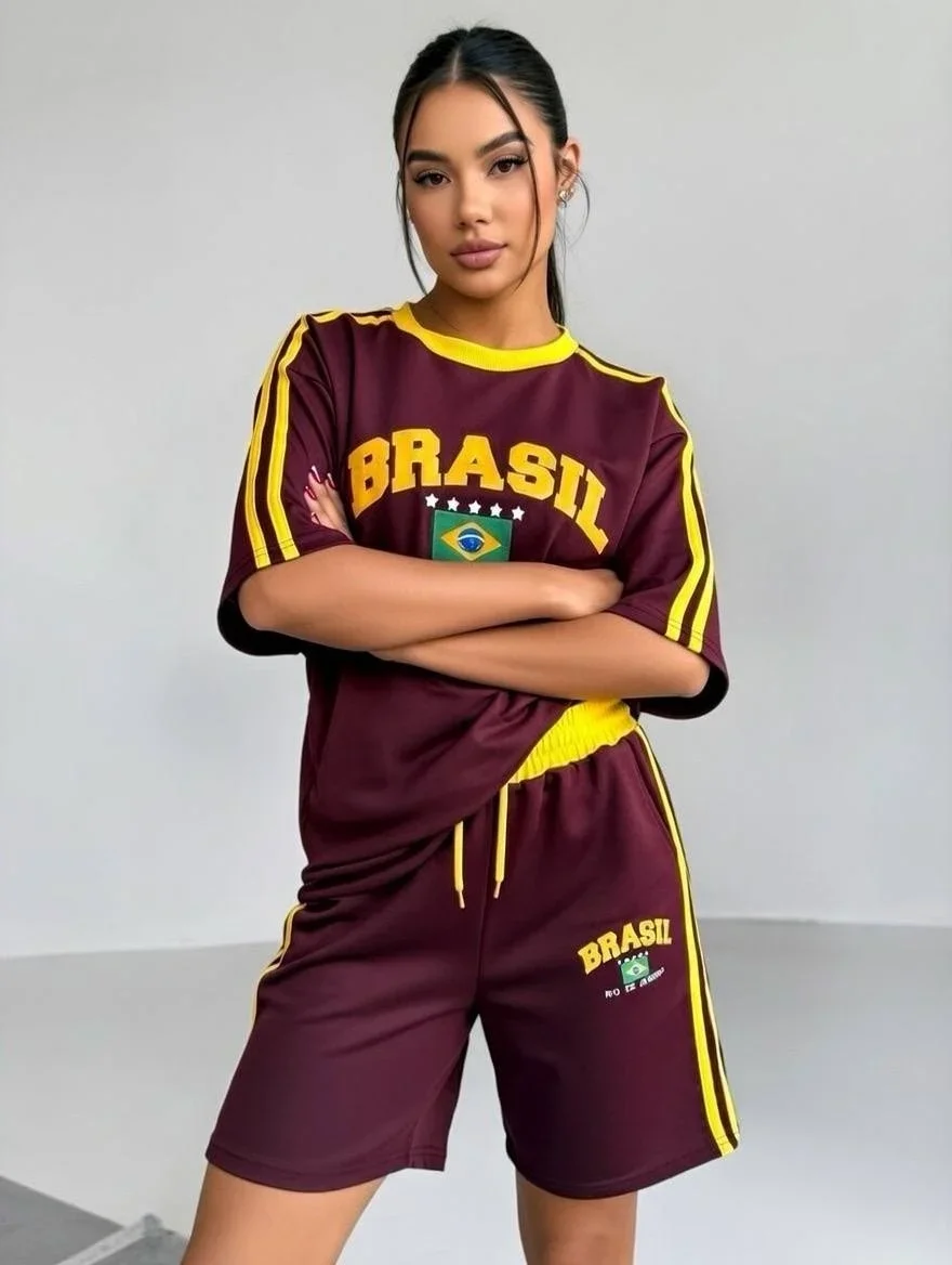 Bordo Brasil Oversize Unisex Şortlu Takım