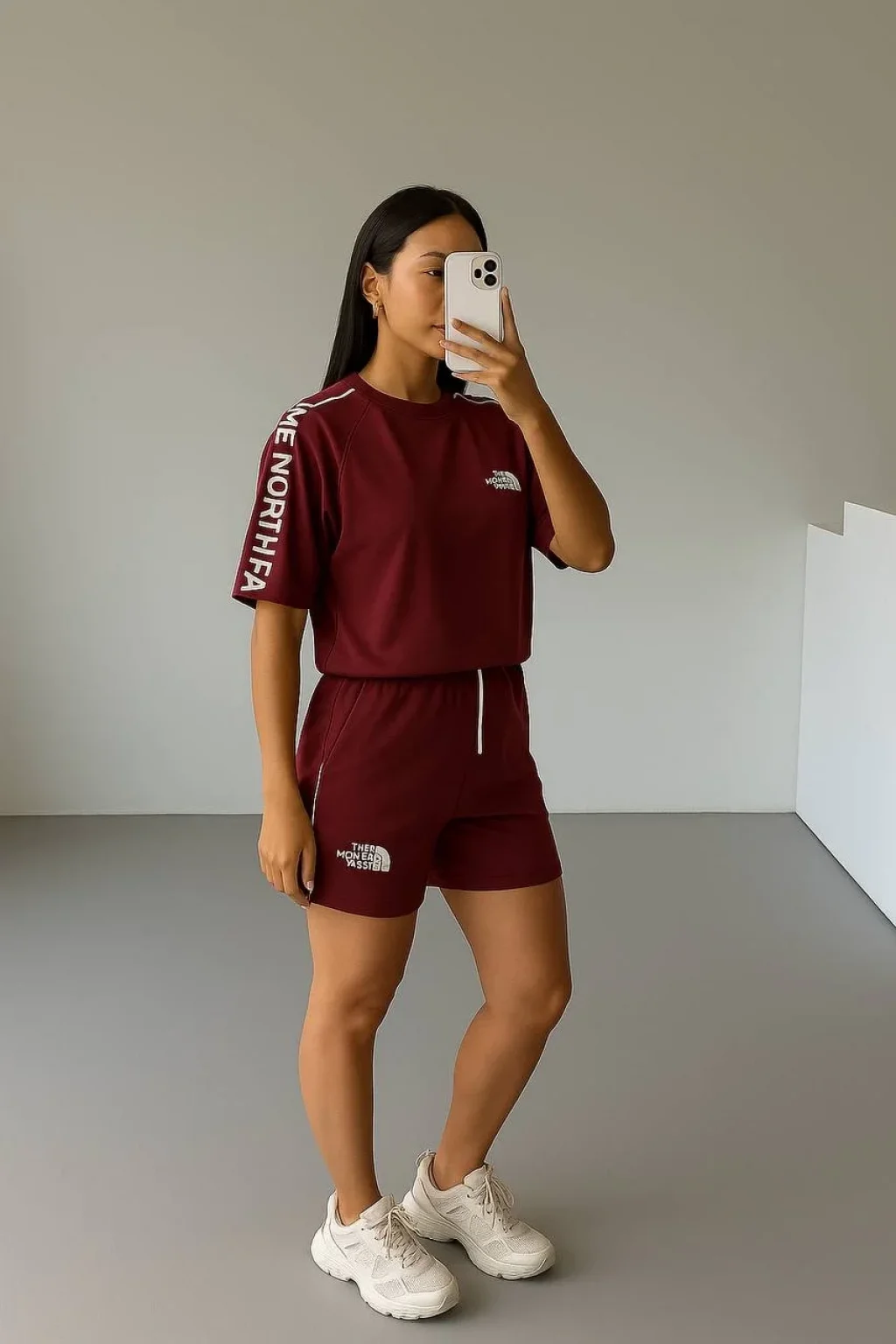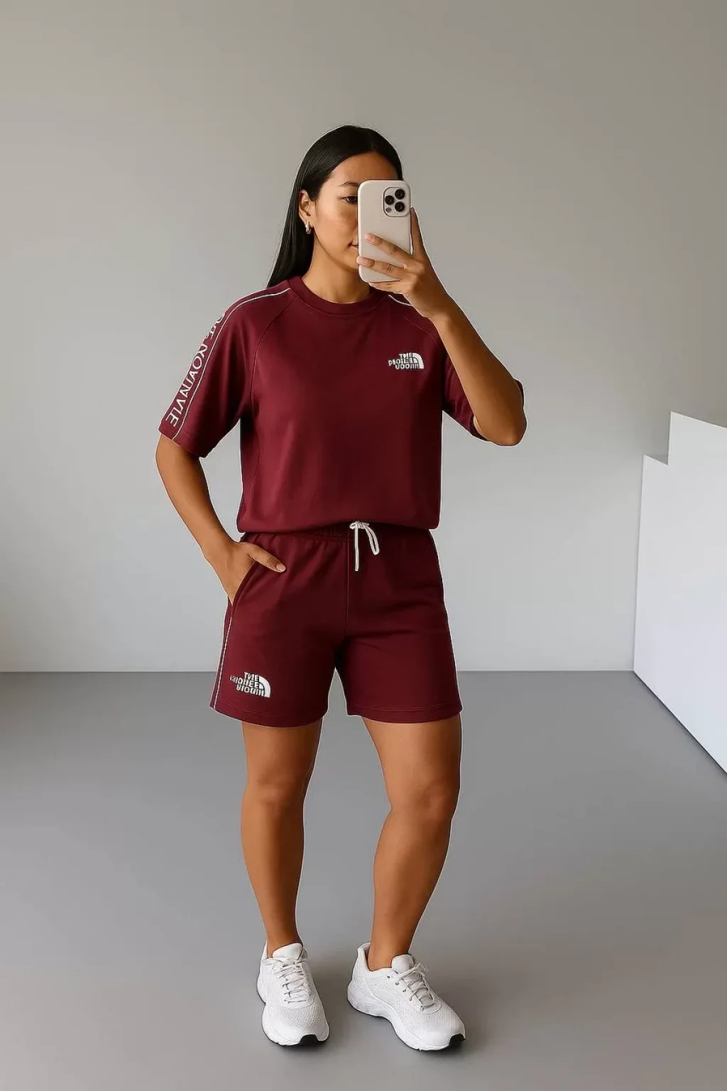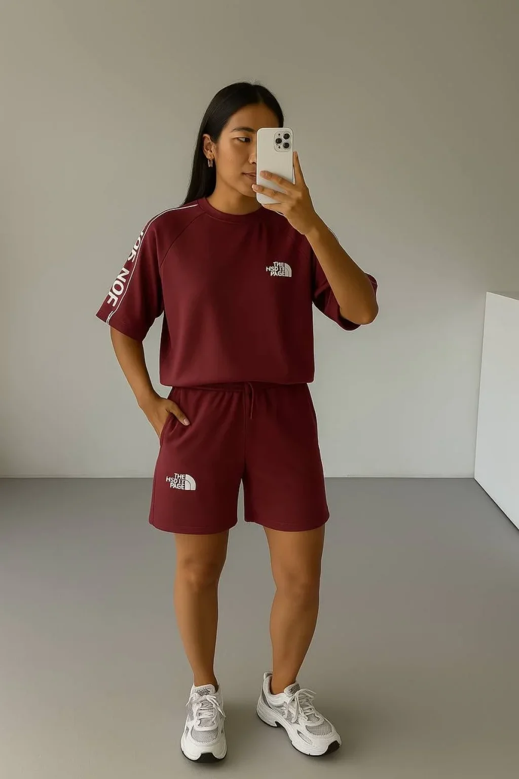 Siyah ADD Fuşya Çizgili Oversize Unisex Şortlu Takım