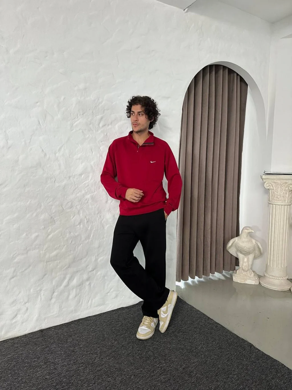 Kırmızı FCB Polo Yaka Unisex Oversize Sweat
