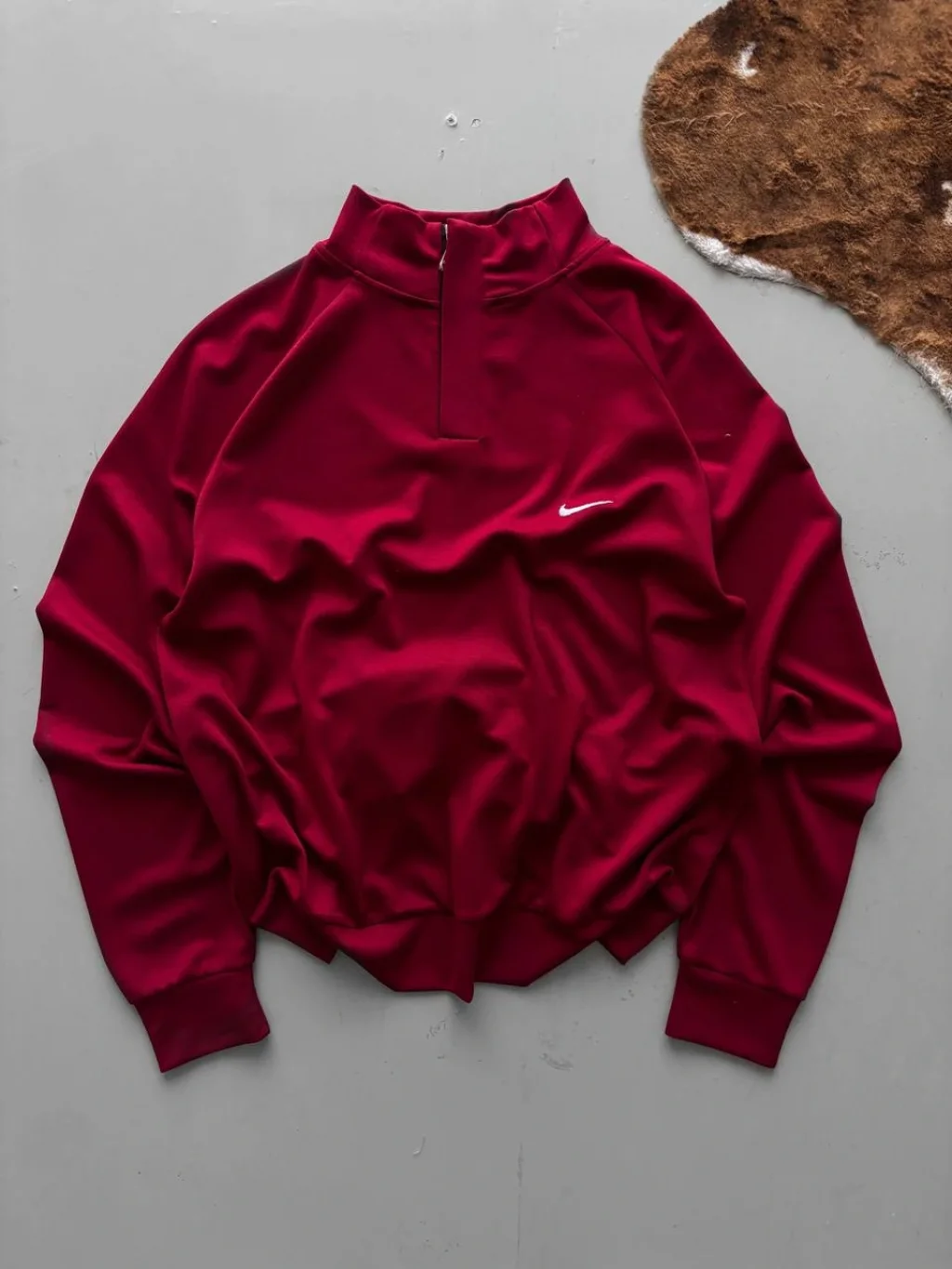Bordo ADD Üç Şerit Fermuar Yaka Unisex Oversize Sweat