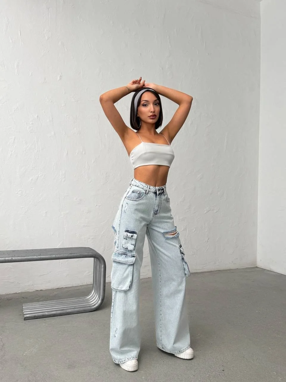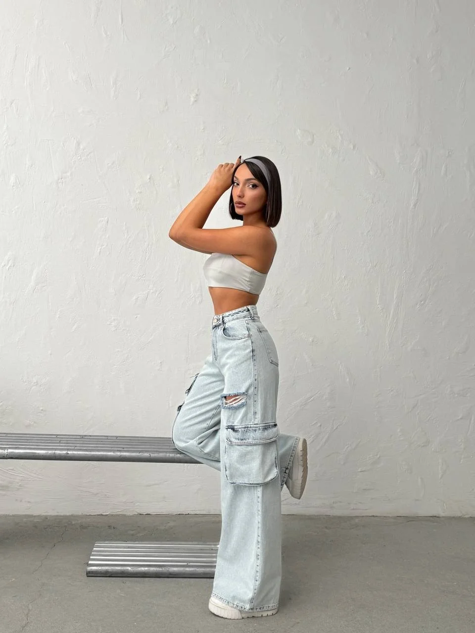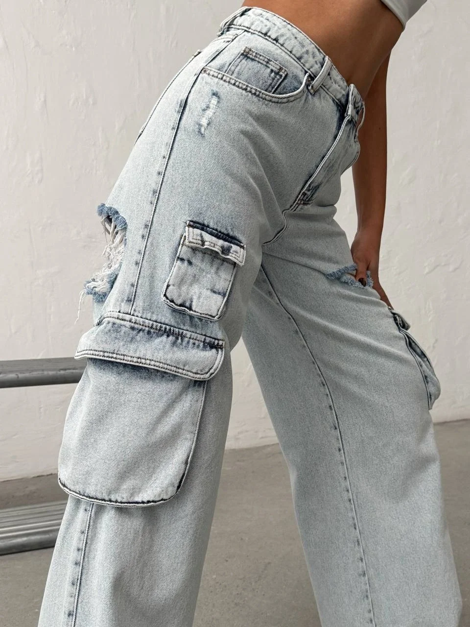 Stil Önerisi: Kargo ceplerin ve yırtıkların hacmini dengelemek için üst bedene oturan parçalarla (basic tişörtler veya crop top) eşleştirmeniz önerilir.