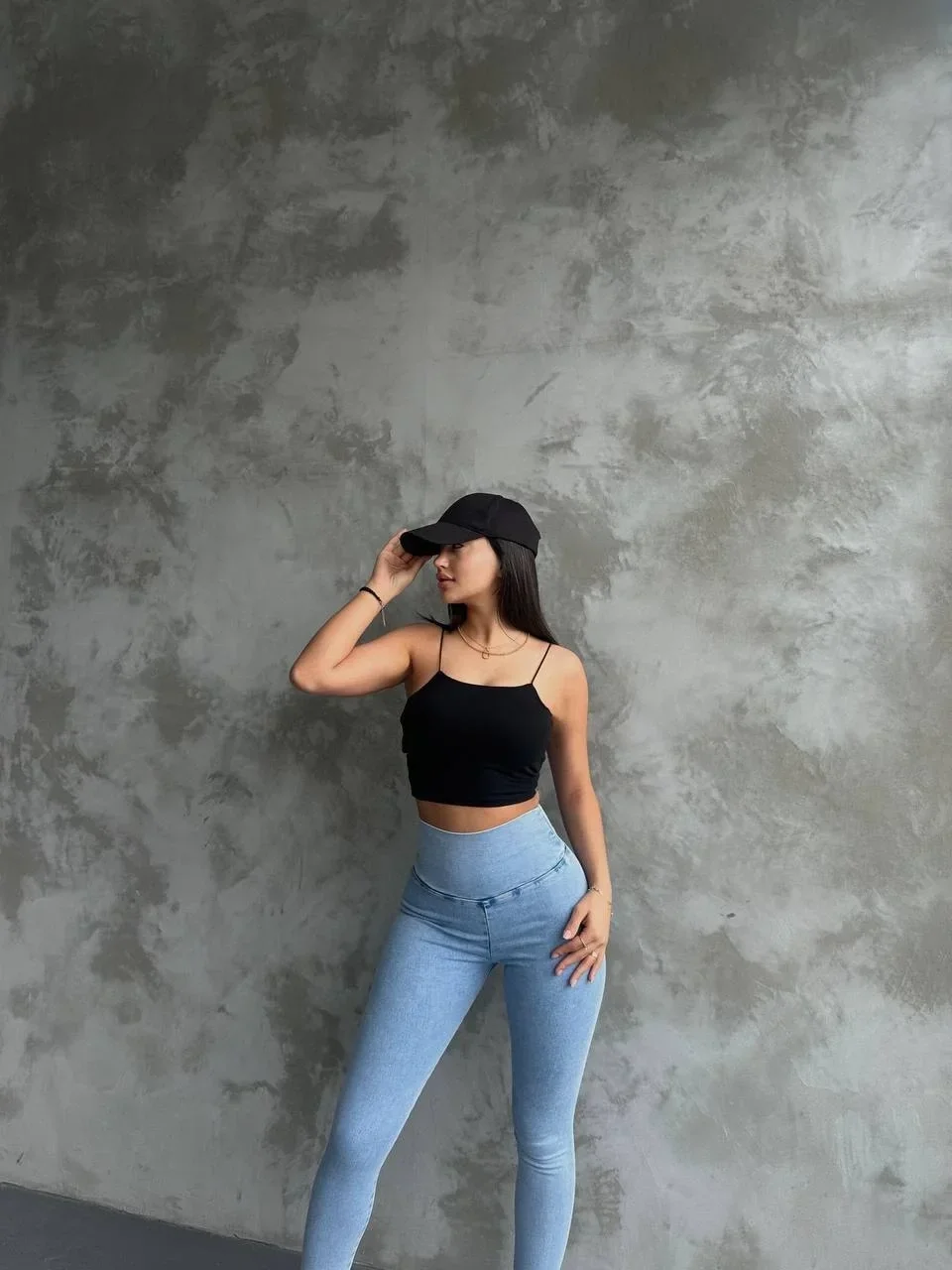 Buz Mavisi Yüksel Bel Esnek Likralı Jean Tayt