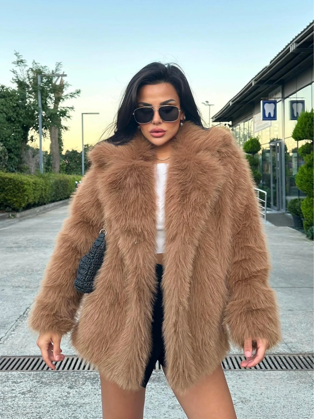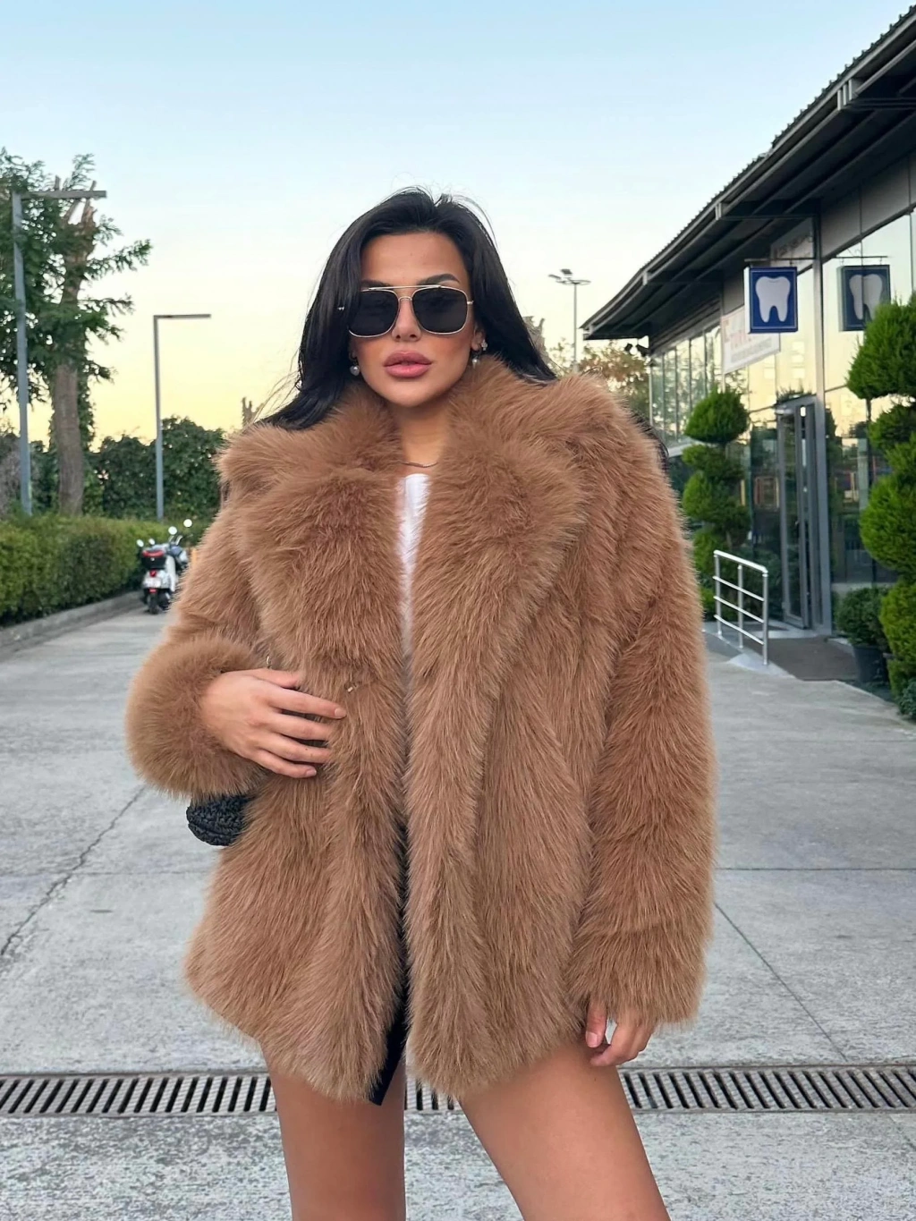 Leopar Ceket Yaka İçi Astarlı İthal Kürk Kaban