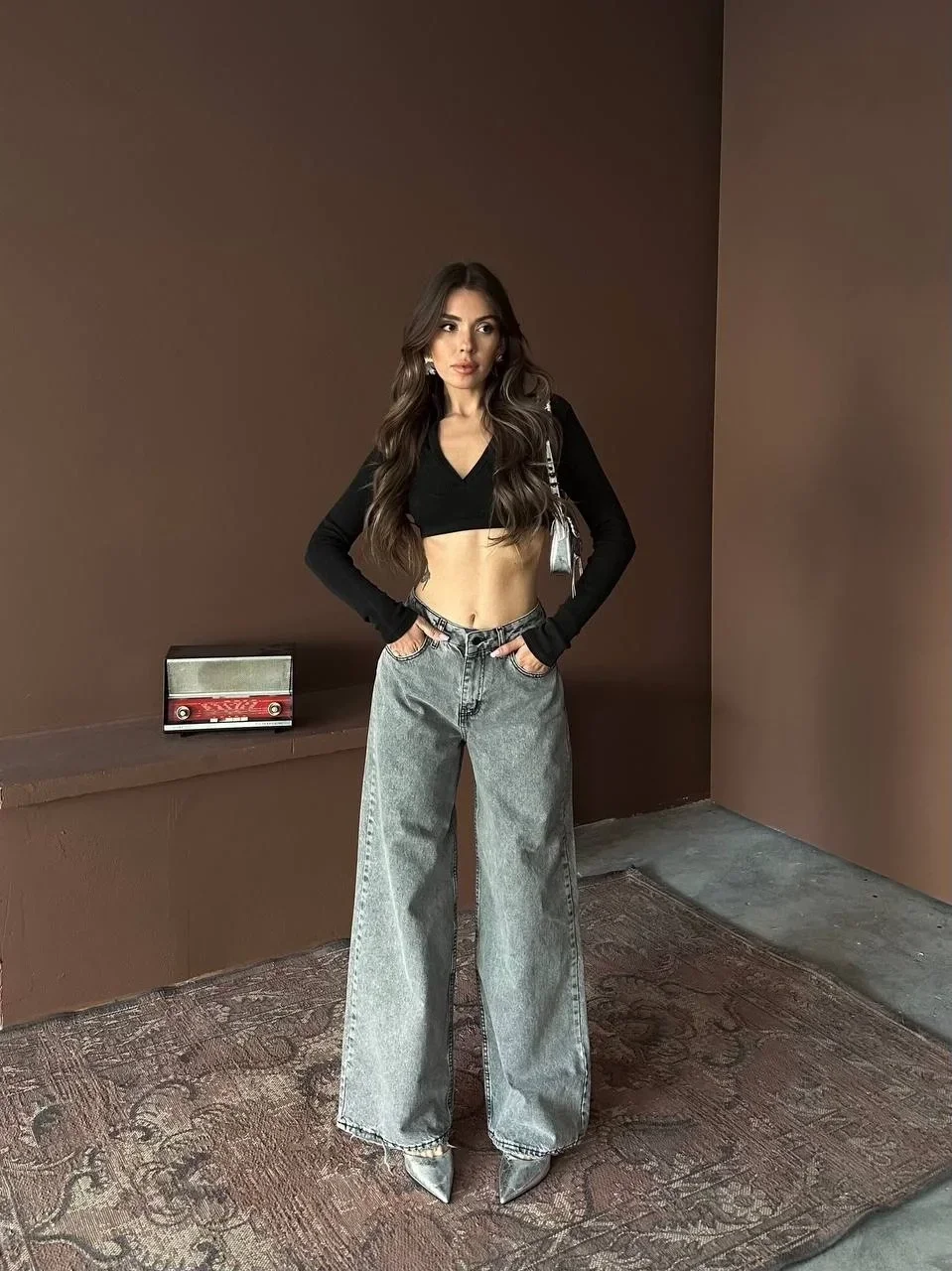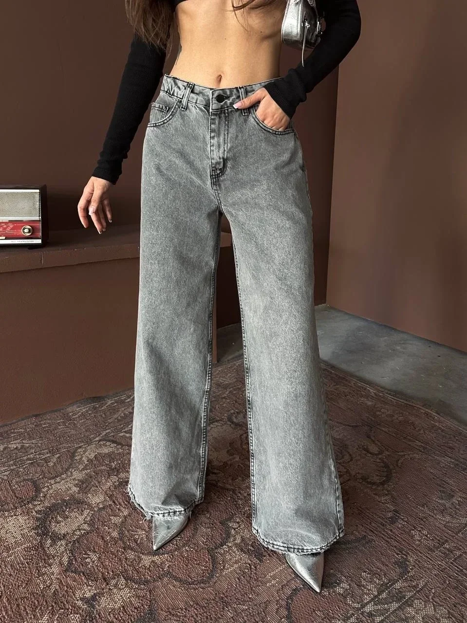 Gray Baggy Denim Pantolon