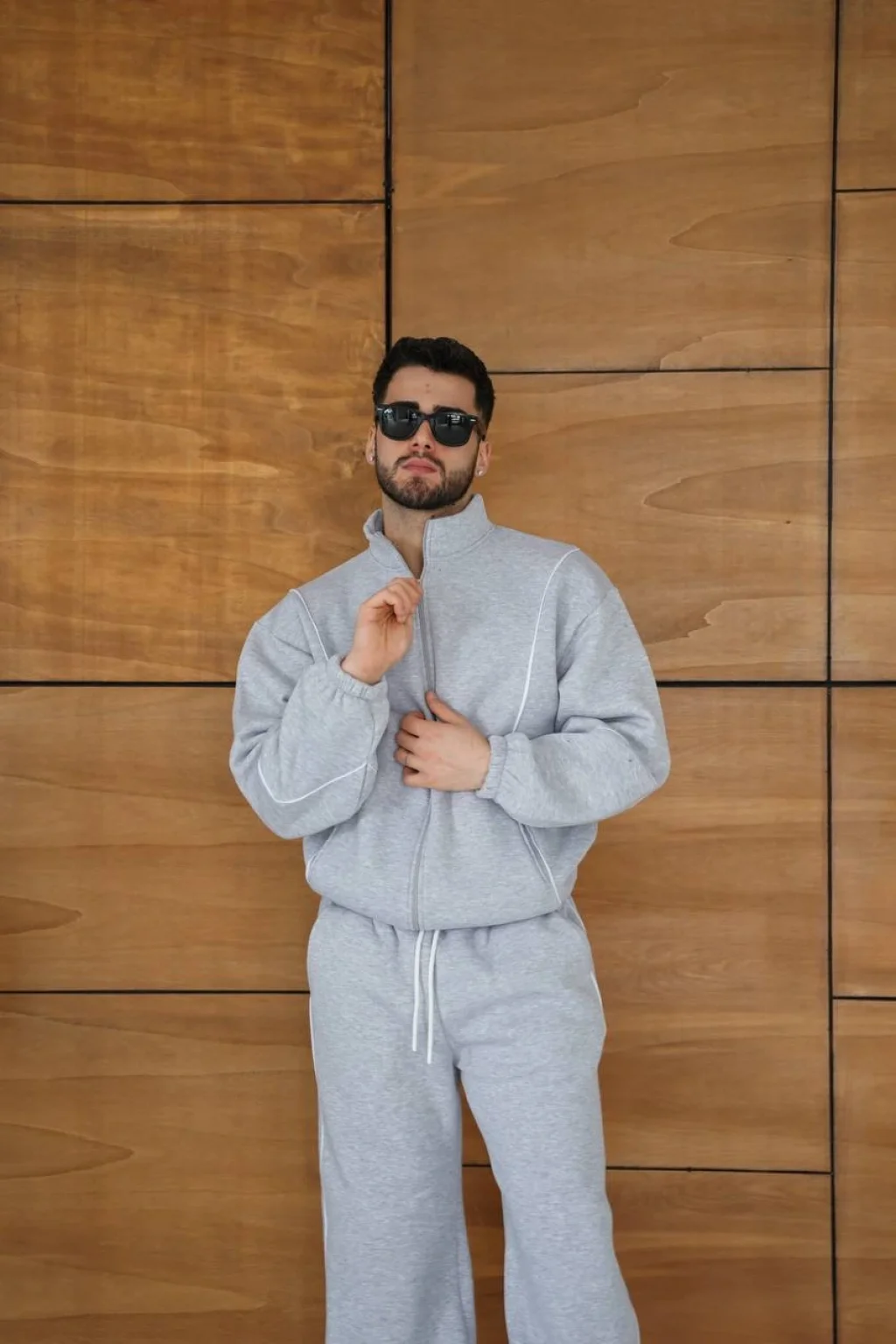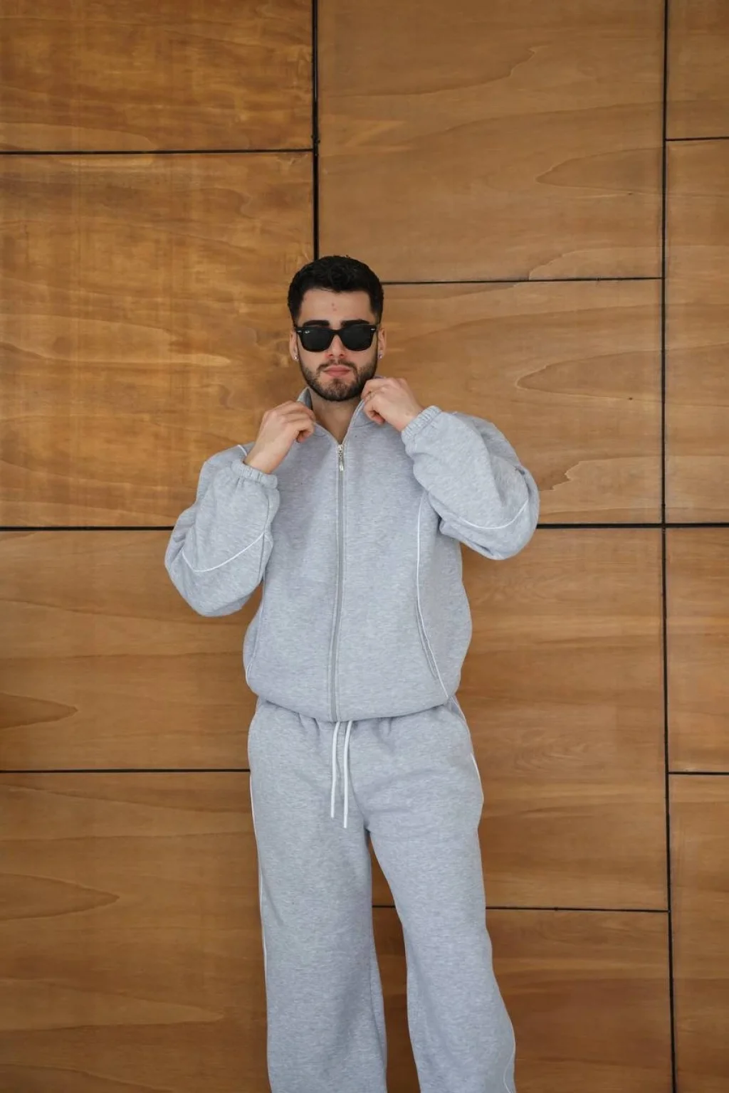 Gri Basic Biyeli Oversize Eşofman Takımı