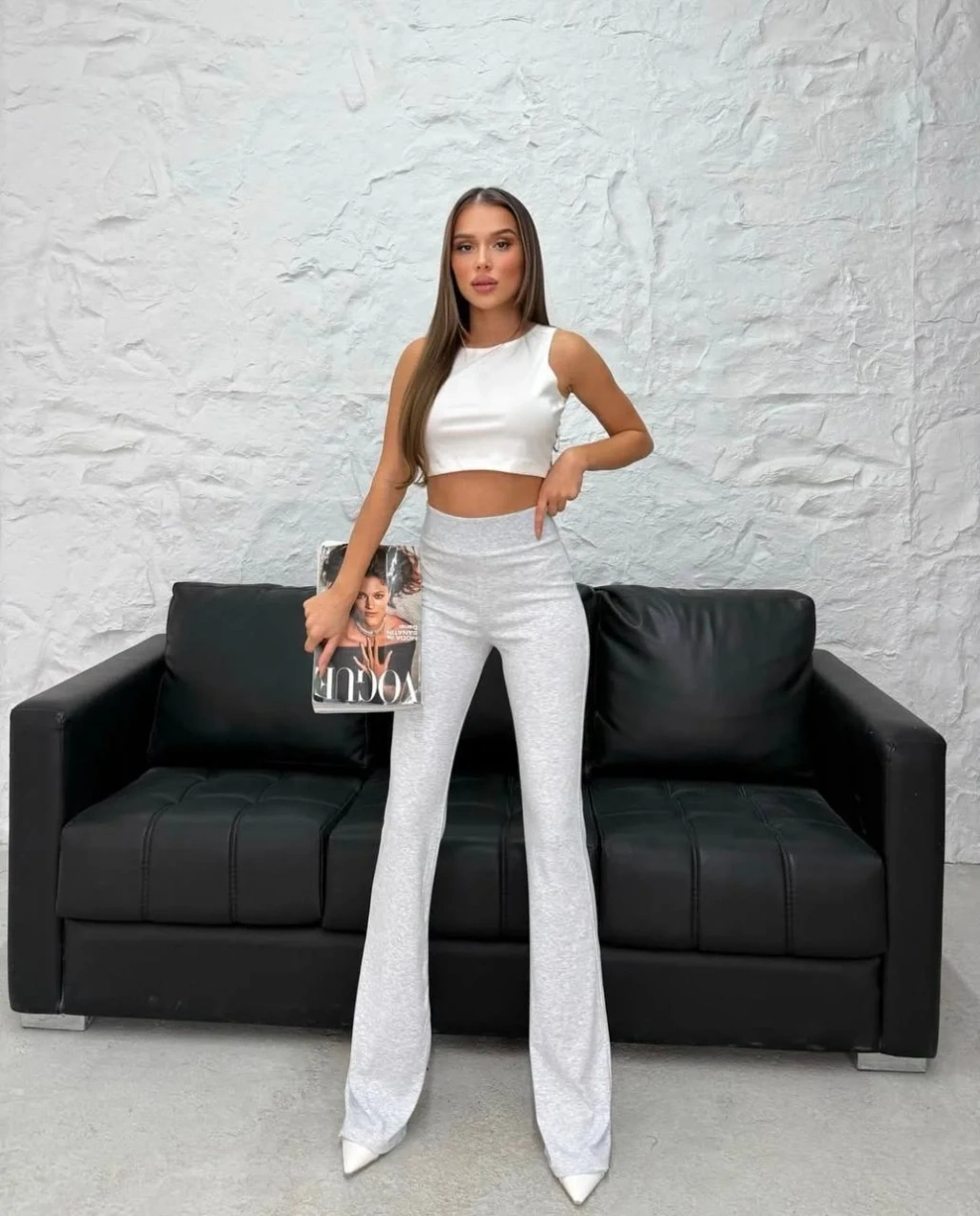 Modaskop Gri Beleze İspanyol Tayt, son moda tasarımı ile şıklığı ve rahatlığı bir araya getiriyor.