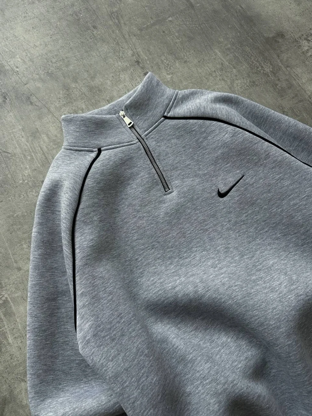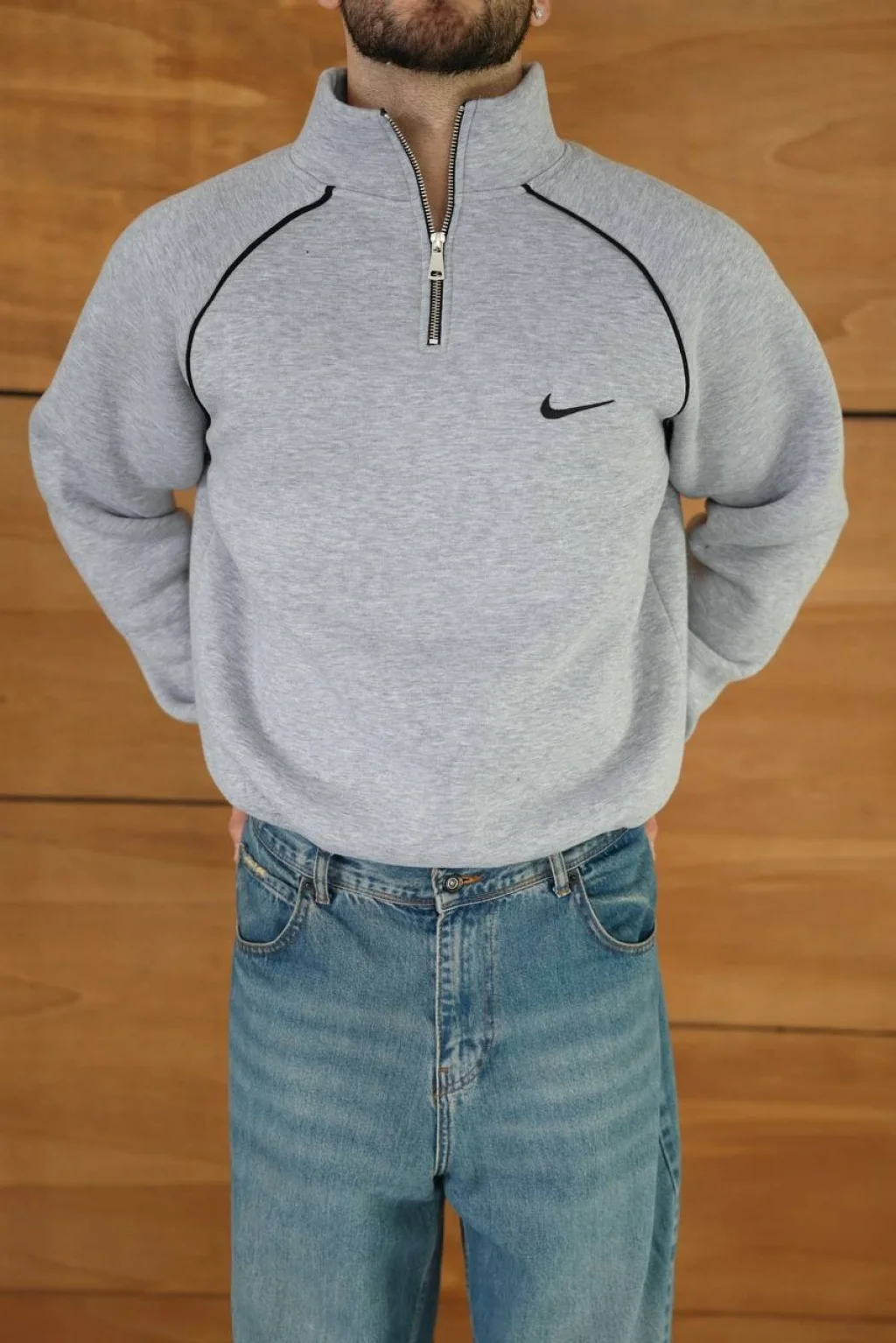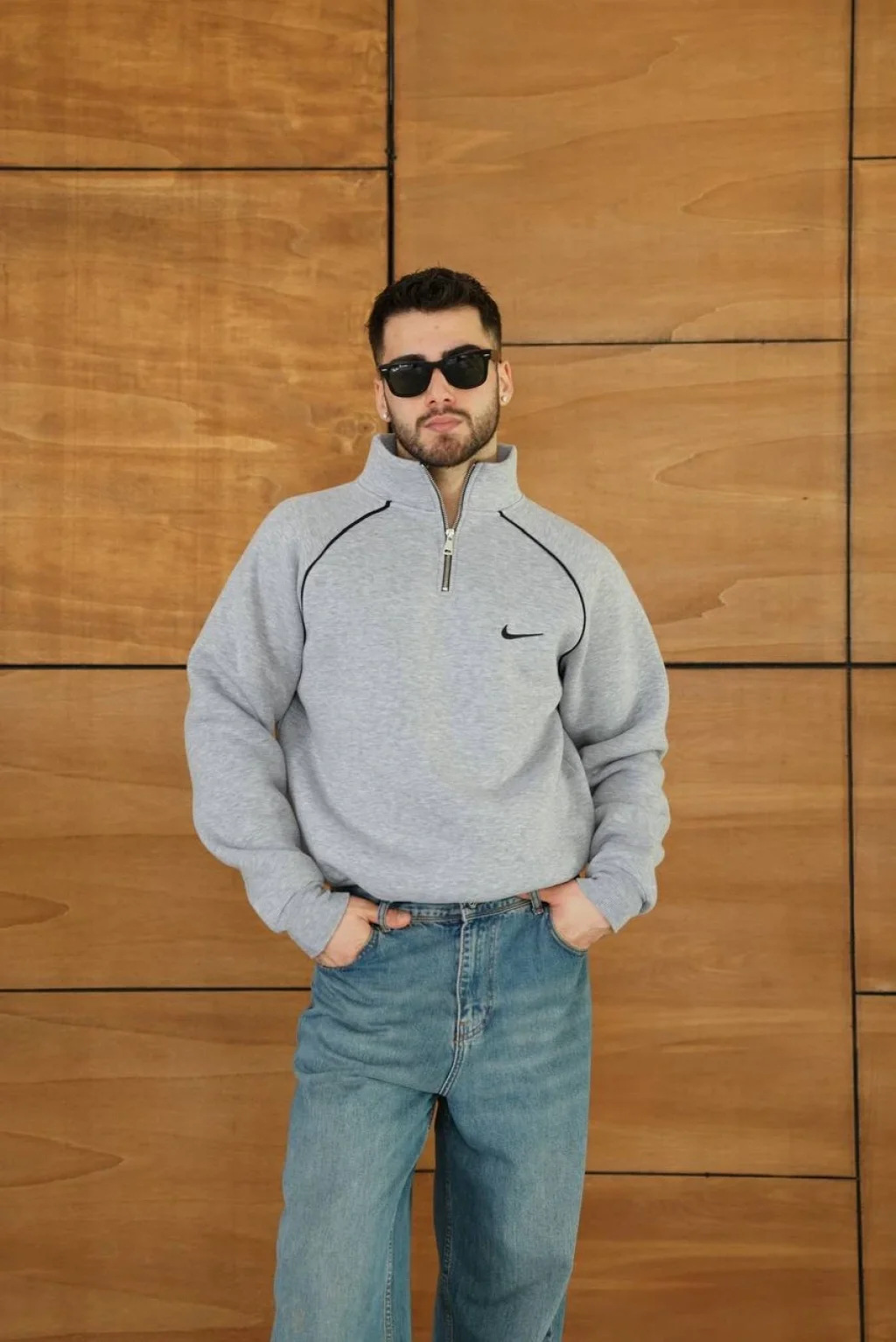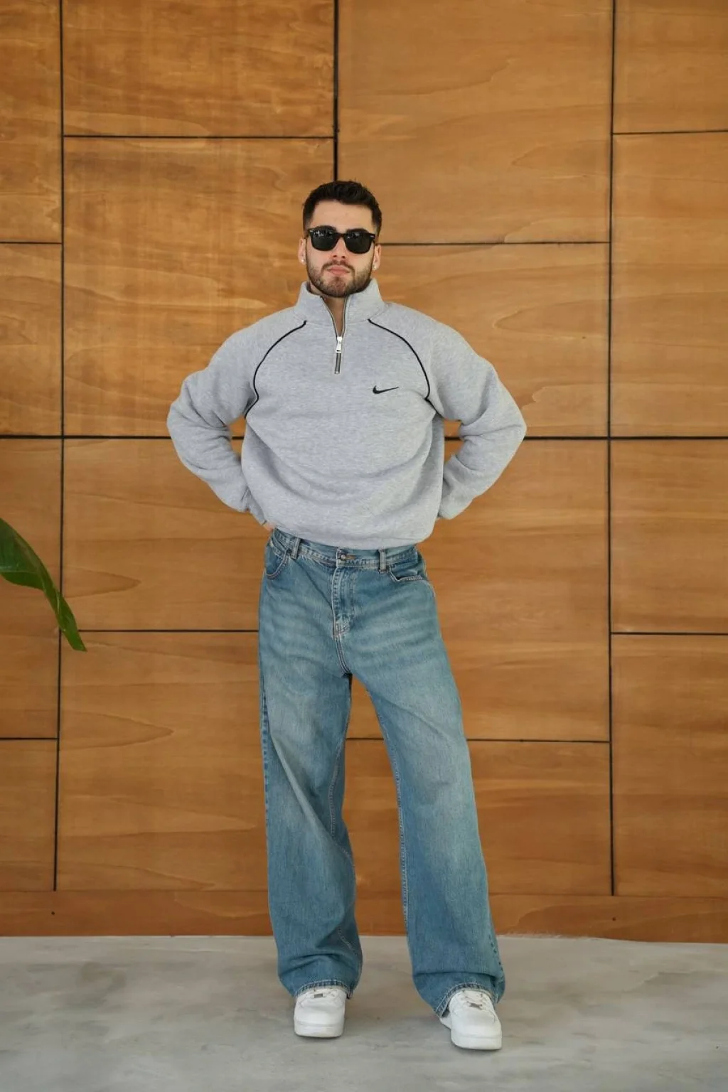 Gri NK Omuz Biyeli Fermuar Yaka Unisex Oversize Sweat