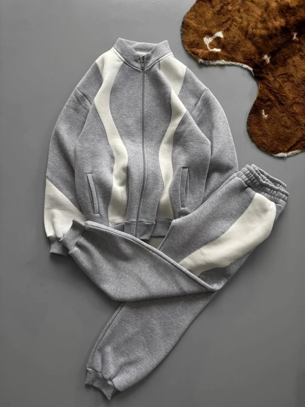 Gri Basic Biyeli Oversize Eşofman Takımı