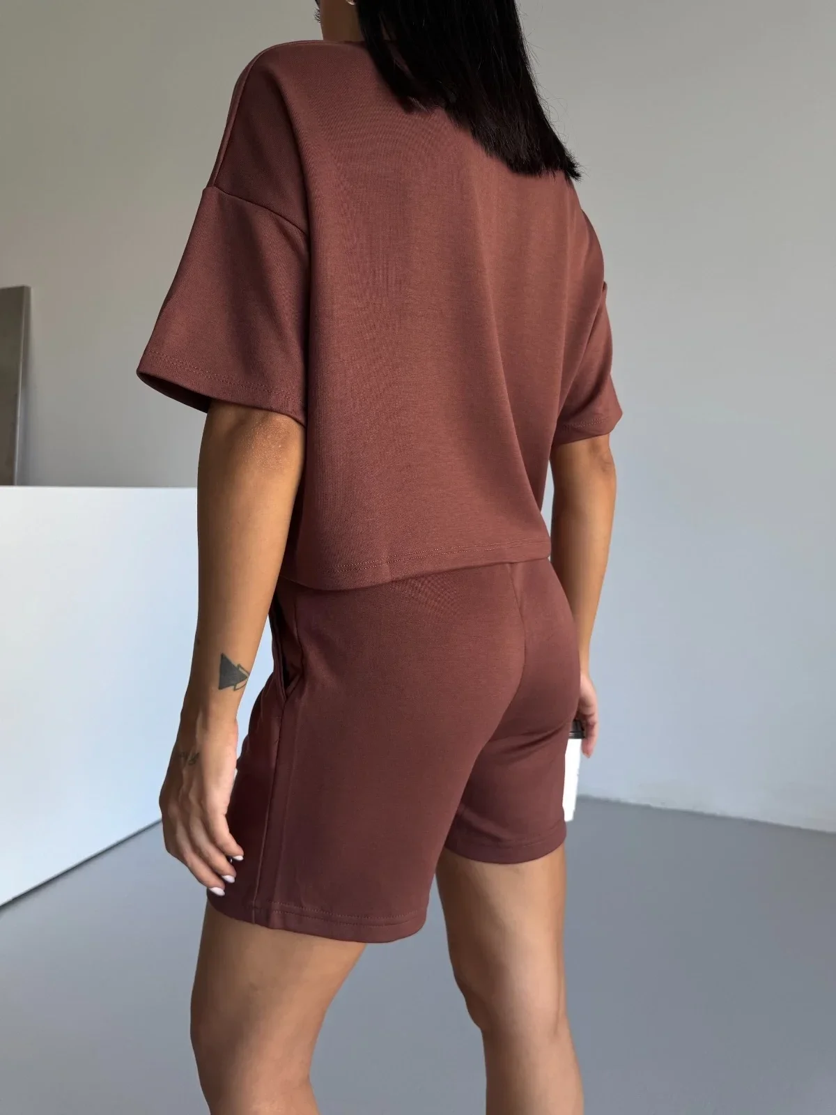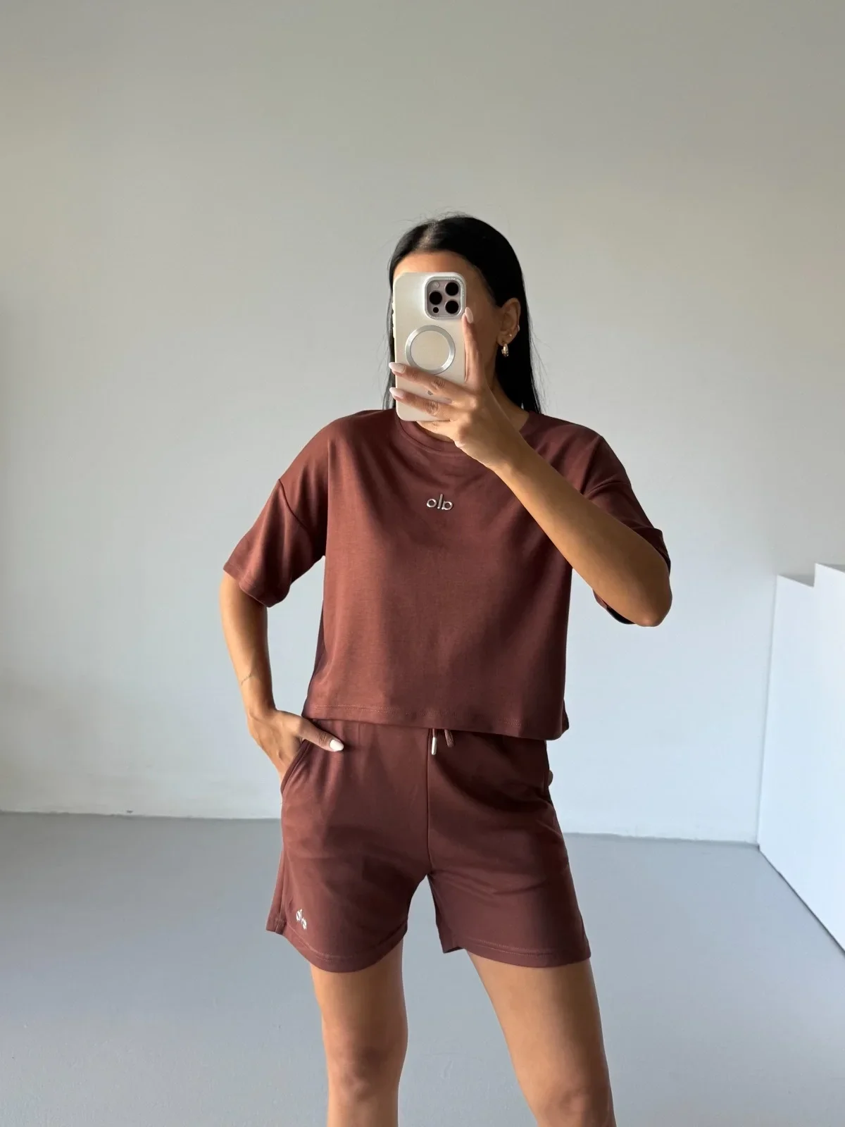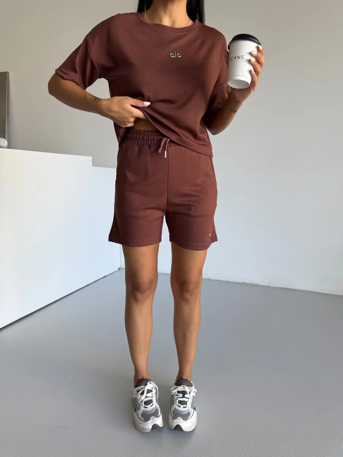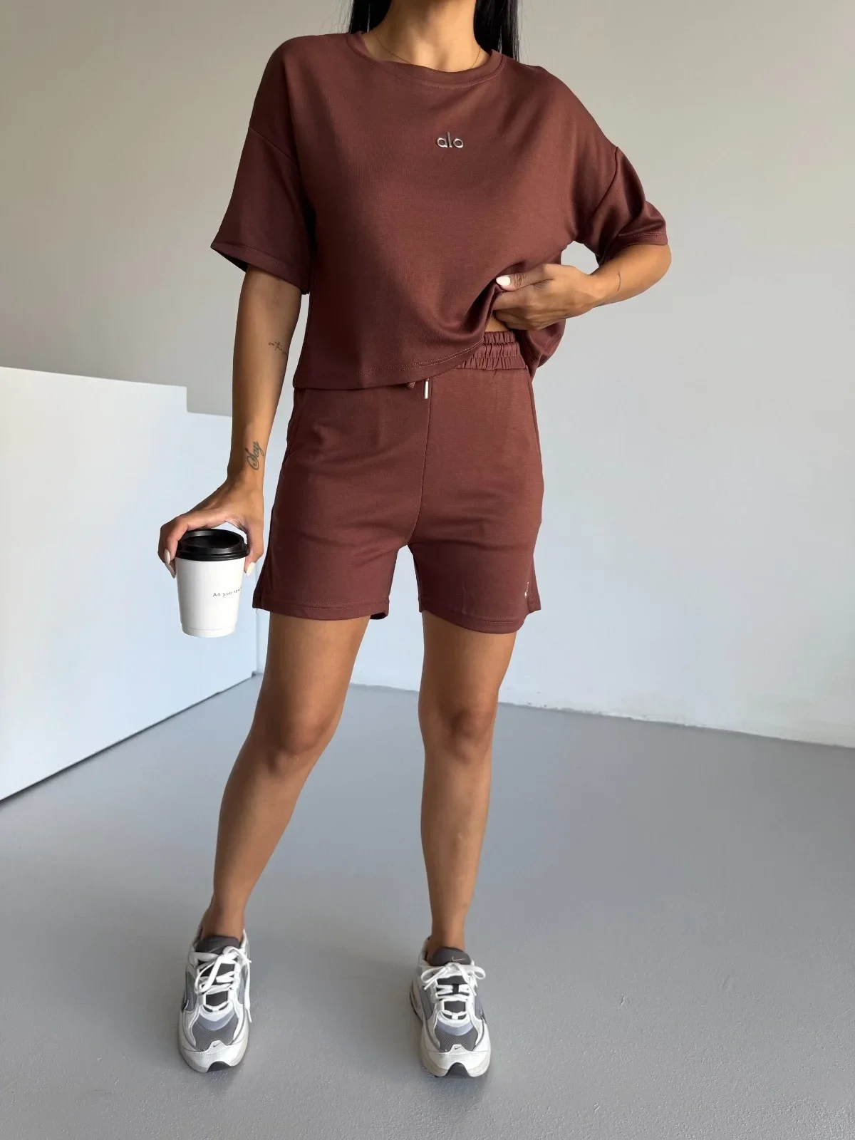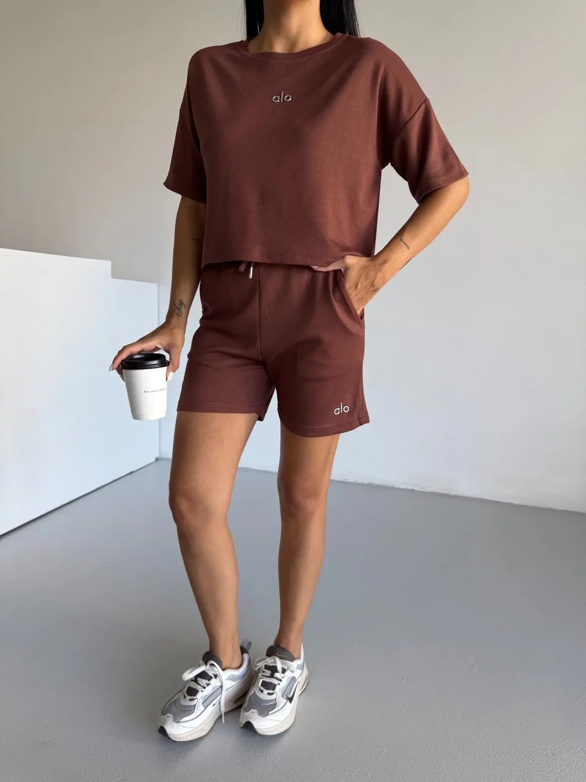 Kahve Alo Yoga Modal Crop Şortlu Takım