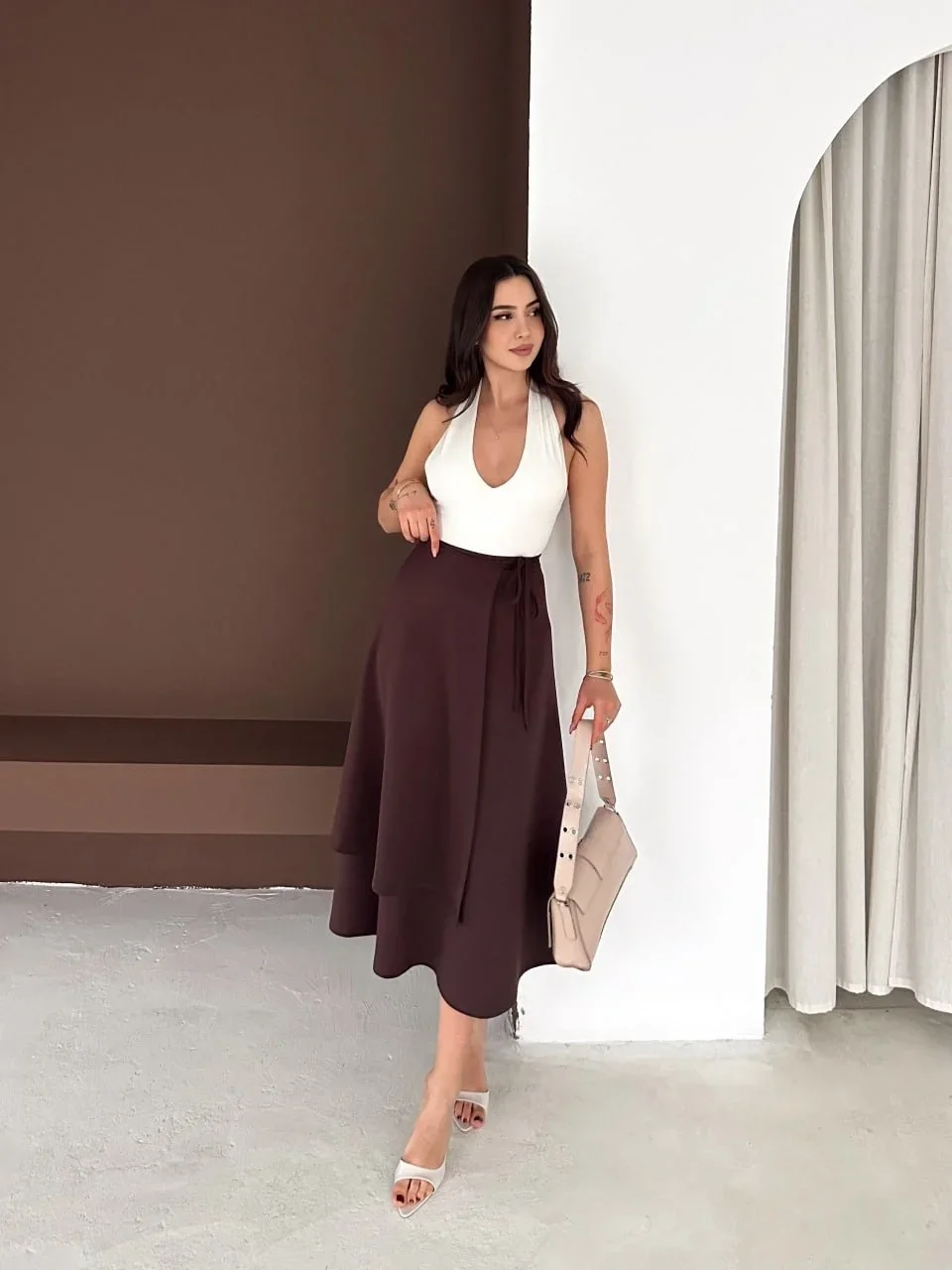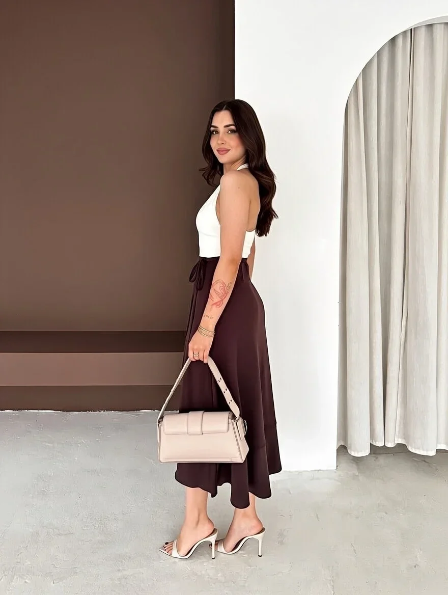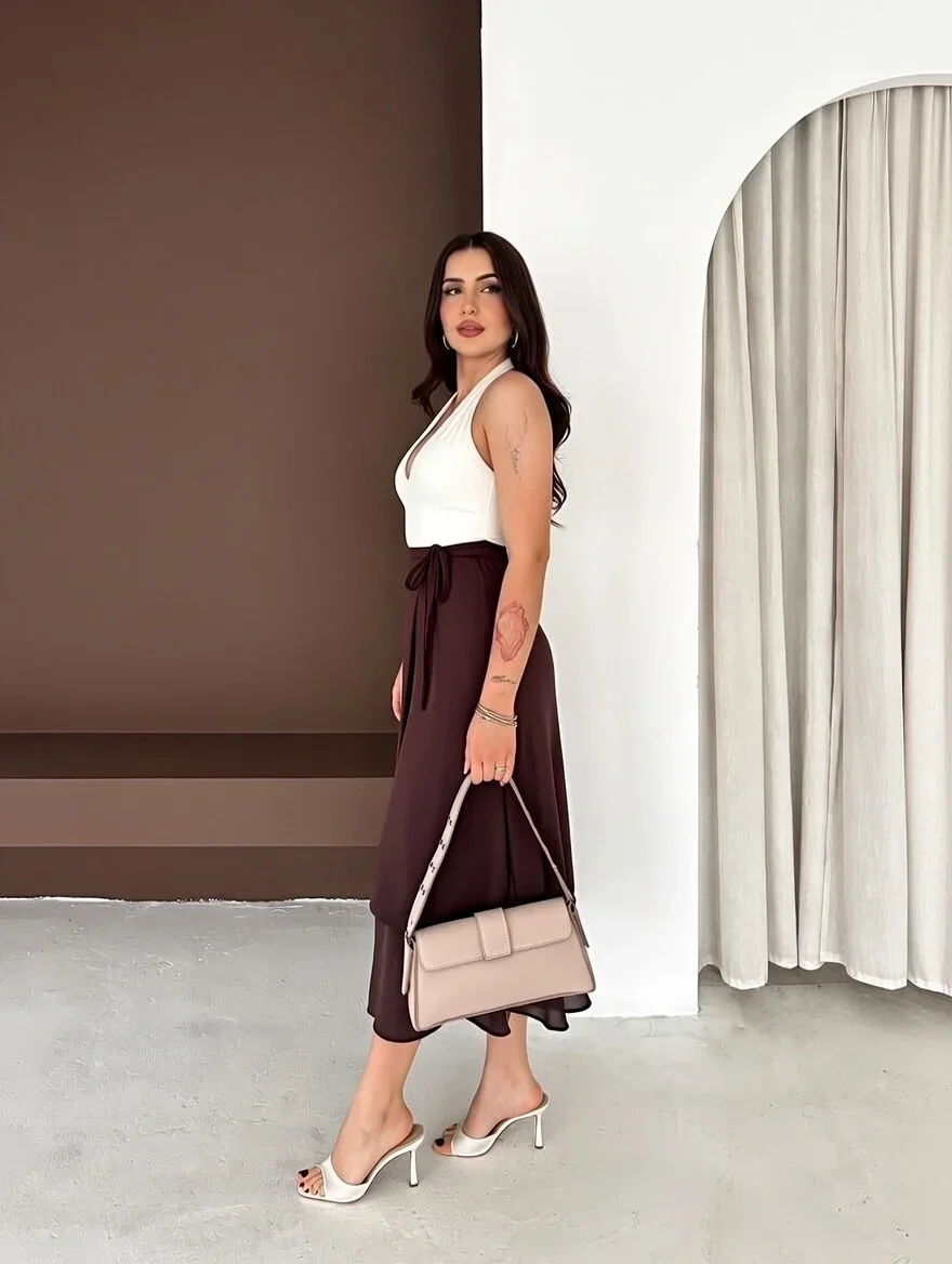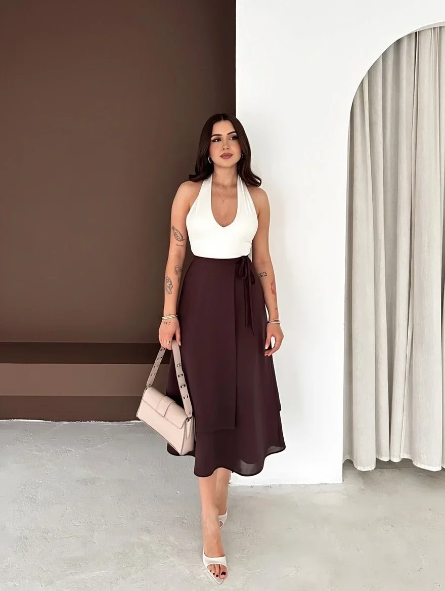 Kahve Önden Bağlamalı Scuba Etek